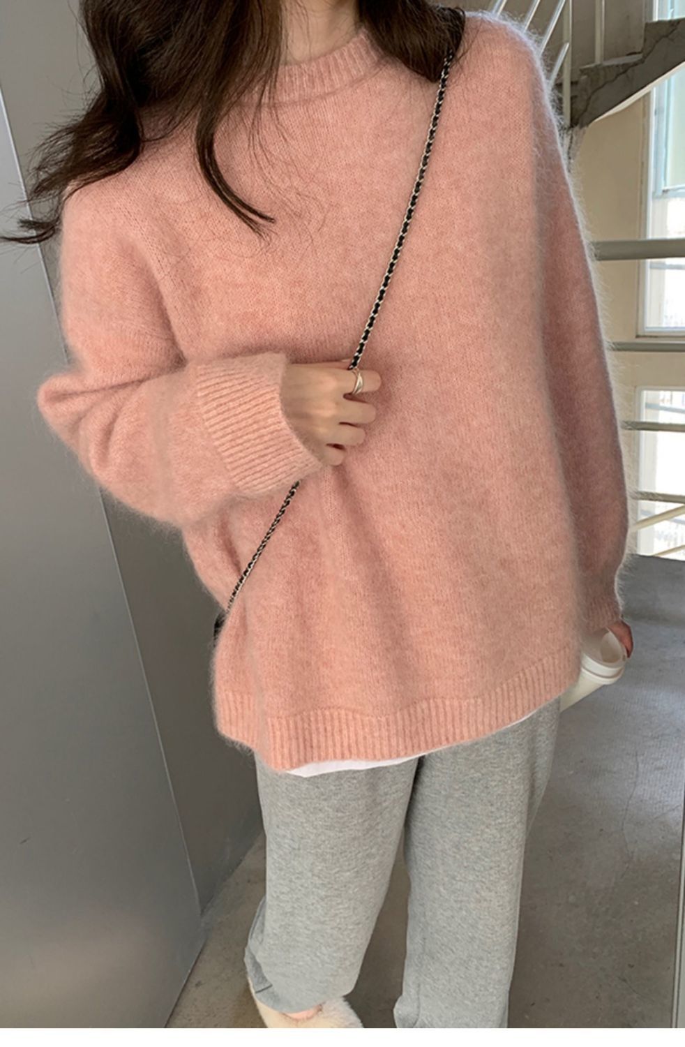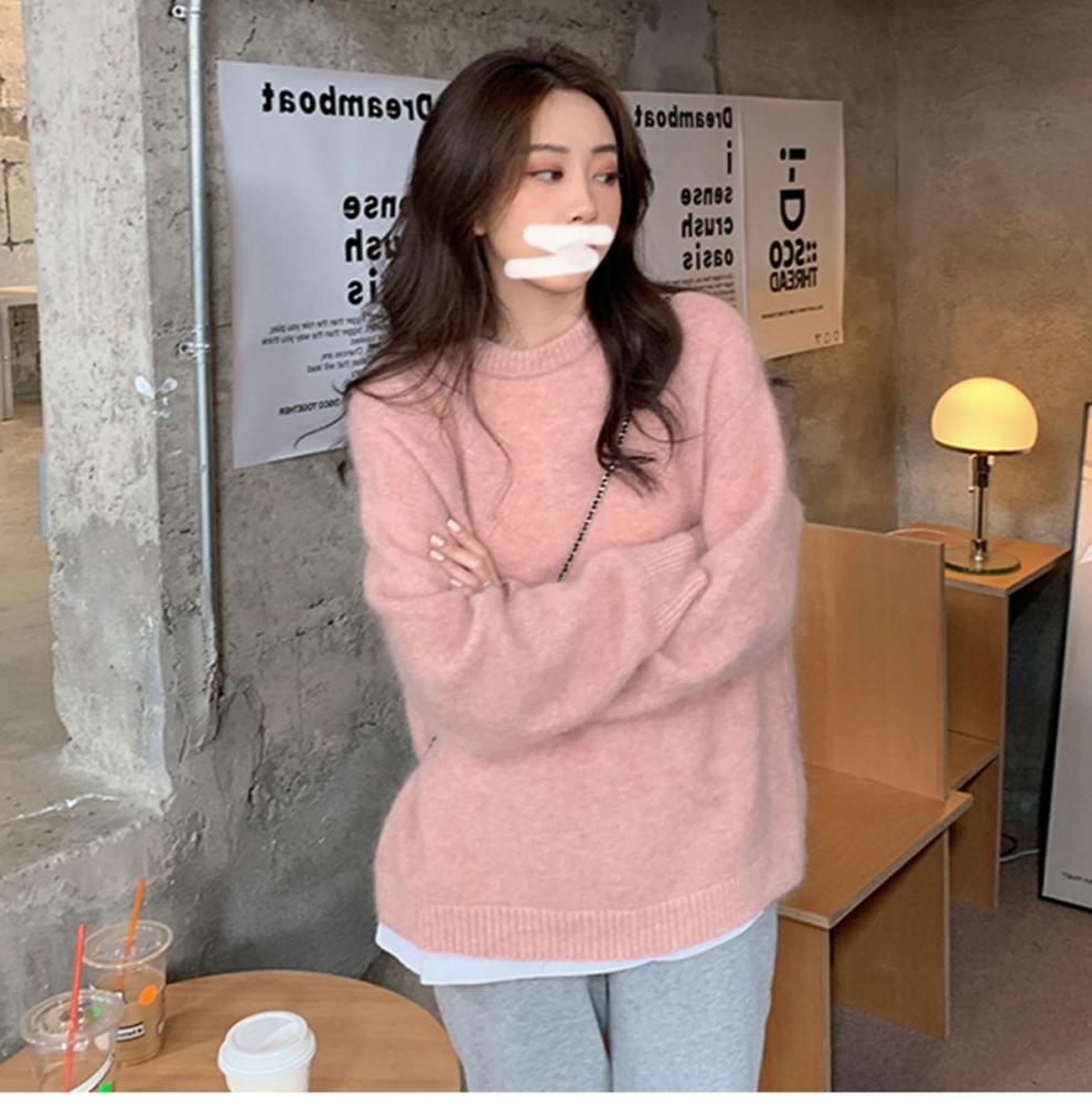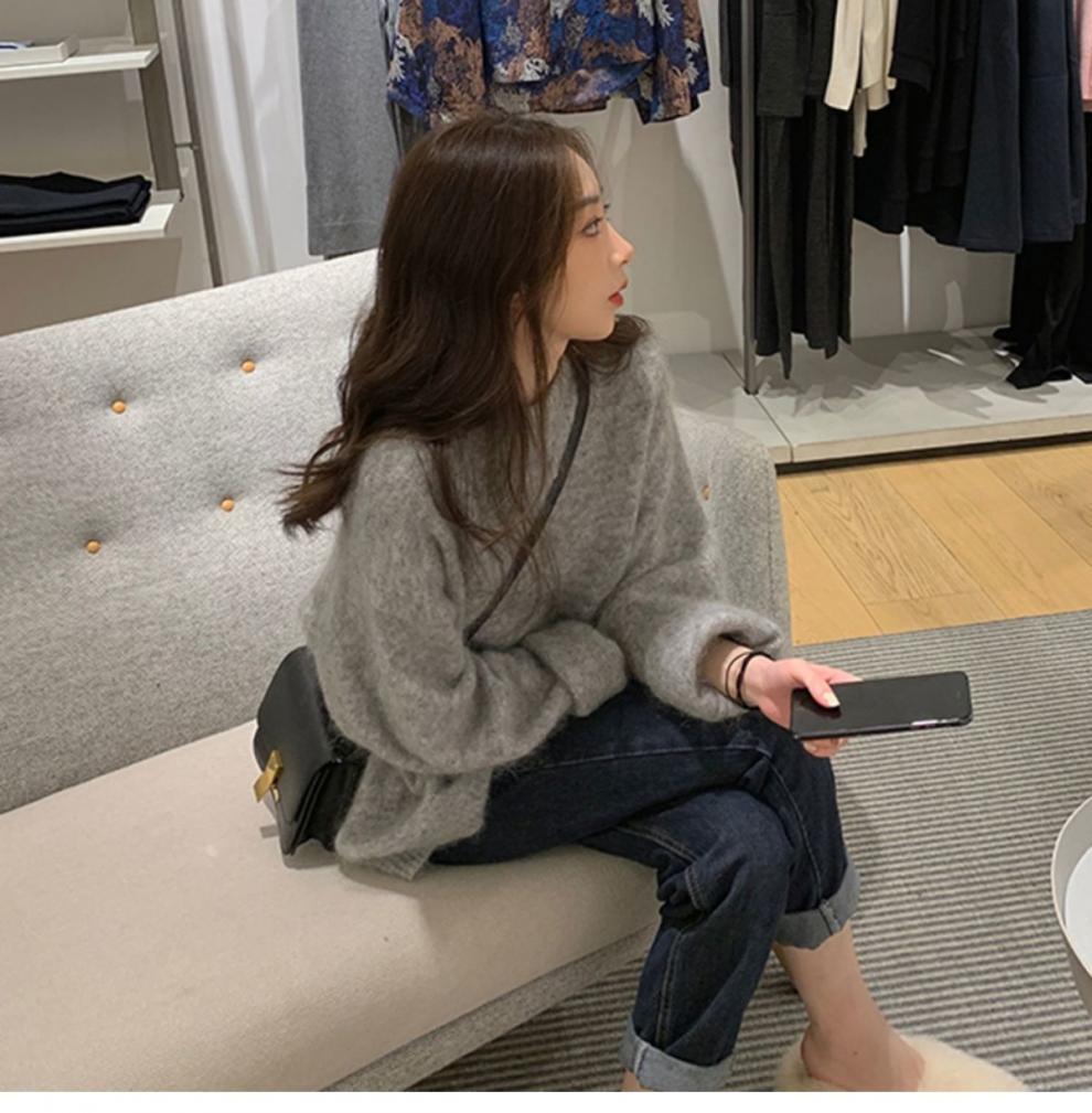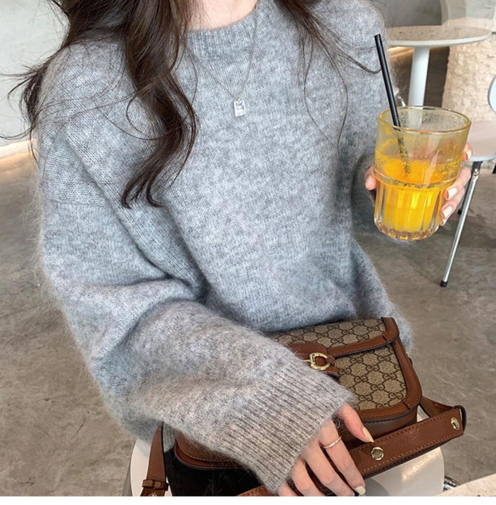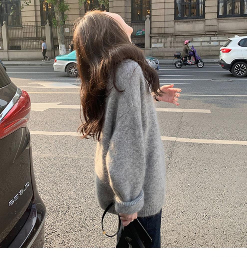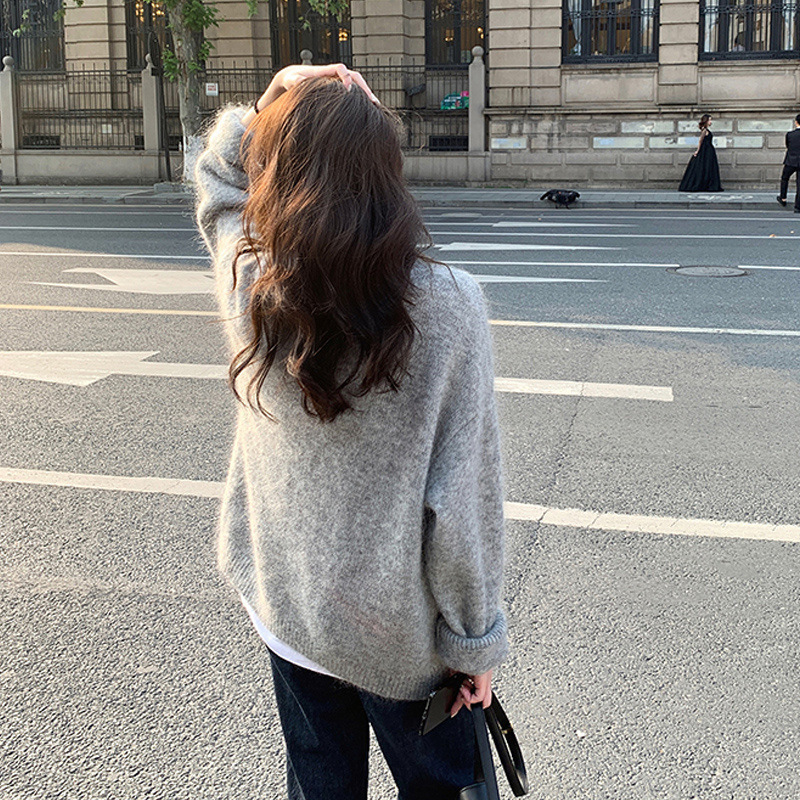2024 년 가을과 겨울 새로운 모리 젠틀 게으른 스타일 니트 탑 모조 밍크 벨벳 부드러운 왁스 모방 마헤어 스웨터스토어 가기