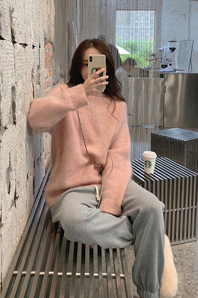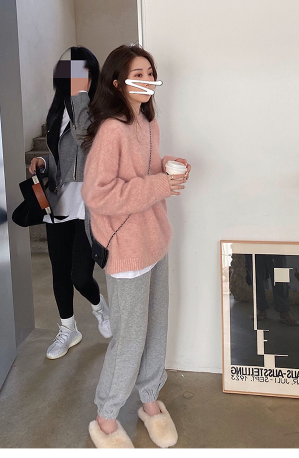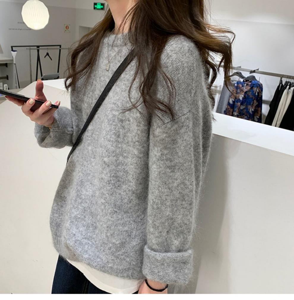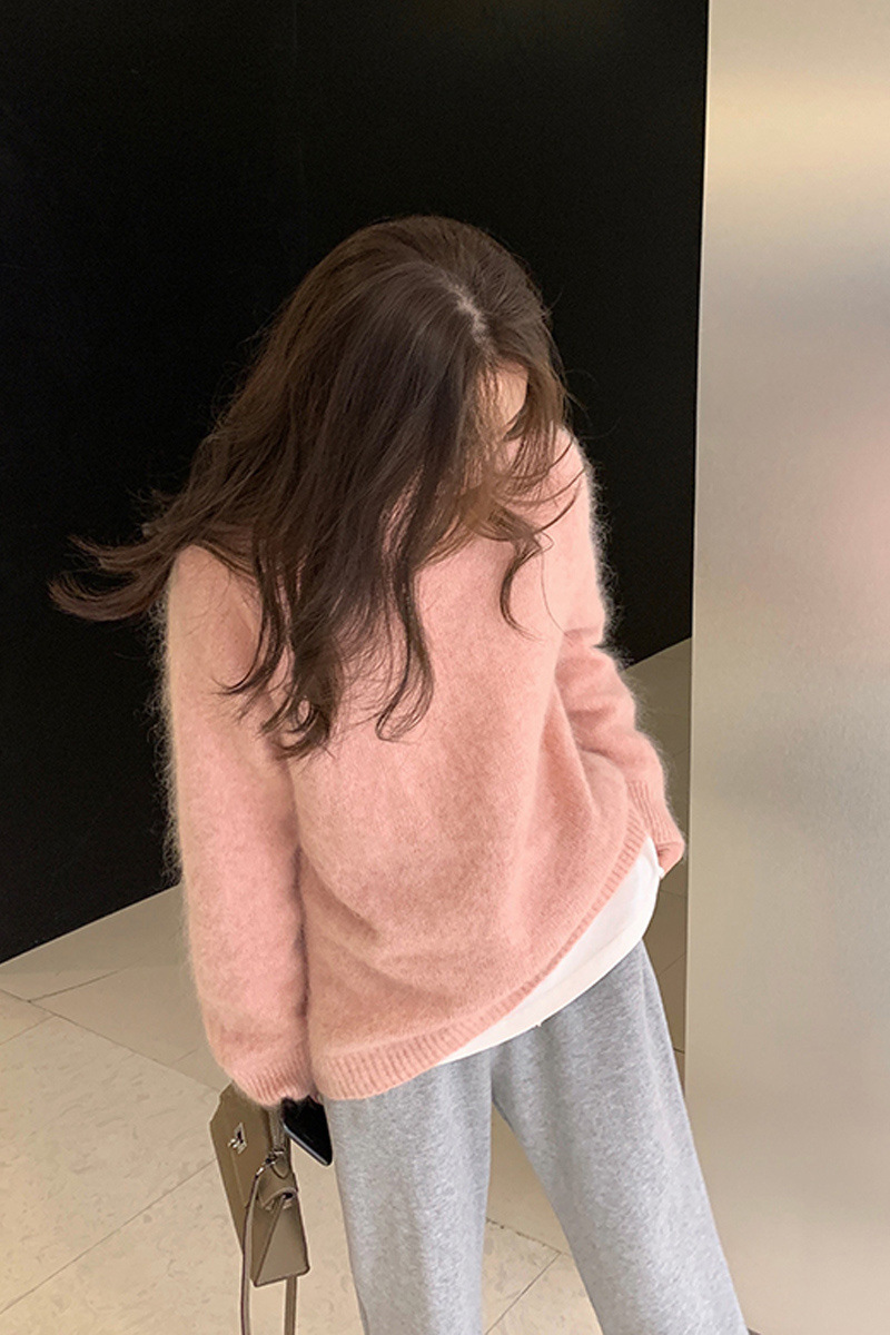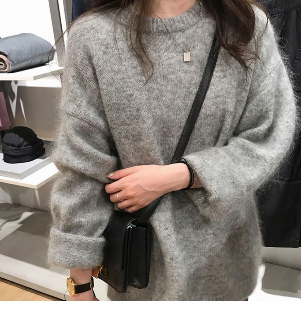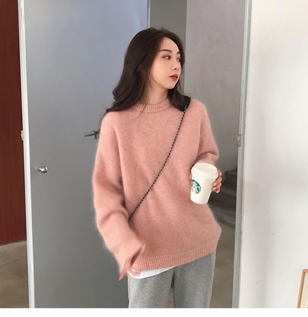 2024 년 가을과 겨울 새로운 모리 젠틀 게으른 스타일 니트 탑 모조 밍크 벨벳 부드러운 왁스 모방 마헤어 스웨터스토어 가기