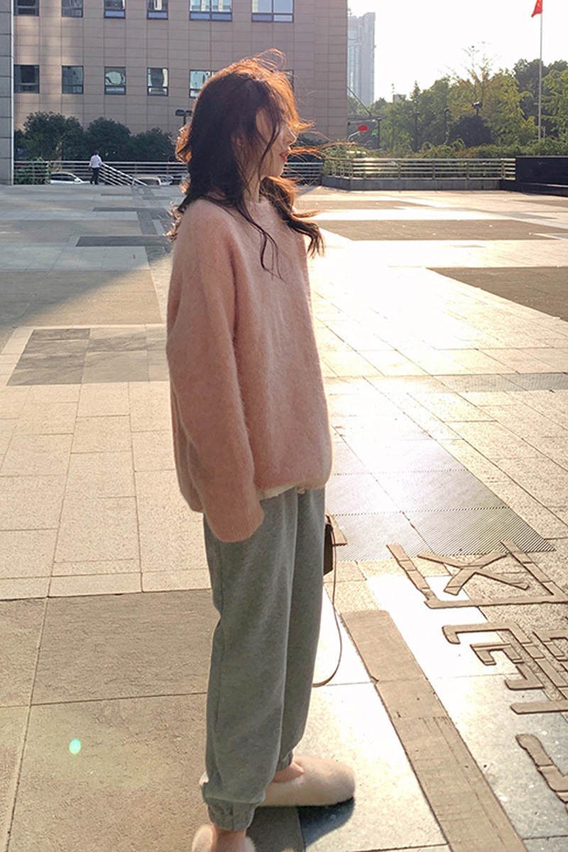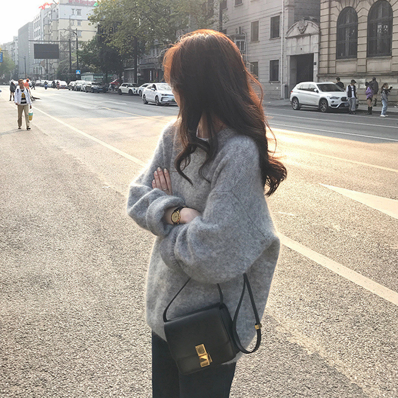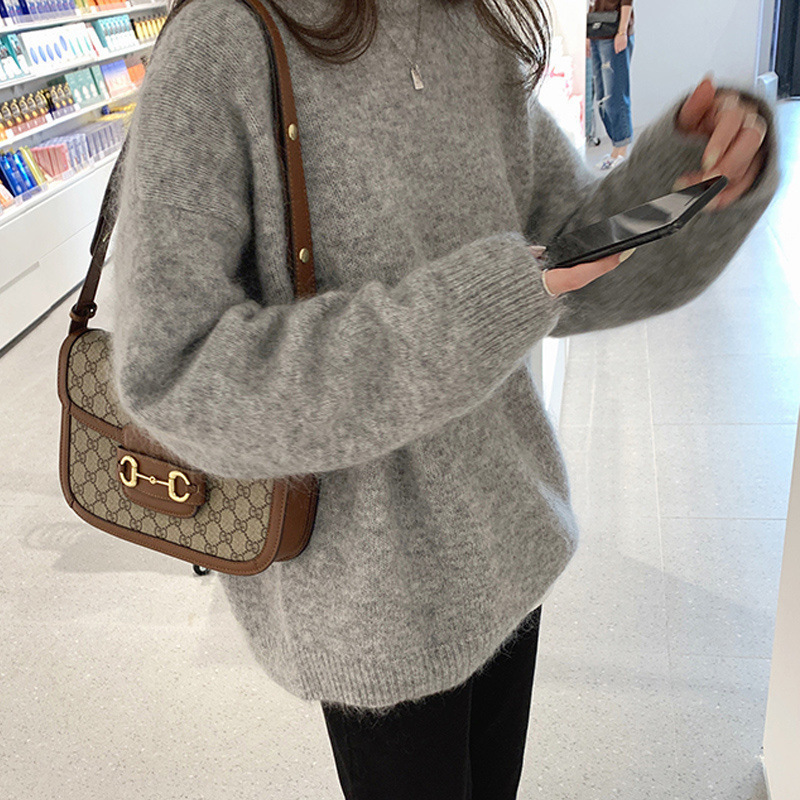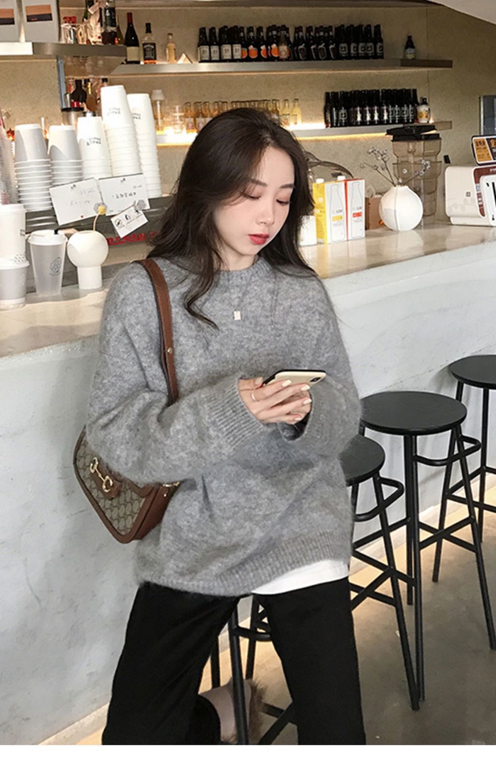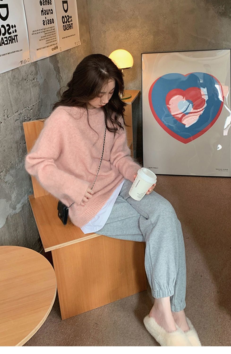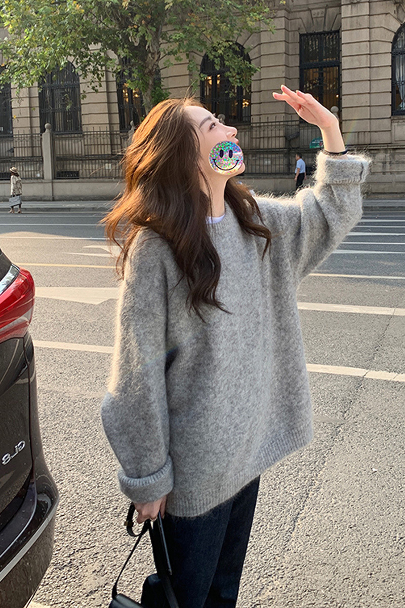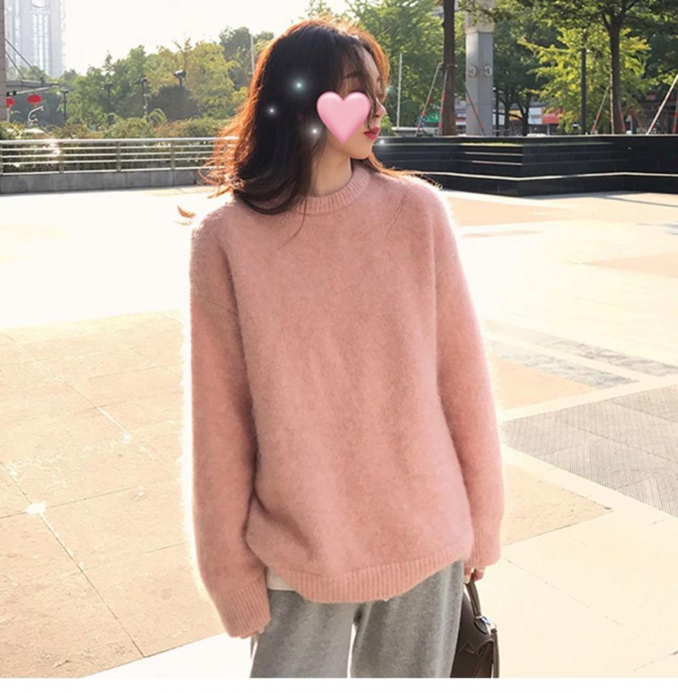 2024 년 가을과 겨울 새로운 모리 젠틀 게으른 스타일 니트 탑 모조 밍크 벨벳 부드러운 왁스 모방 마헤어 스웨터스토어 가기