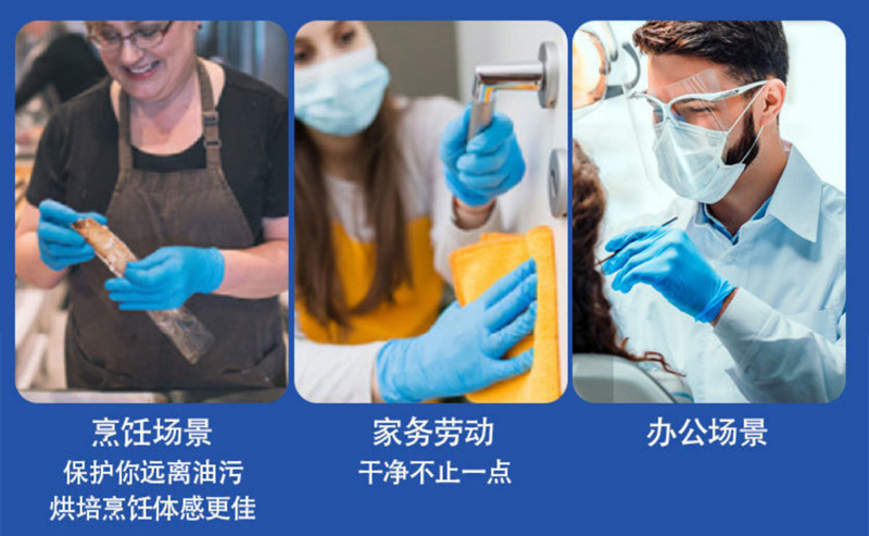 일회용 니트릴 장갑 라텍스 고무 가정용 식품 등급 케이터링 방수 두꺼운 내구성 접시 세척 주방 가구