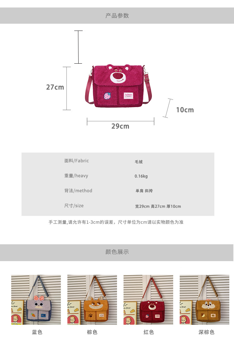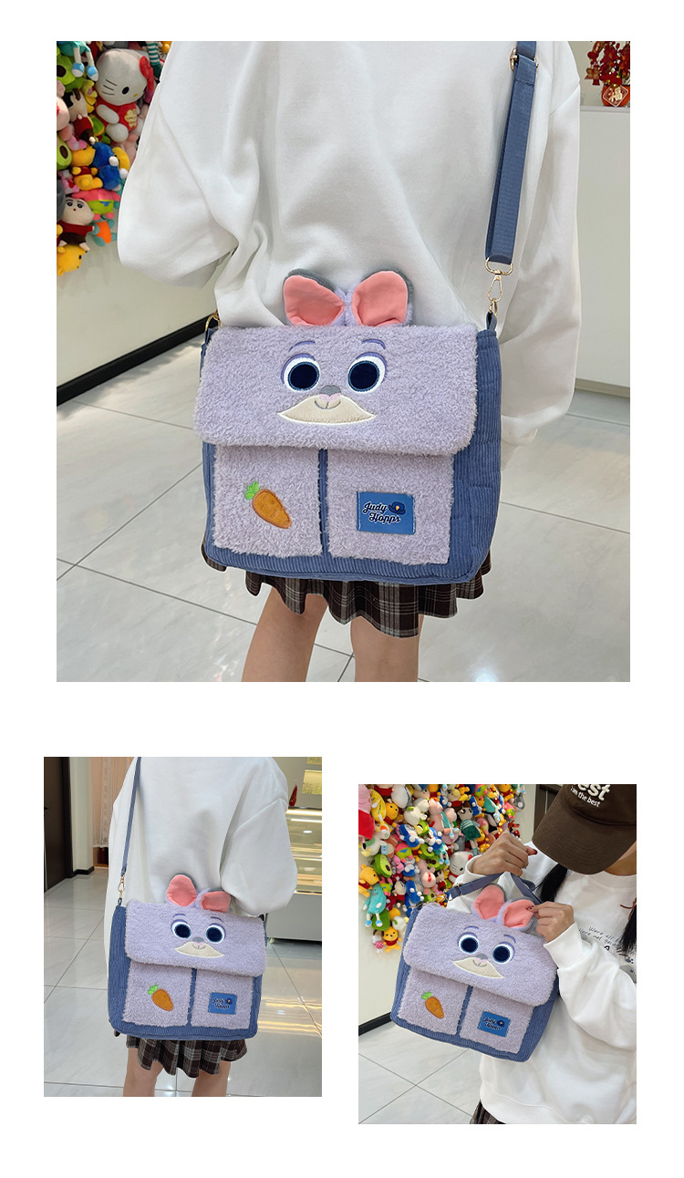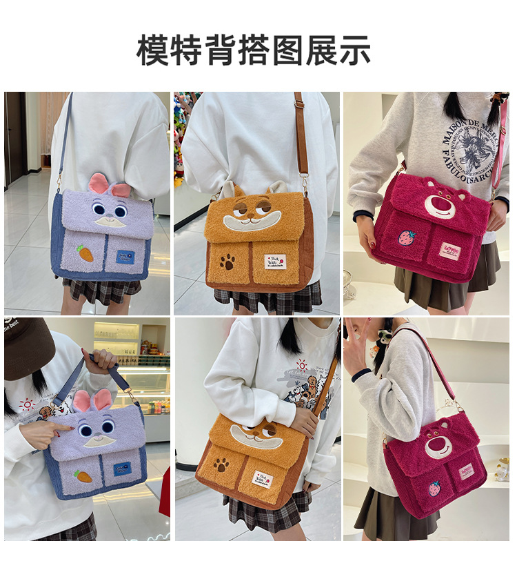 정품 라이선스 Zootopia Judy Nick Strawberry Bear Qiqi Plush Shoulder Bag 메신저 백 대용량스토어 가기