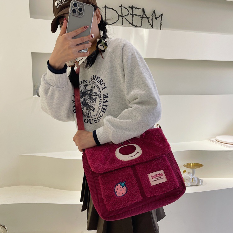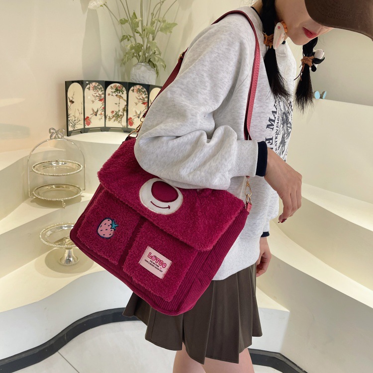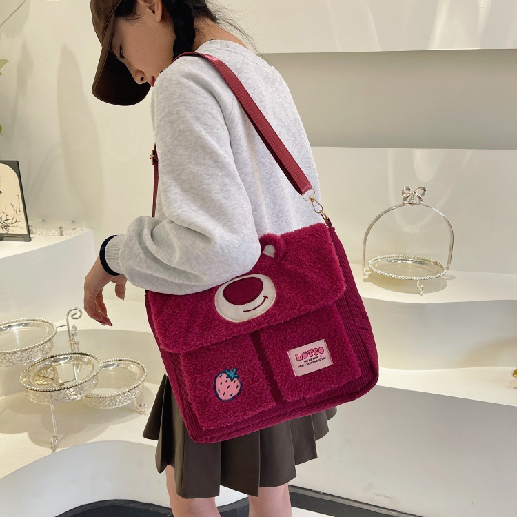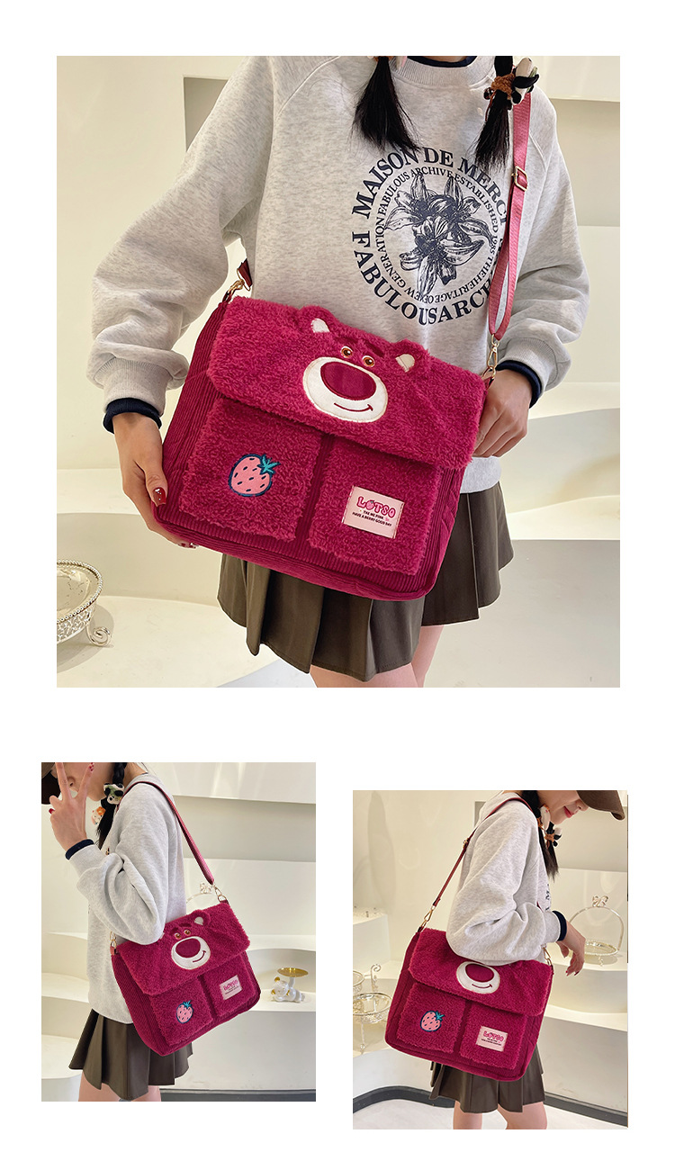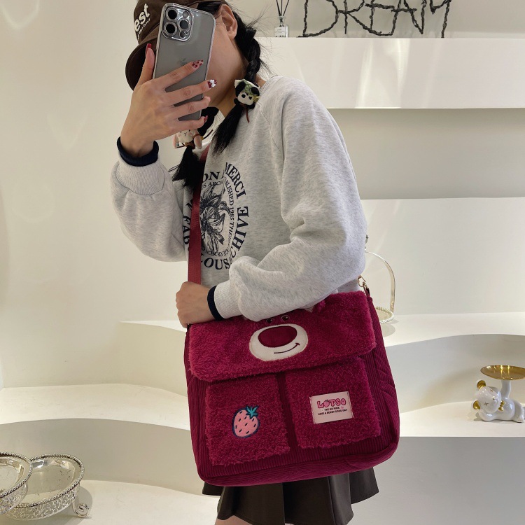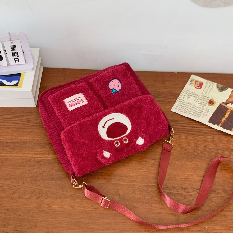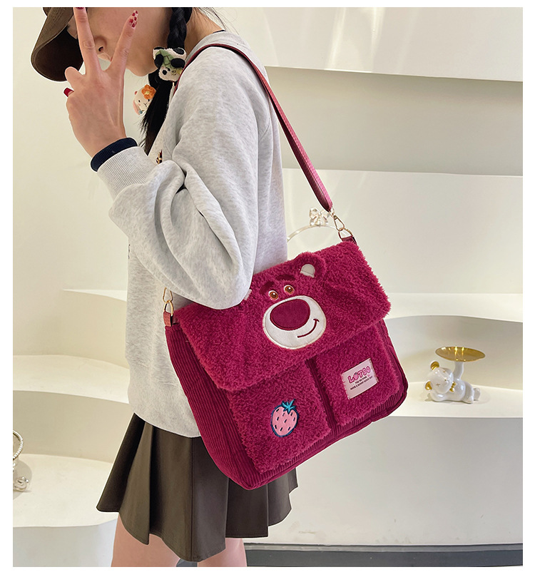 정품 라이선스 Zootopia Judy Nick Strawberry Bear Qiqi Plush Shoulder Bag 메신저 백 대용량