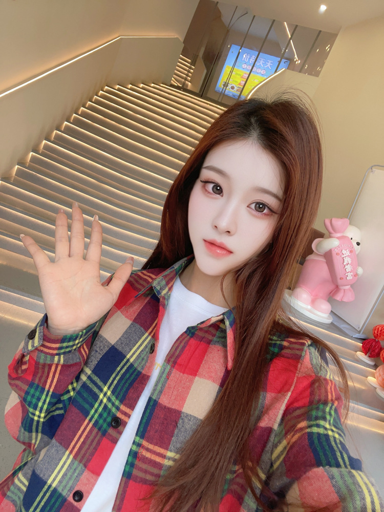 빨간 격자 무늬 셔츠 여성의 중간 길이의 봄과 가을 얇은 외투와 리넨 셔츠 긴 소매 선스크린 셔츠 서양식 최고 디자인 감각스토어 가기