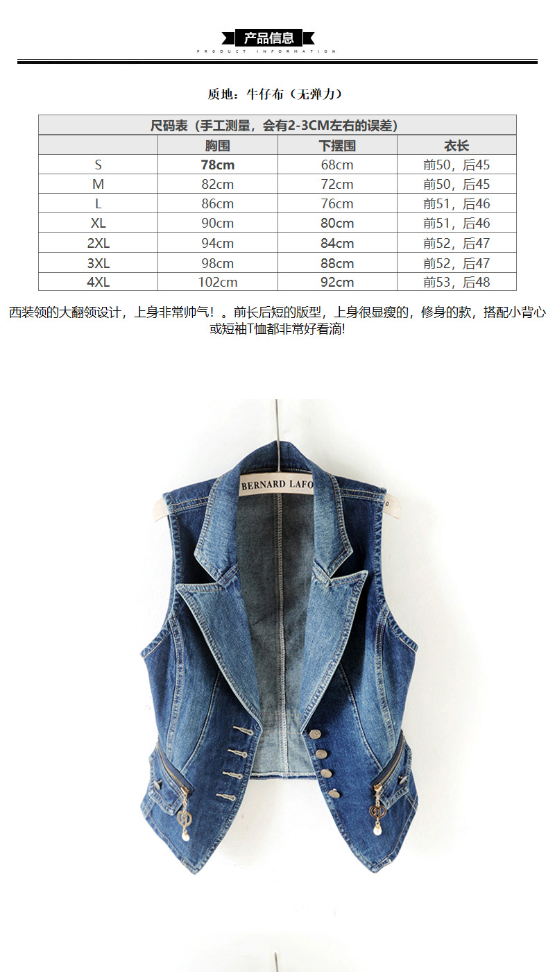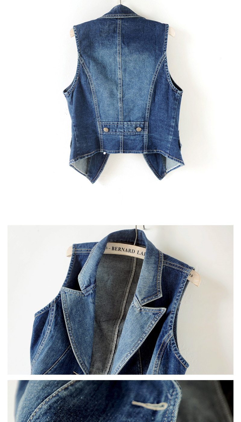 여성 봄과 가을 한국식 슬림 핏 원피스 칼라 짧은 민소매 데님 조끼 조끼 조끼 재킷 여름스토어 가기