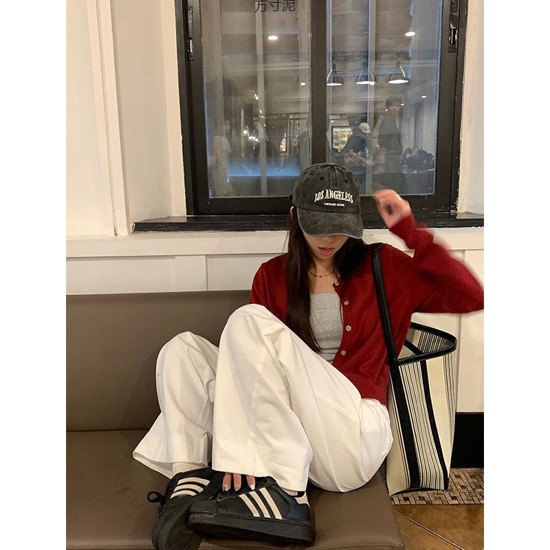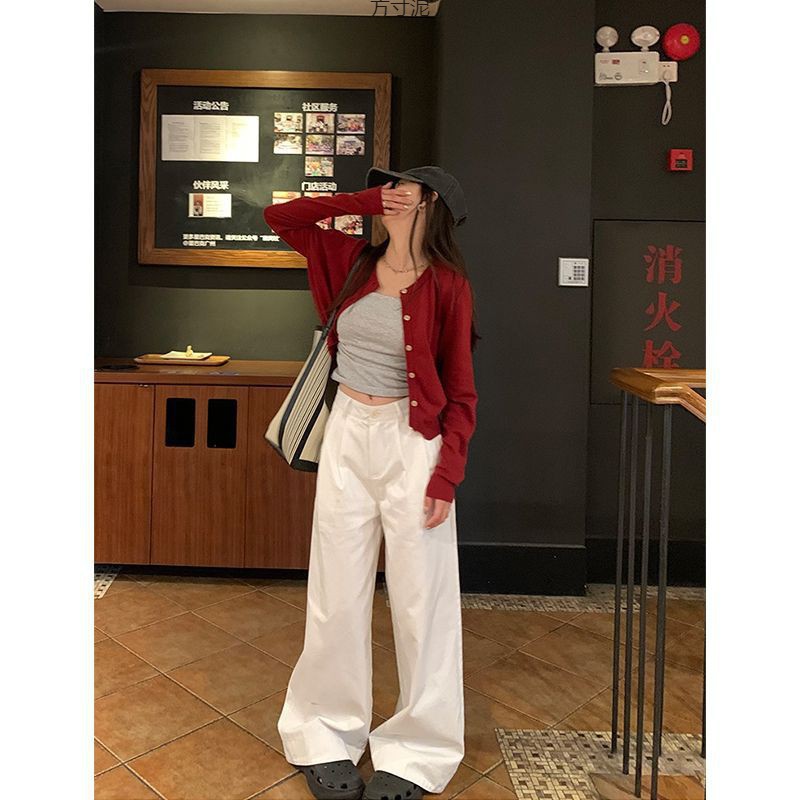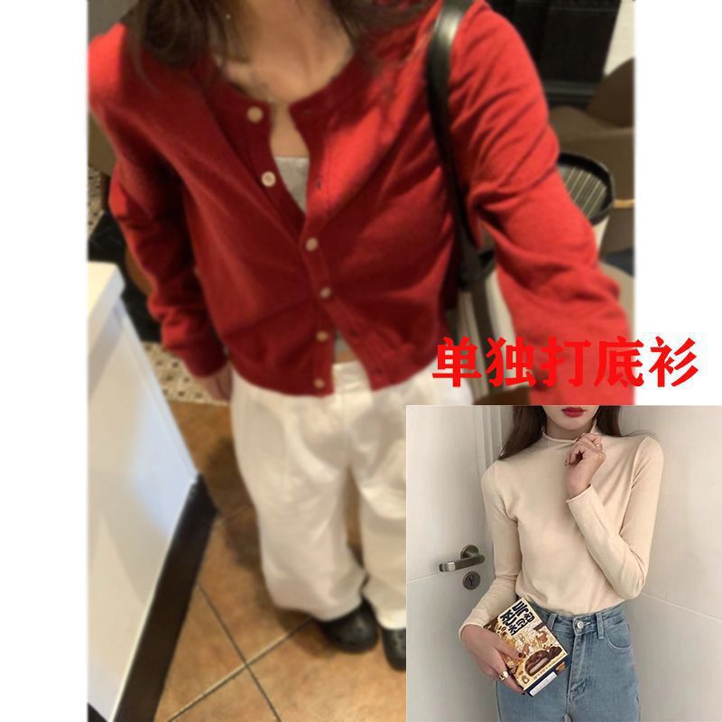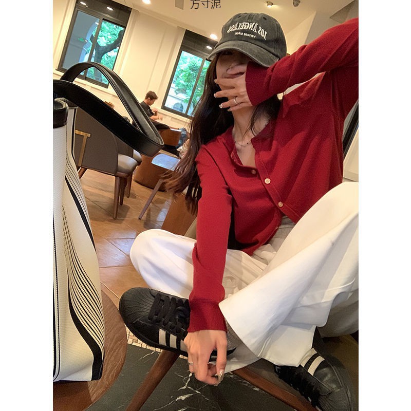 빨간 니트 카디건 이른 가을 여성의 새로운 2024 복장 짧은 스웨터 코트 긴 소매 탑베이스 셔츠스토어 가기