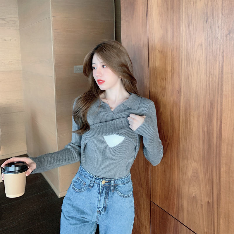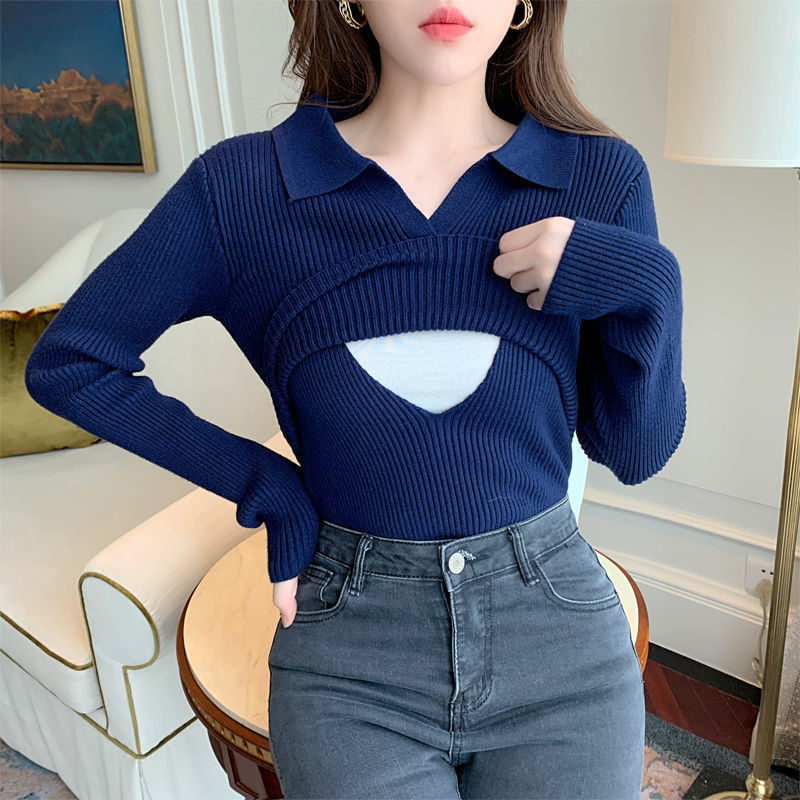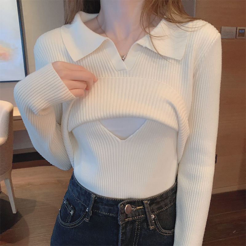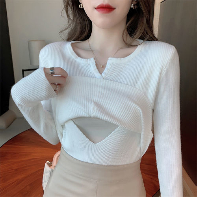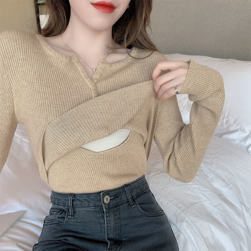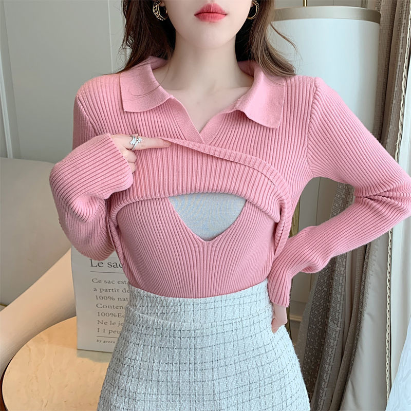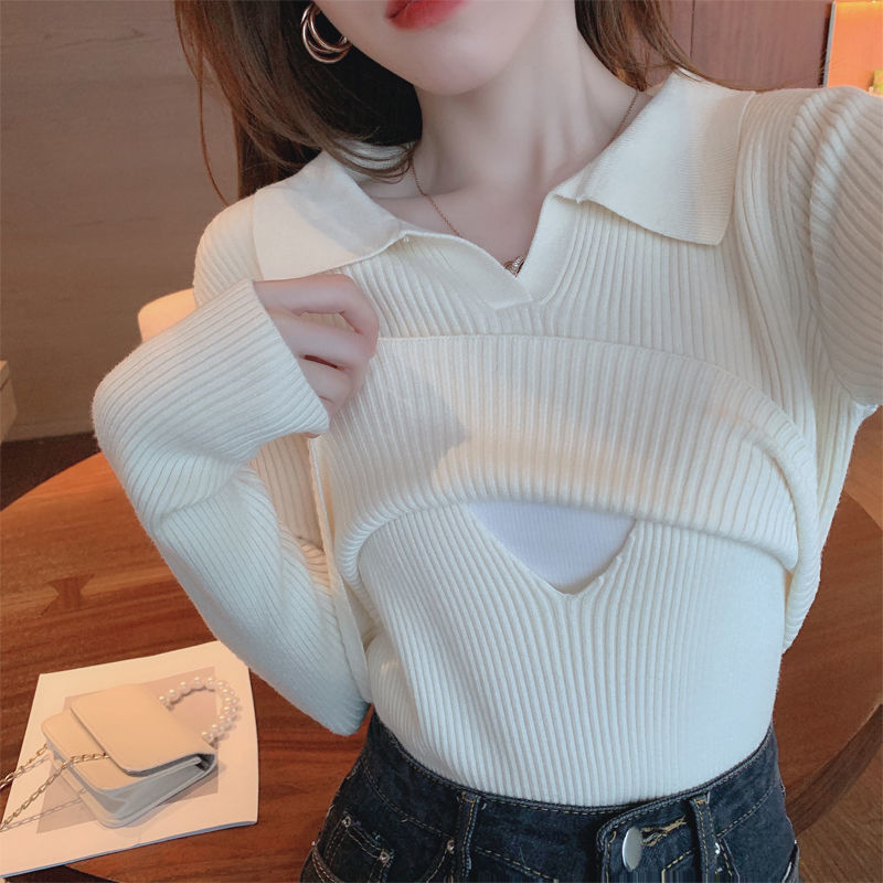 모유 수유 의류 최고 옷깃 스웨터 2021 가을과 겨울 밖으로 뜨거운 엄마 모유 수유 옷 긴 소매 가방 셔츠 니트 스웨터