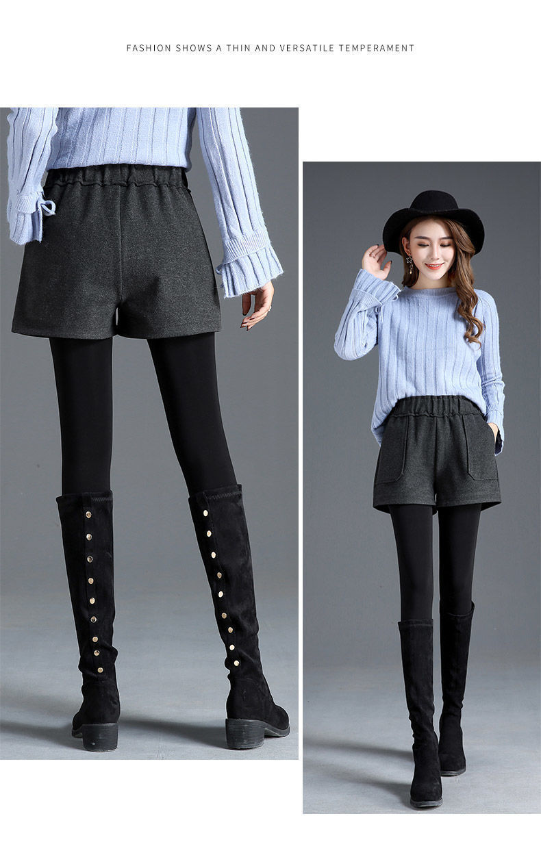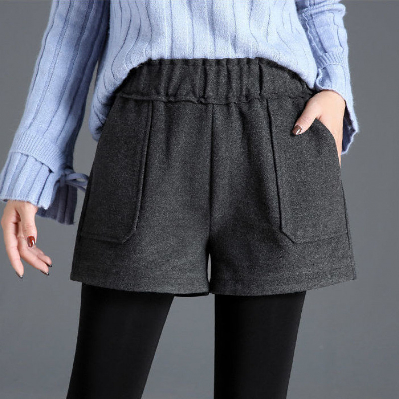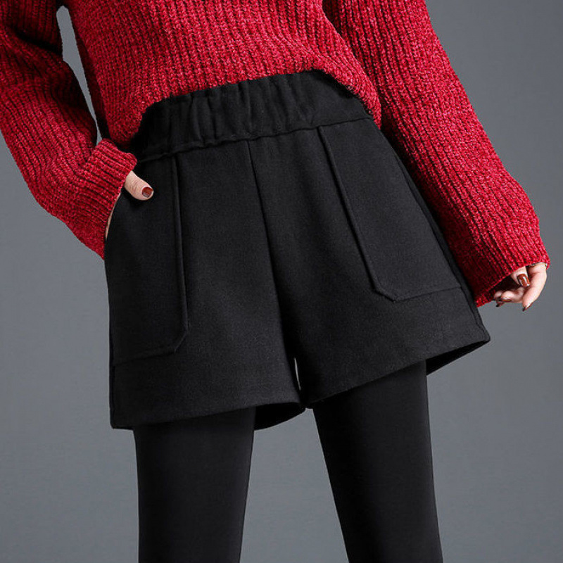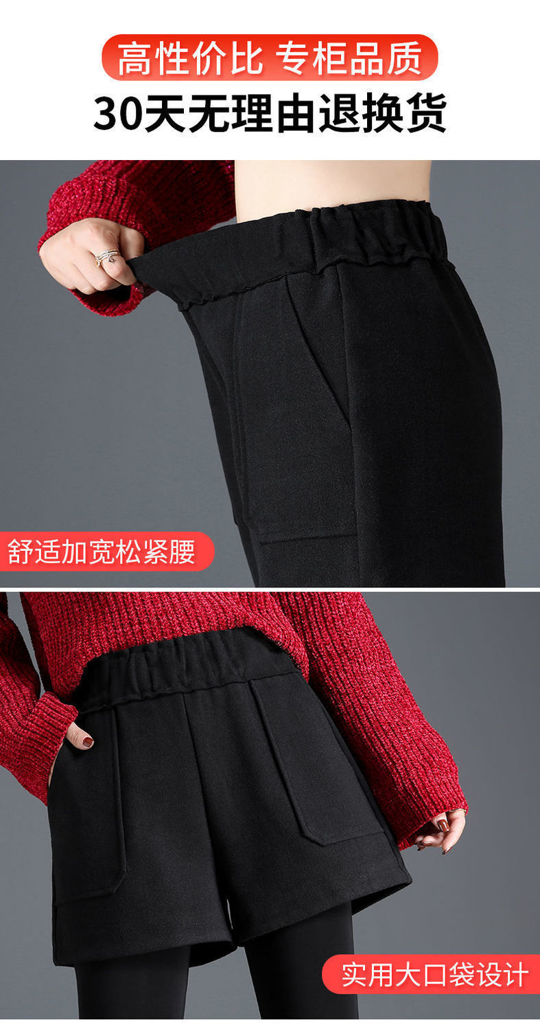 플러스 사이즈 넓은 다리 반바지 여성 2024 가을과 겨울 새로운 통통녀 모직 바지 뚱뚱한 자매 높은 허리 슬림 겉옷 부츠스토어 가기