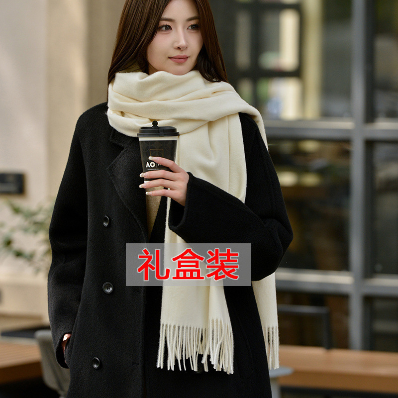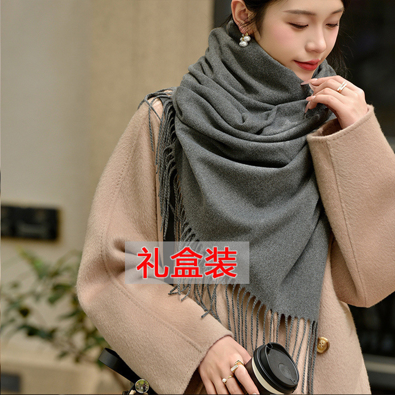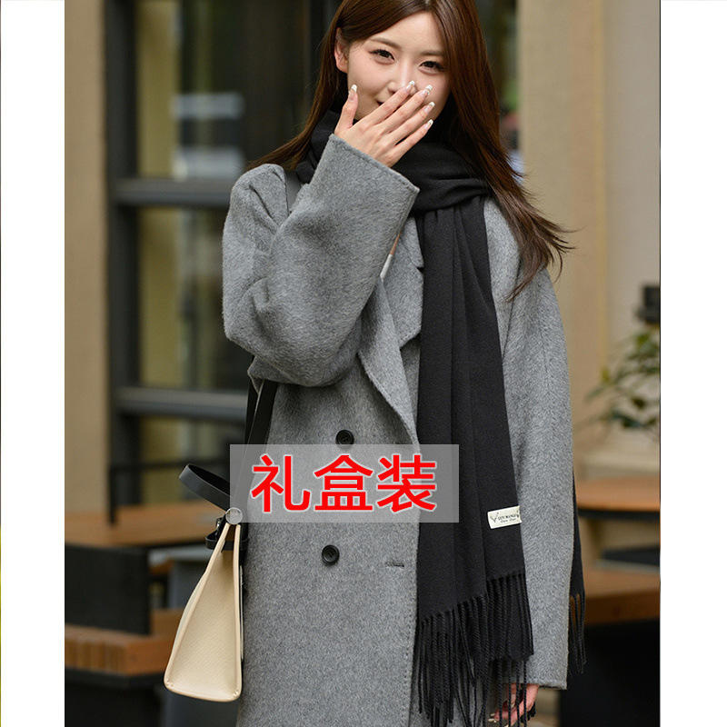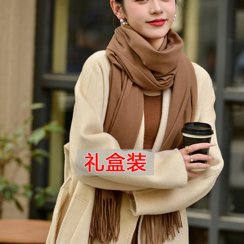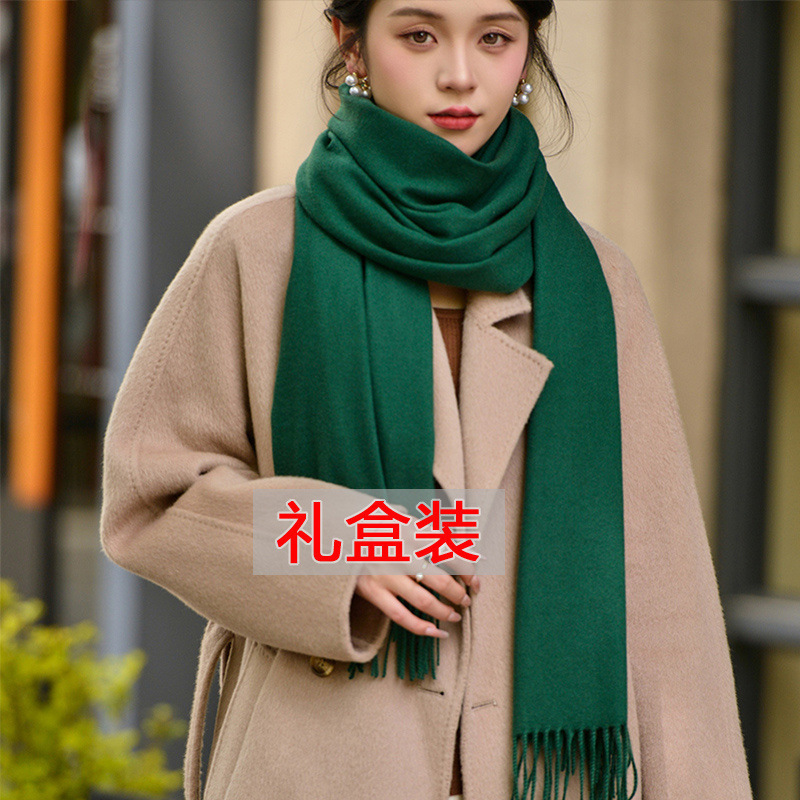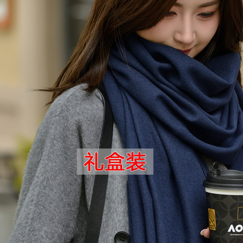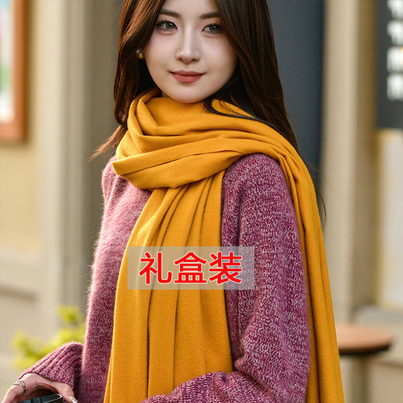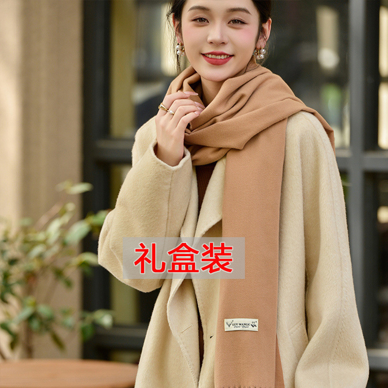 선물 상자 두꺼운 양모 스카프 여성의 겨울 따뜻한 학생 단색 남성 스카프 여성의 2024 새로운 하이 엔드 감각스토어 가기