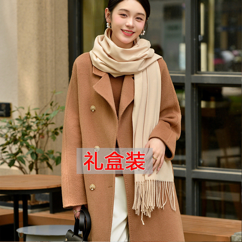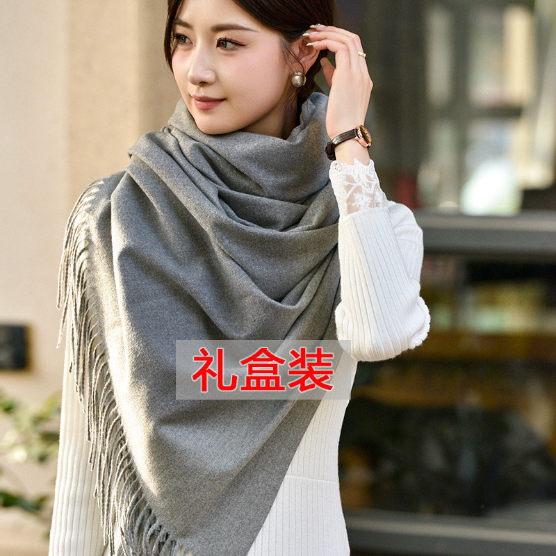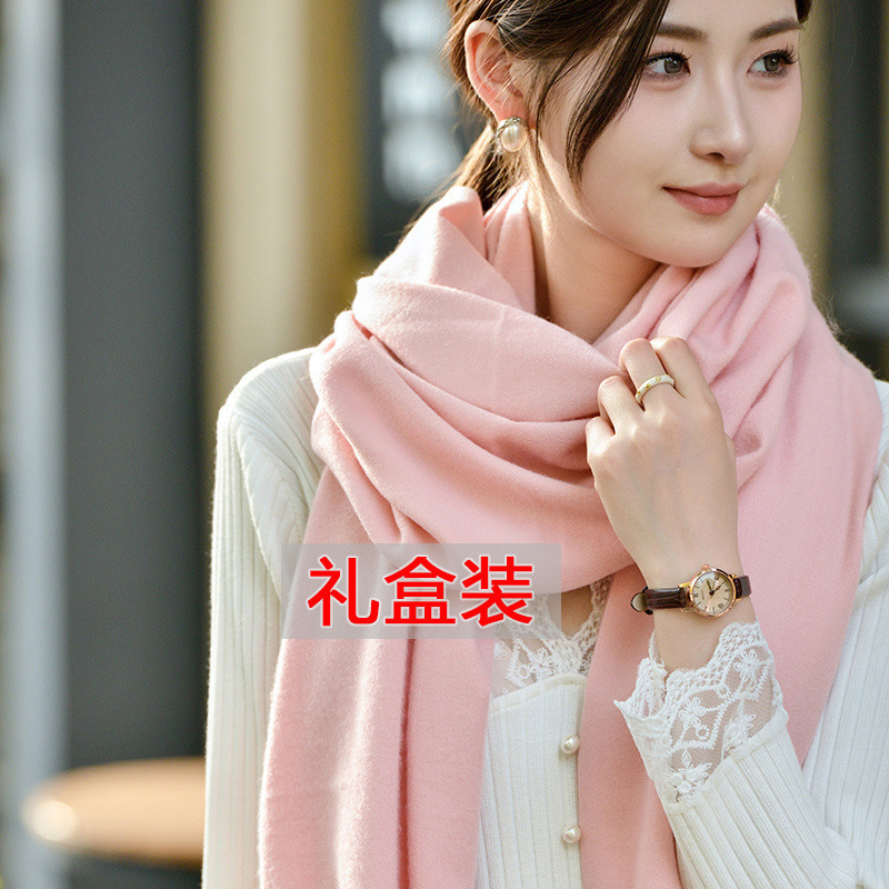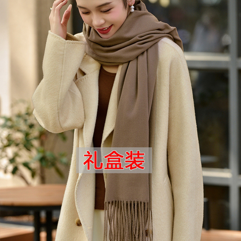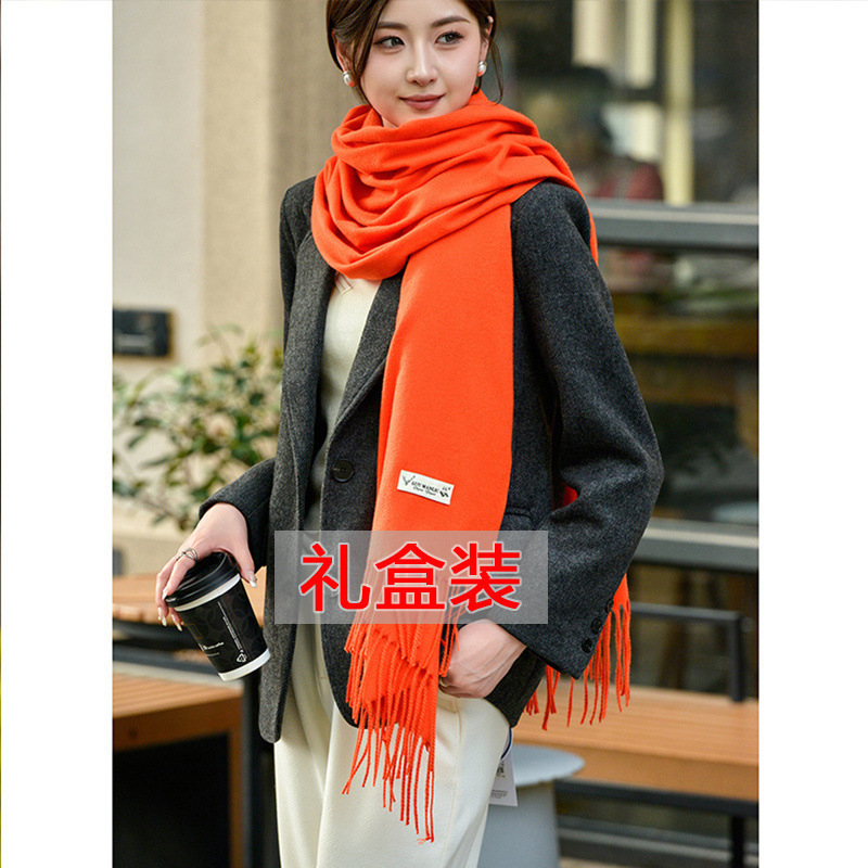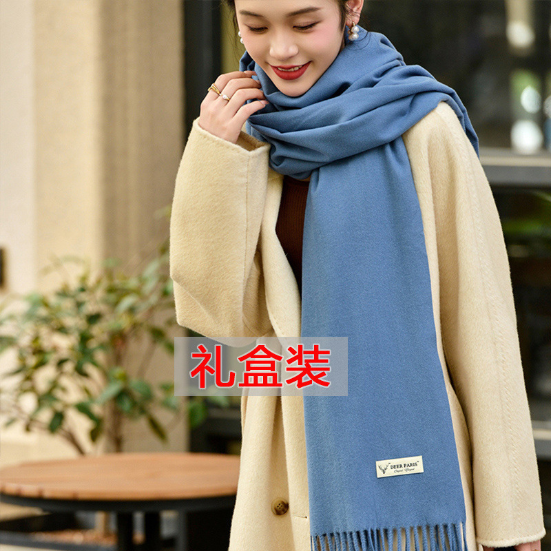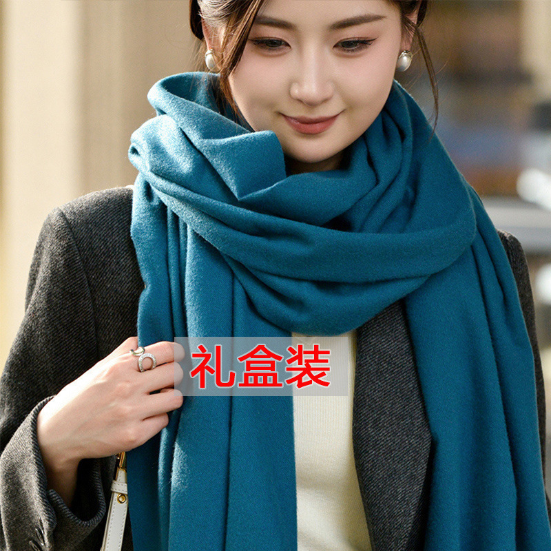선물 상자 두꺼운 양모 스카프 여성의 겨울 따뜻한 학생 단색 남성 스카프 여성의 2024 새로운 하이 엔드 감각스토어 가기