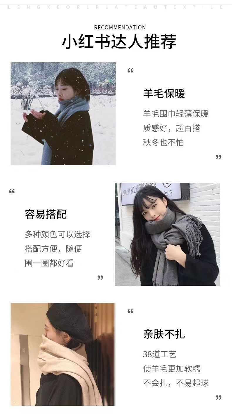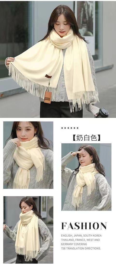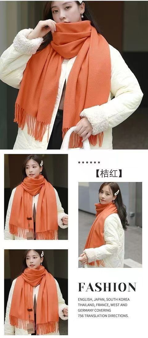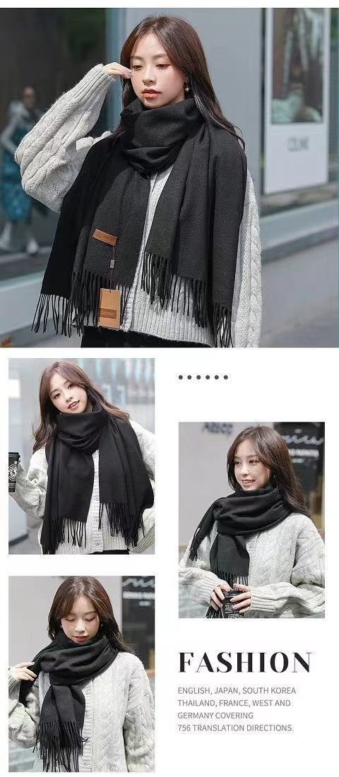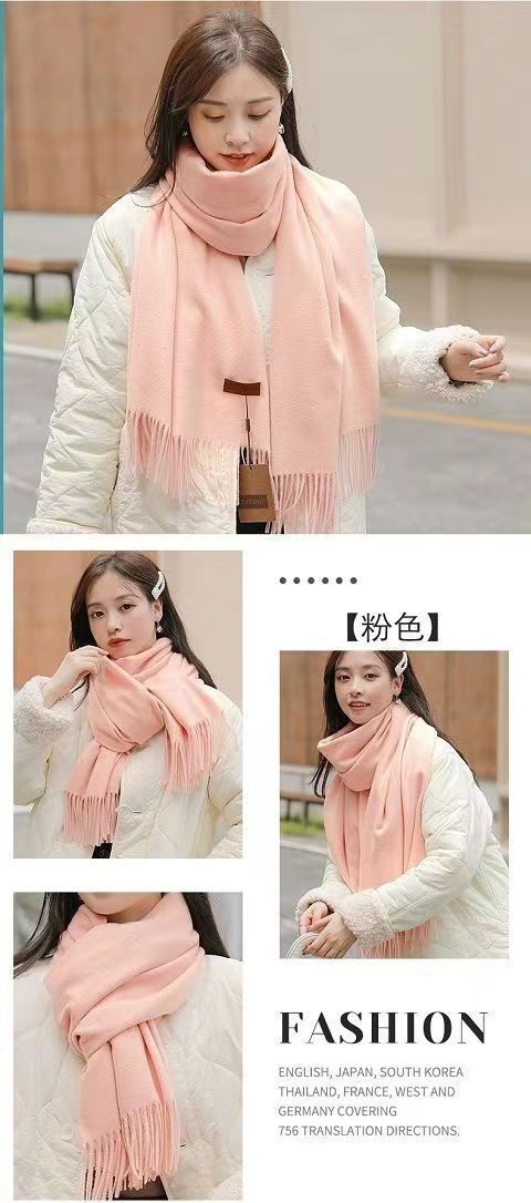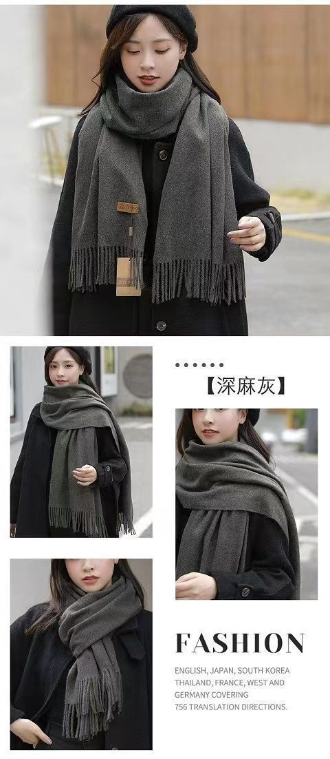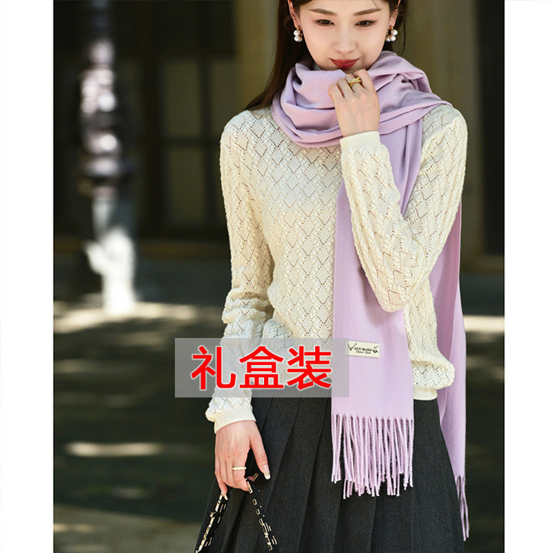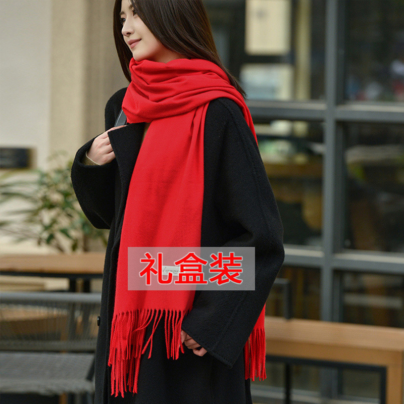 선물 상자 두꺼운 양모 스카프 여성의 겨울 따뜻한 학생 단색 남성 스카프 여성의 2024 새로운 하이 엔드 감각스토어 가기