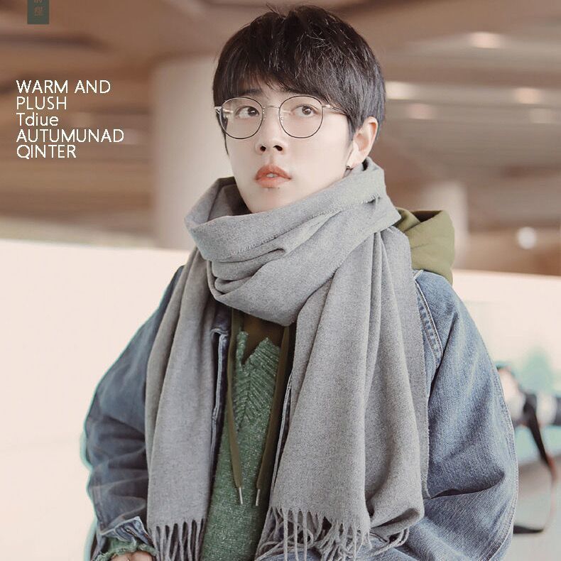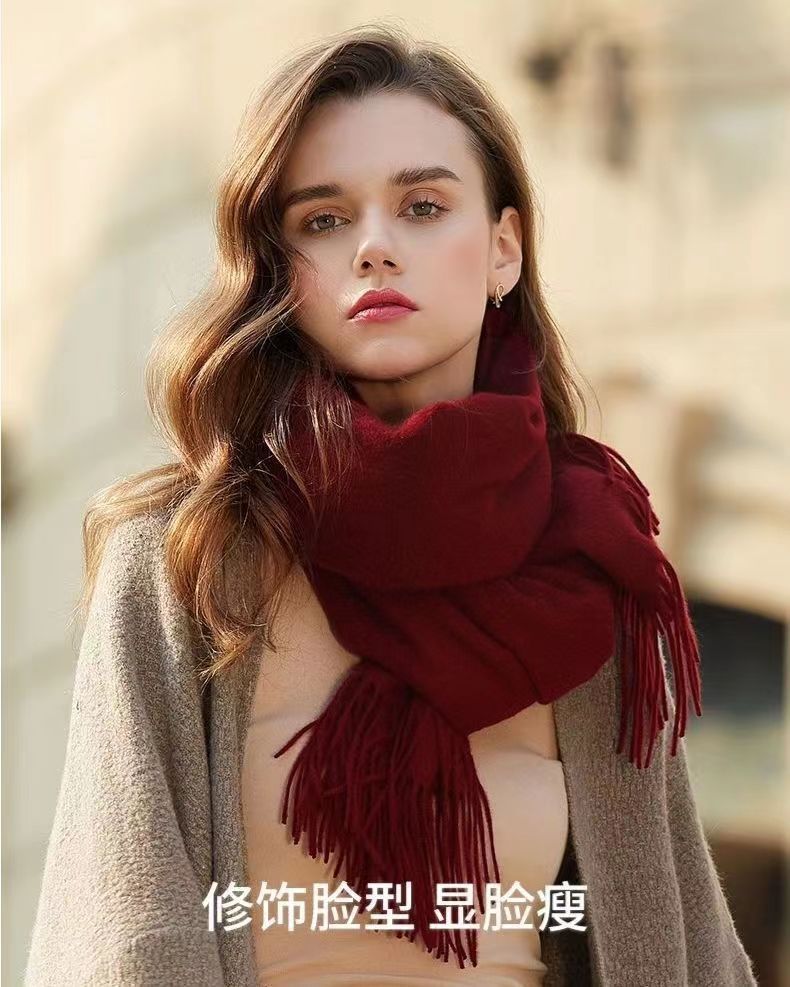 선물 상자 두꺼운 양모 스카프 여성의 겨울 따뜻한 학생 단색 남성 스카프 여성의 2024 새로운 하이 엔드 감각