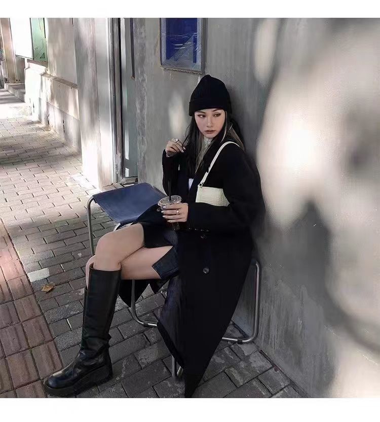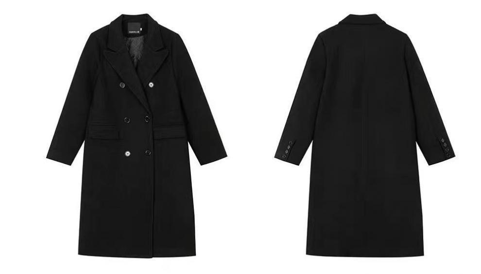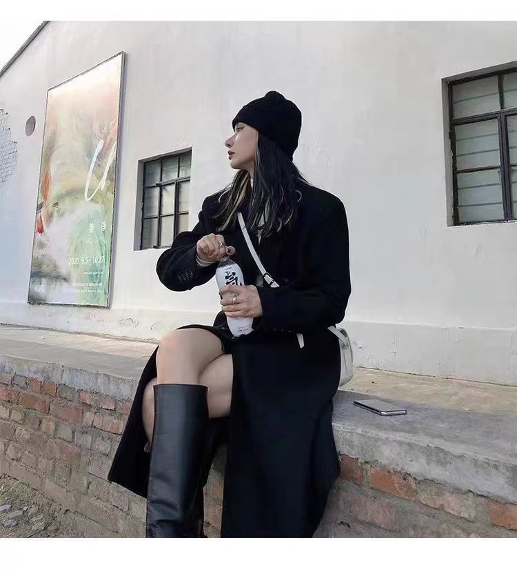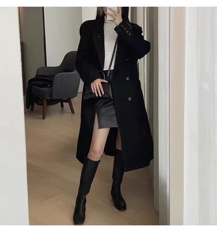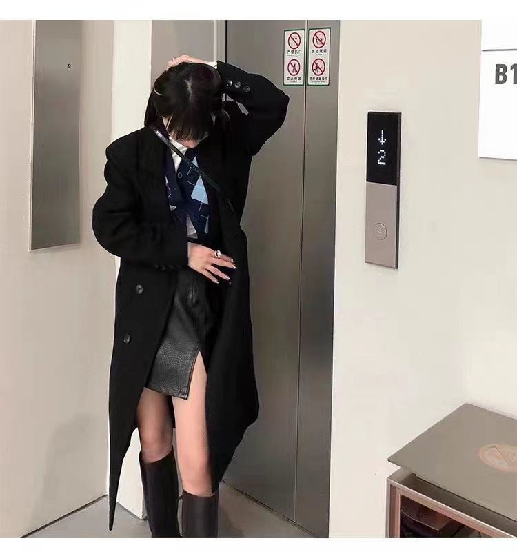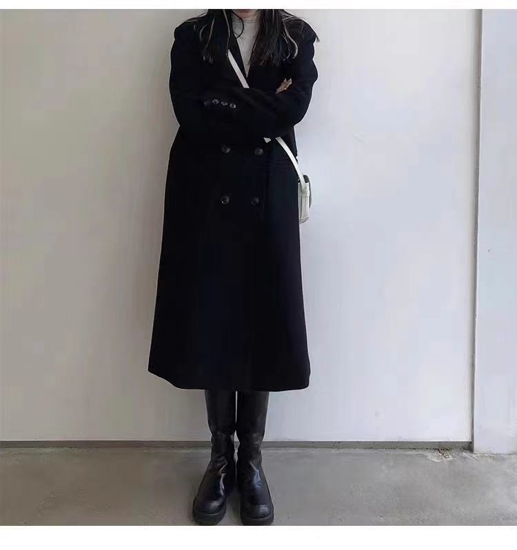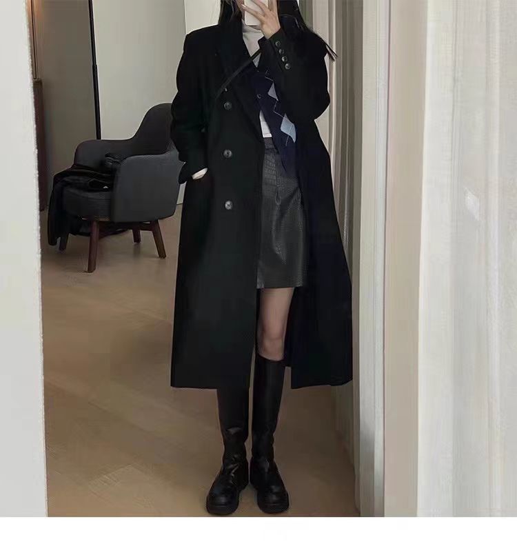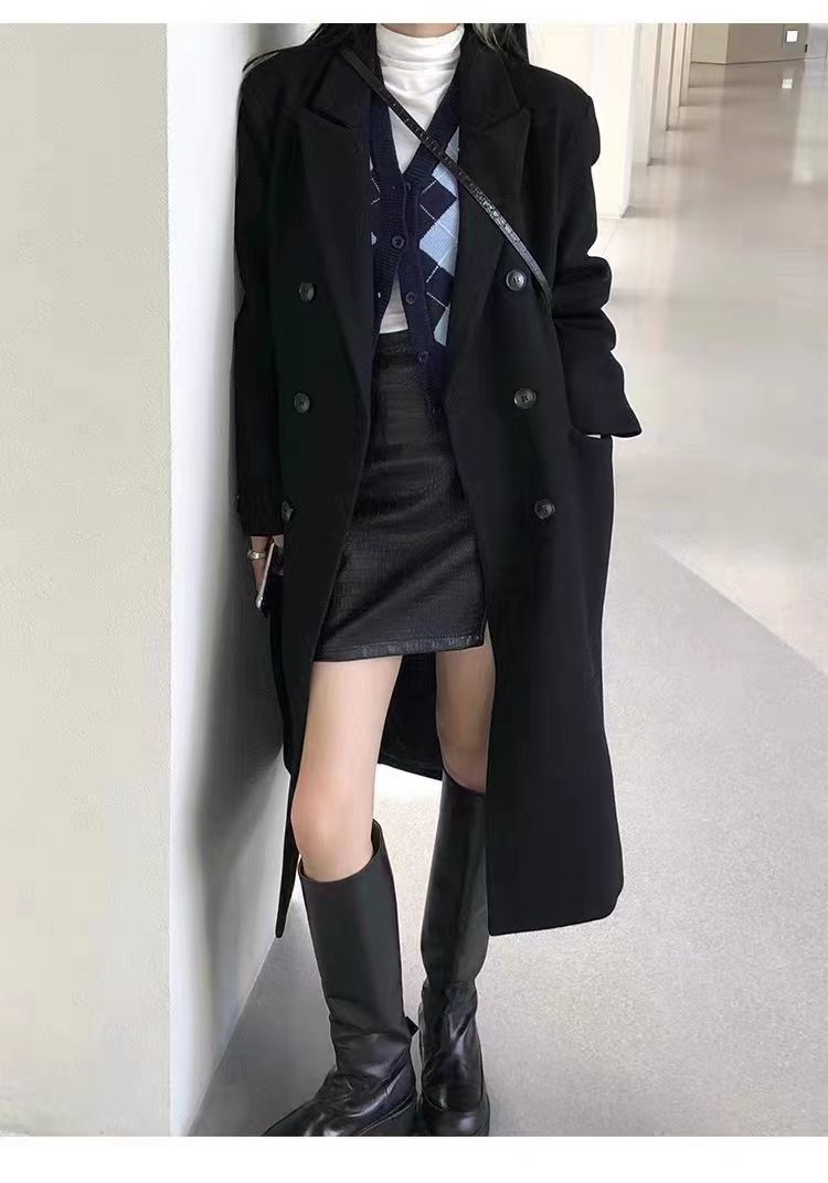 긴 검은 모직 코트 여자 2024 가을 겨울 모직 코트 새로운 한국 스타일 작은 일본 영국 스타일스토어 가기