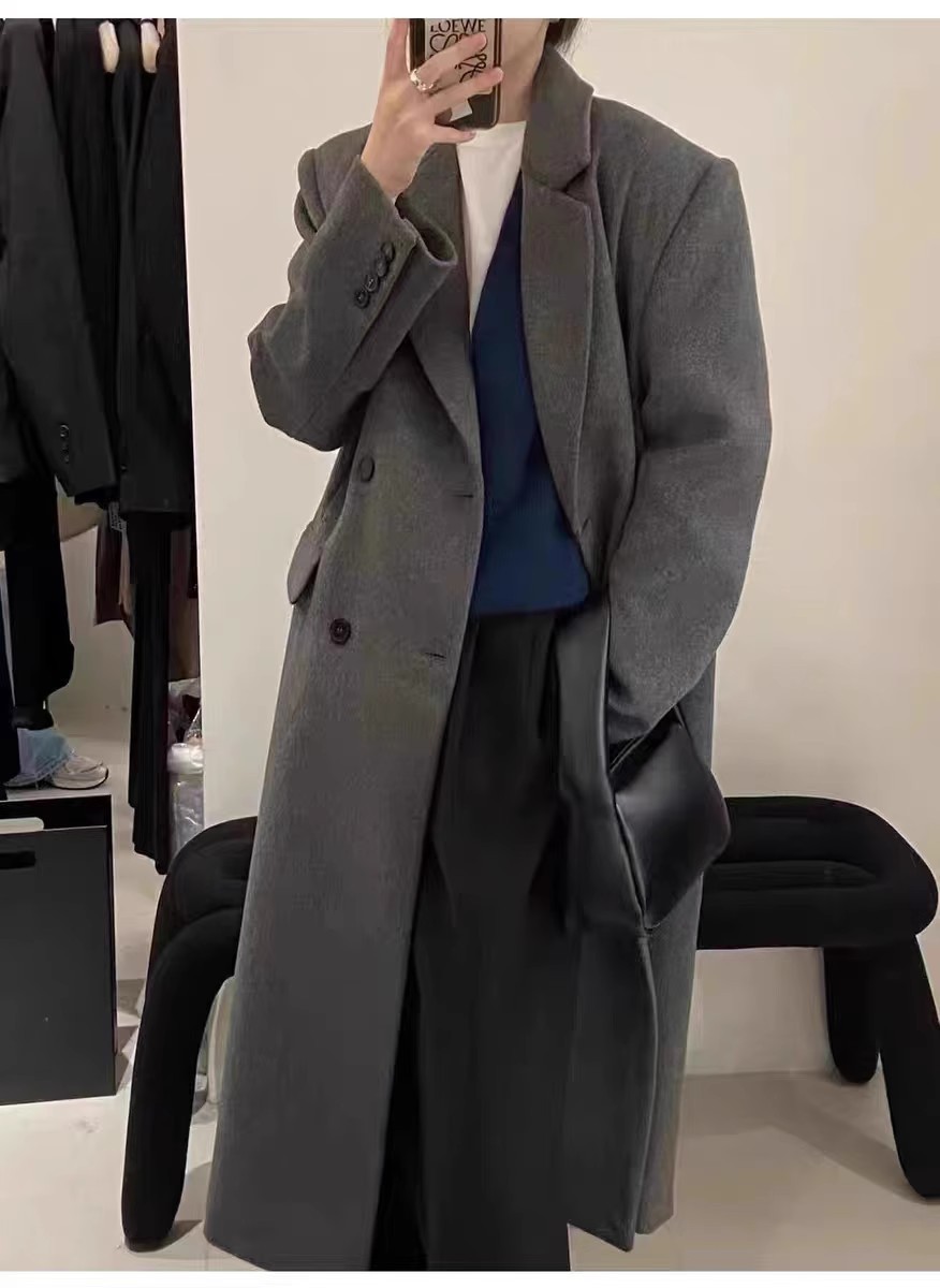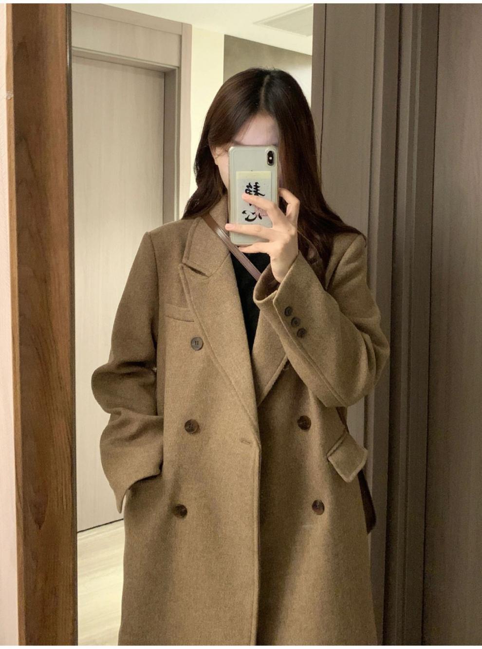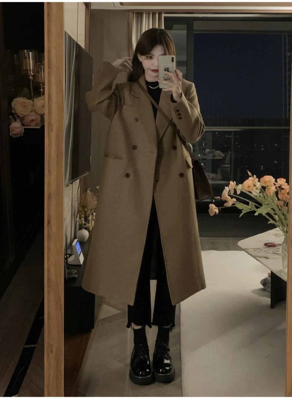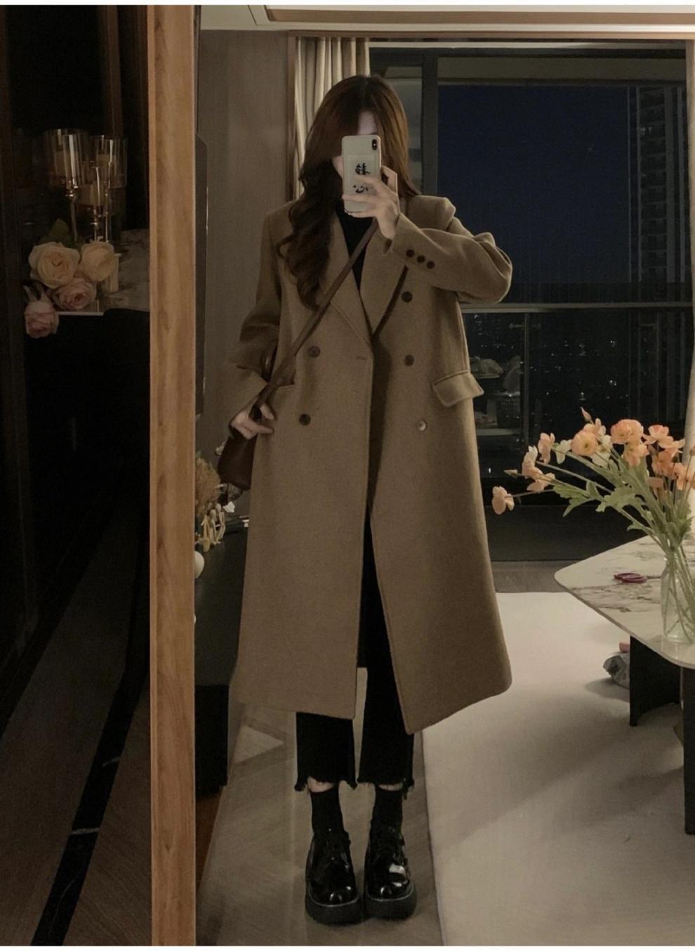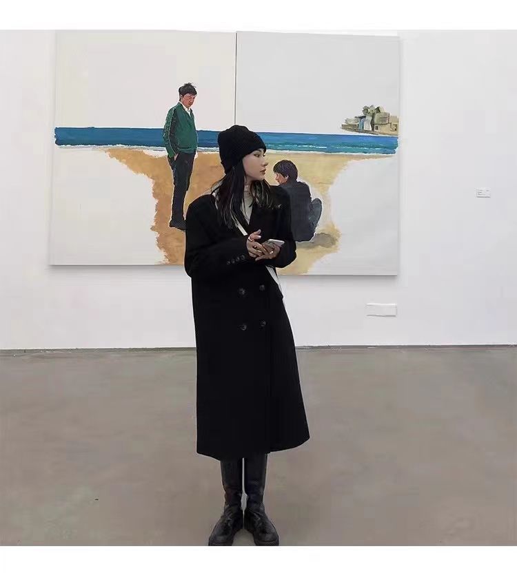 긴 검은 모직 코트 여자 2024 가을 겨울 모직 코트 새로운 한국 스타일 작은 일본 영국 스타일스토어 가기