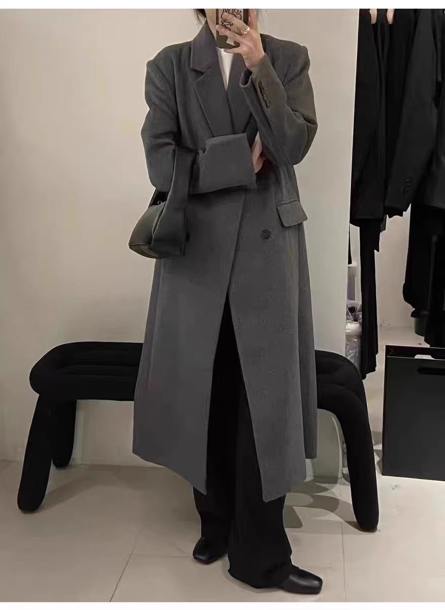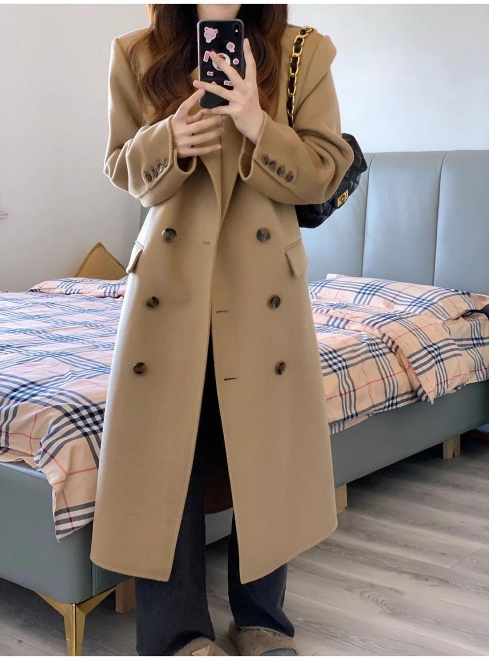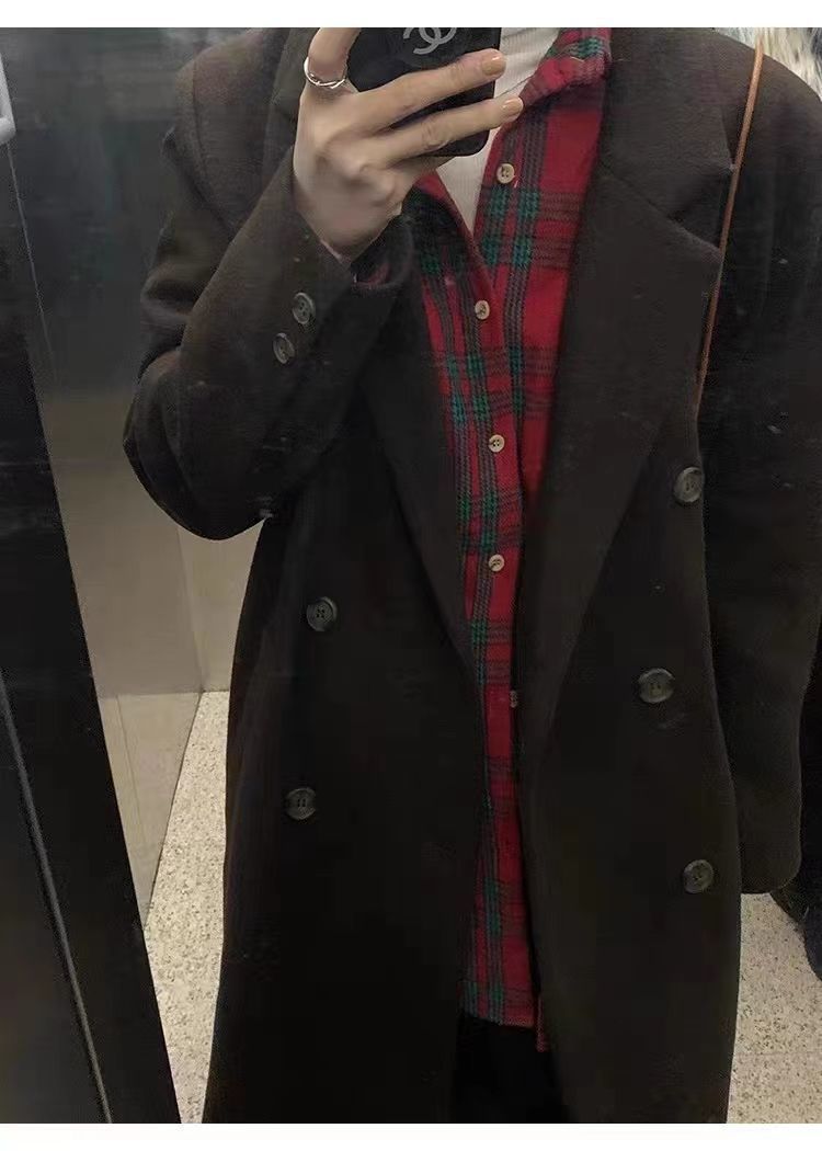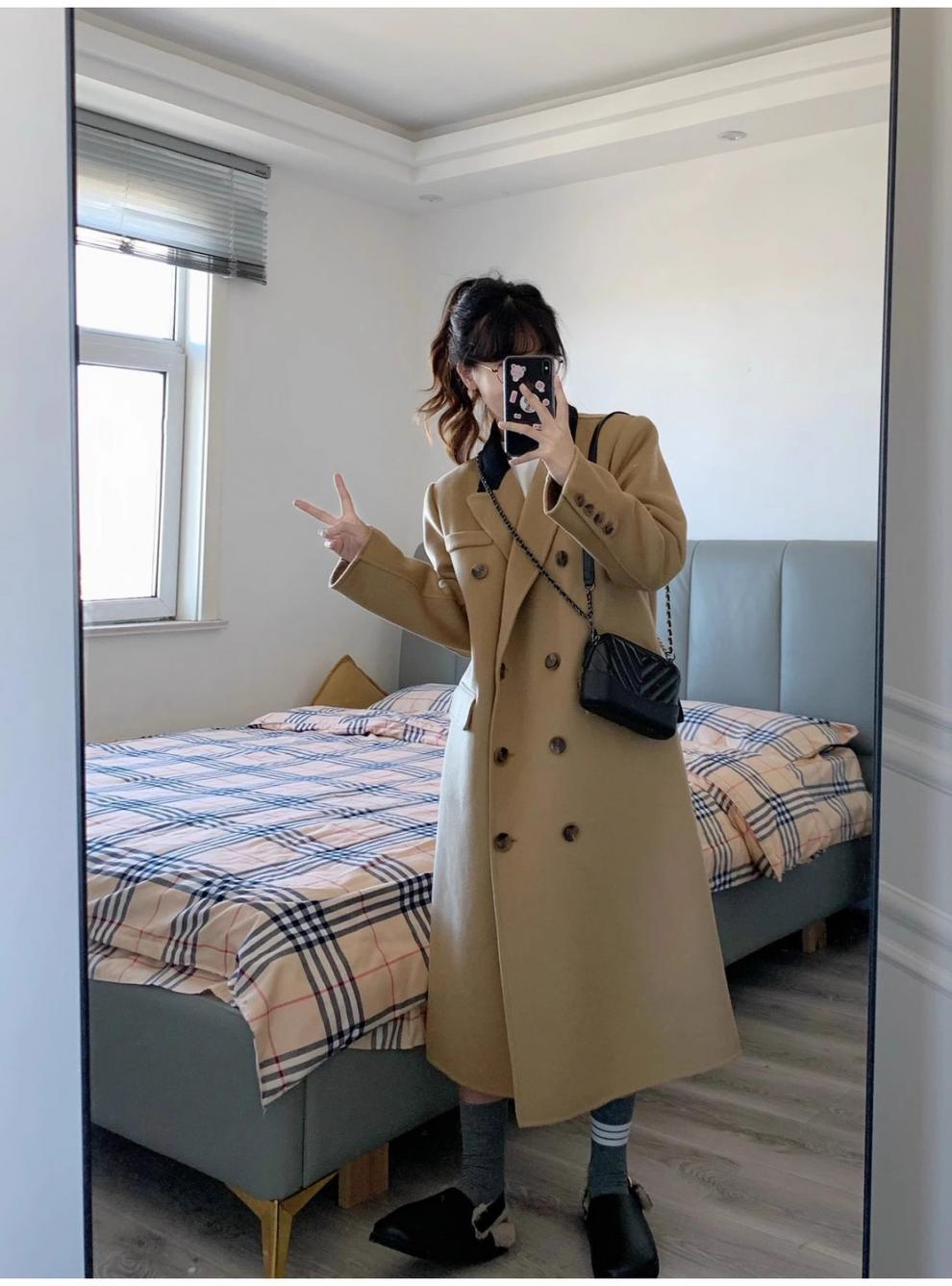 긴 검은 모직 코트 여자 2024 가을 겨울 모직 코트 새로운 한국 스타일 작은 일본 영국 스타일스토어 가기