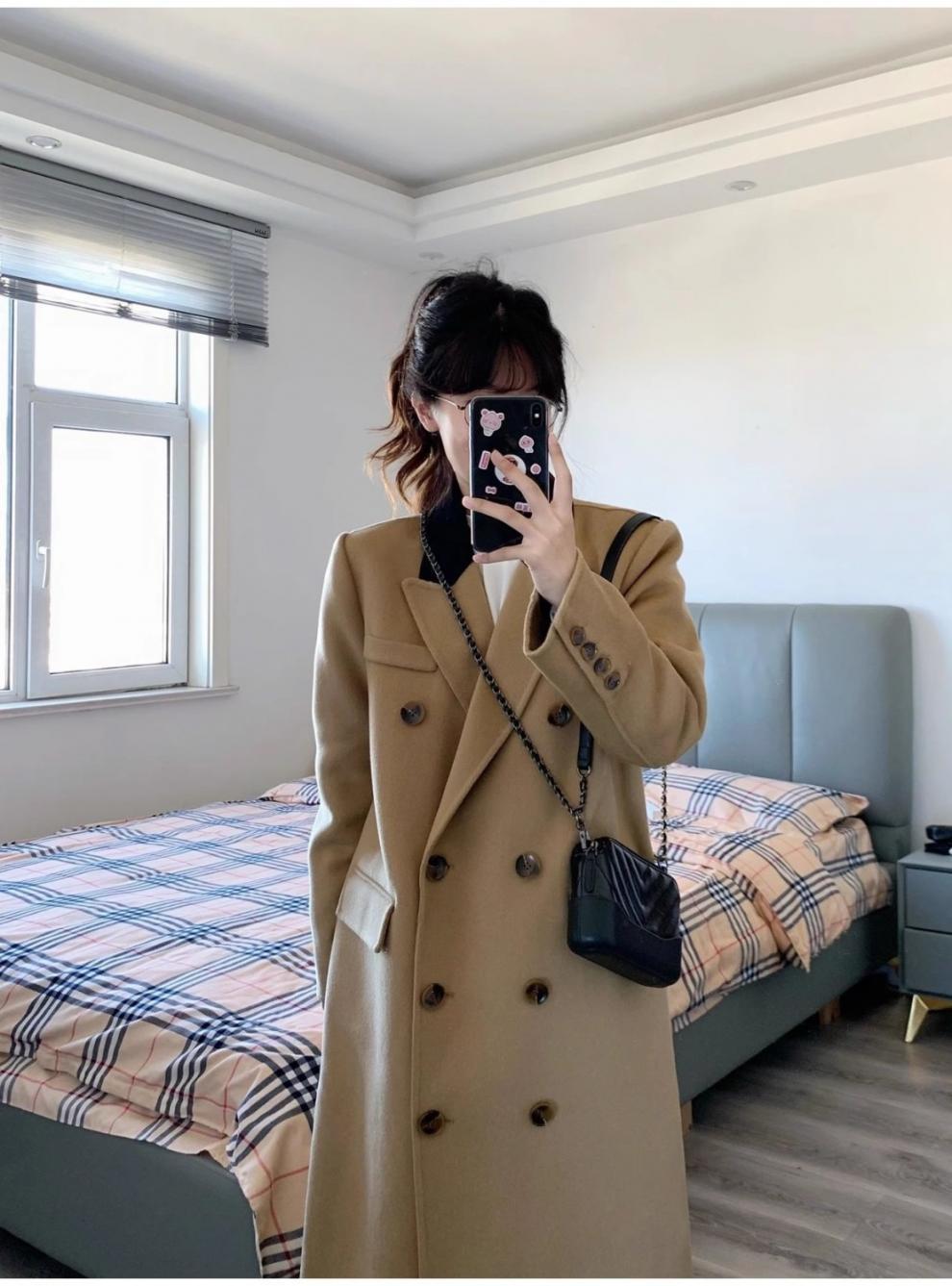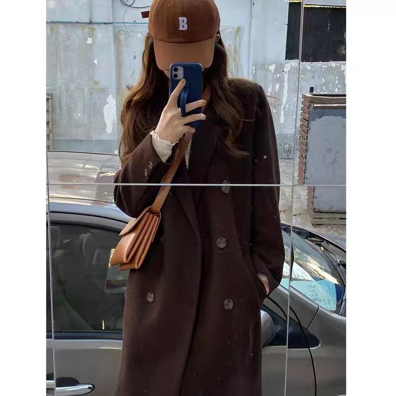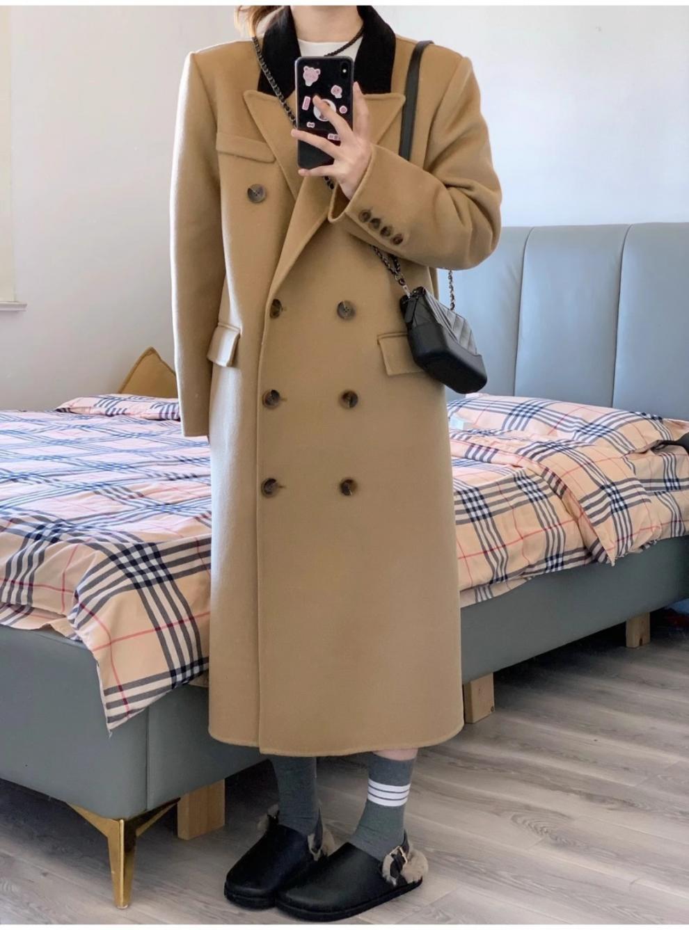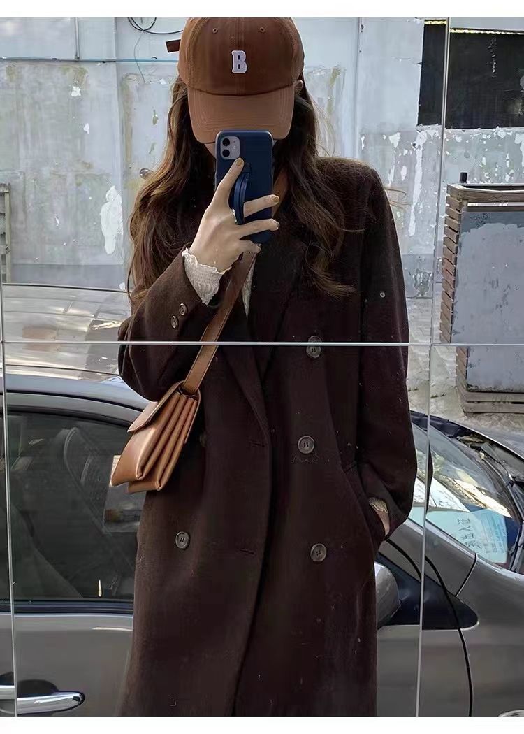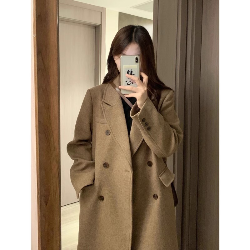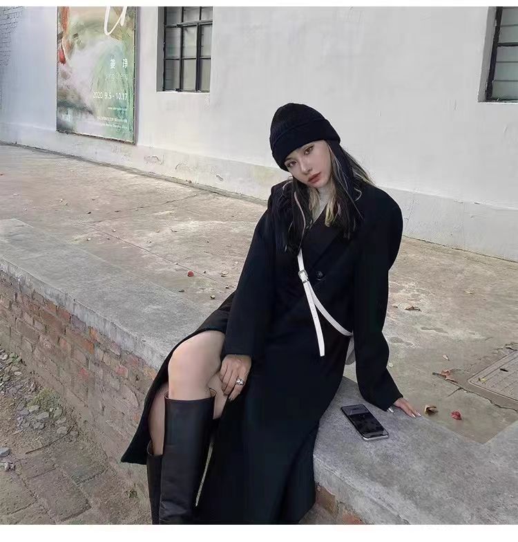 긴 검은 모직 코트 여자 2024 가을 겨울 모직 코트 새로운 한국 스타일 작은 일본 영국 스타일스토어 가기