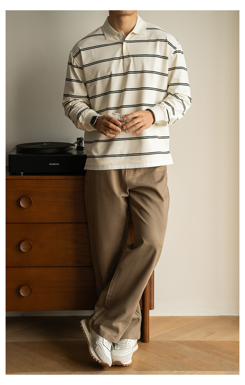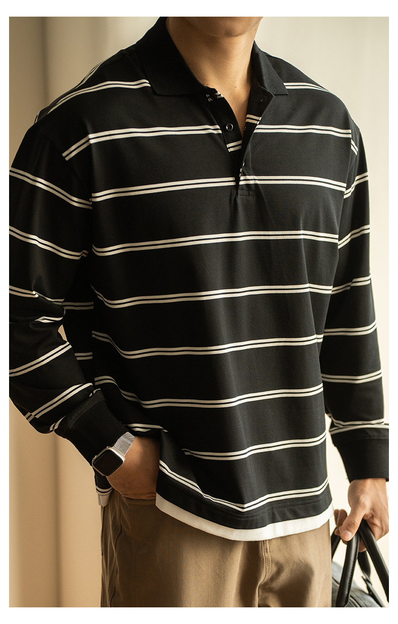 가짜 투피스 빗 긴스테이플 코튼 마이크로 루즈 스트라이프 긴팔 폴로 셔츠 남자 2025 봄 옷깃 티셔츠 스웨터스토어 가기