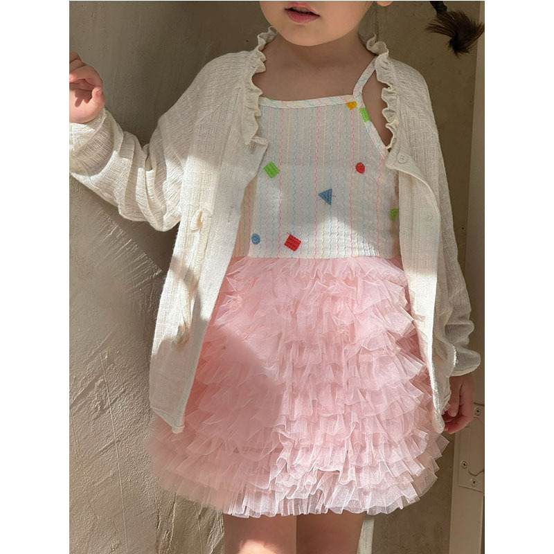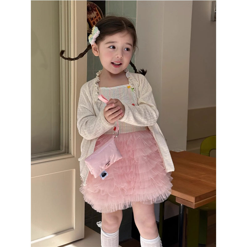 달콤한 소녀 스타일 2026 봄 여름 세트 어린이 케이크 스트랩 스커트 공주풍 패셔너블 가디건 투피스 세트 트렌디스토어 가기