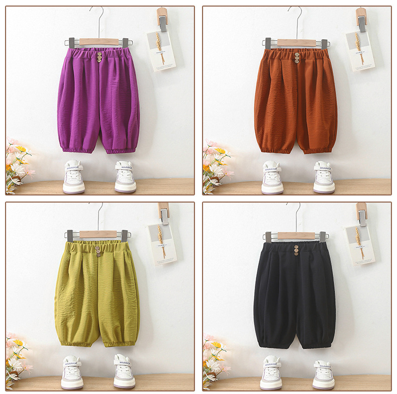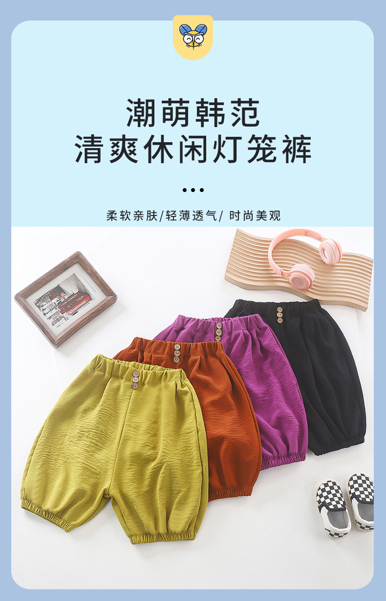 2025 어린이 반바지 여름 뉴 보이스 블루머스 걸스 베이비 카프리 팬츠 캐주얼 올 매치 빅 크로 치 바지스토어 가기