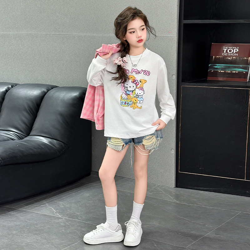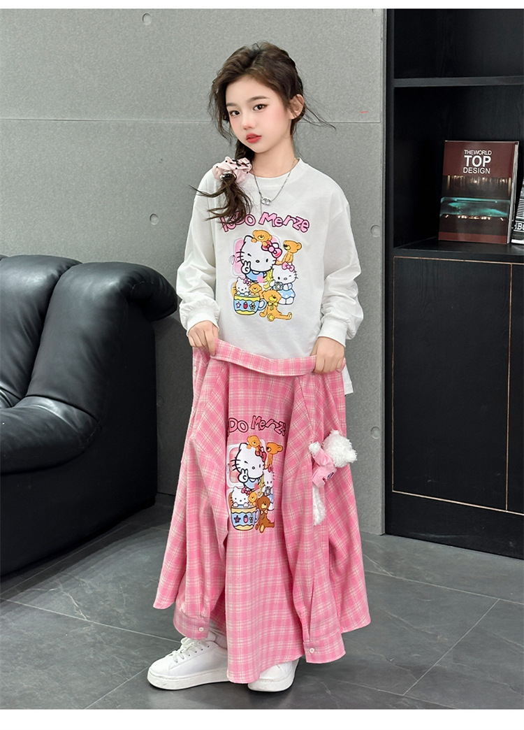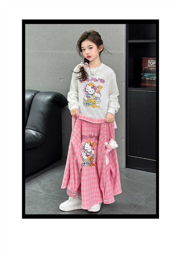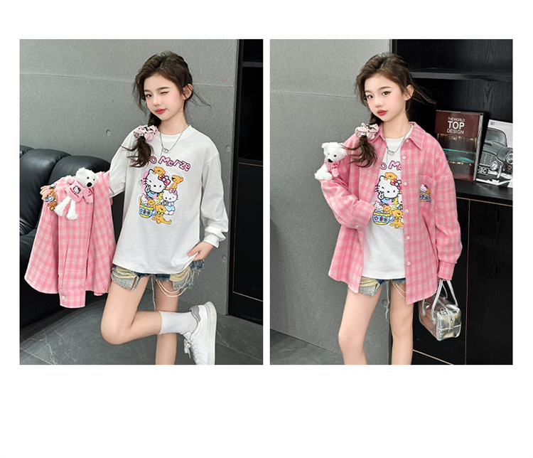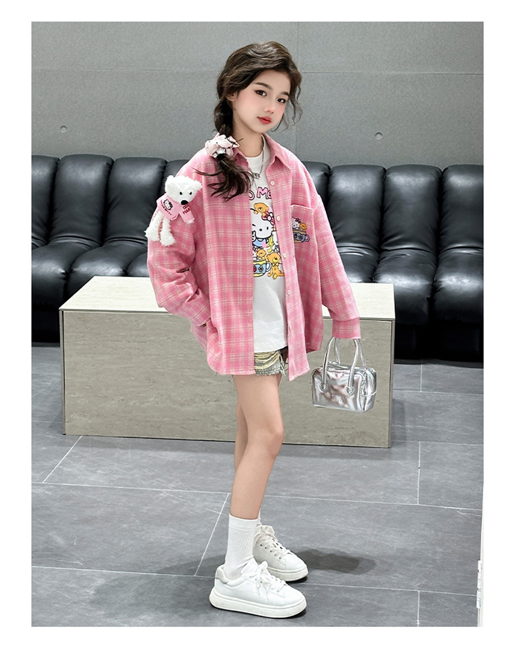 2025 여자 셔츠 새로운 봄, 가을 의류 어린이 중대형 어린이 스타일 격자 무늬 셔츠 가을 중간 길이상의