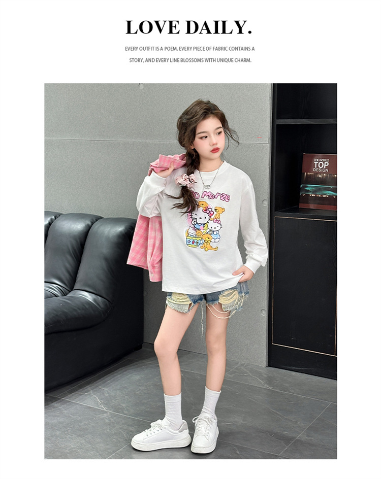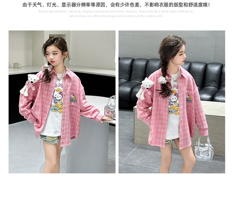 2025 여자 셔츠 새로운 봄, 가을 의류 어린이 중대형 어린이 스타일 격자 무늬 셔츠 가을 중간 길이상의스토어 가기