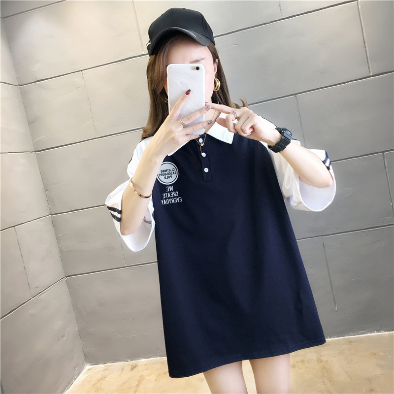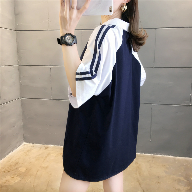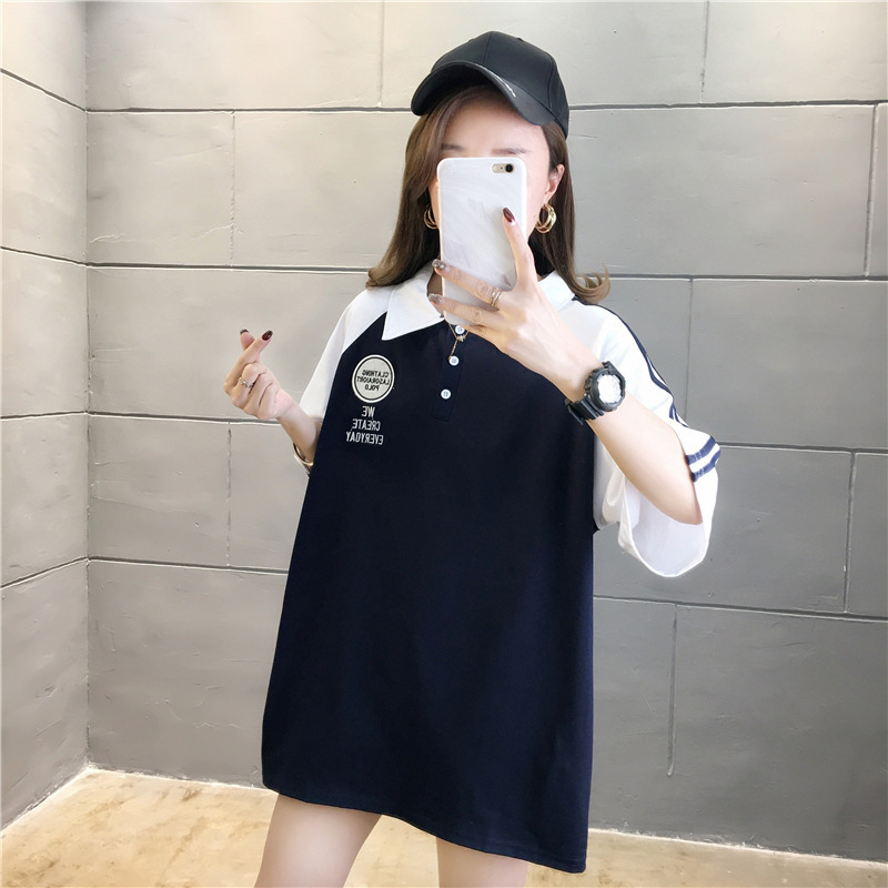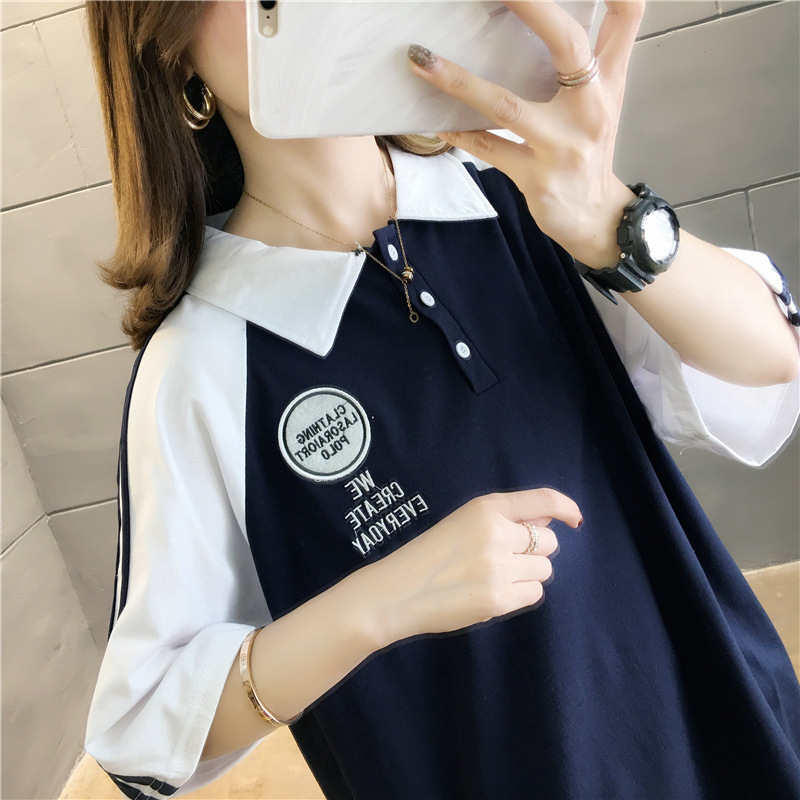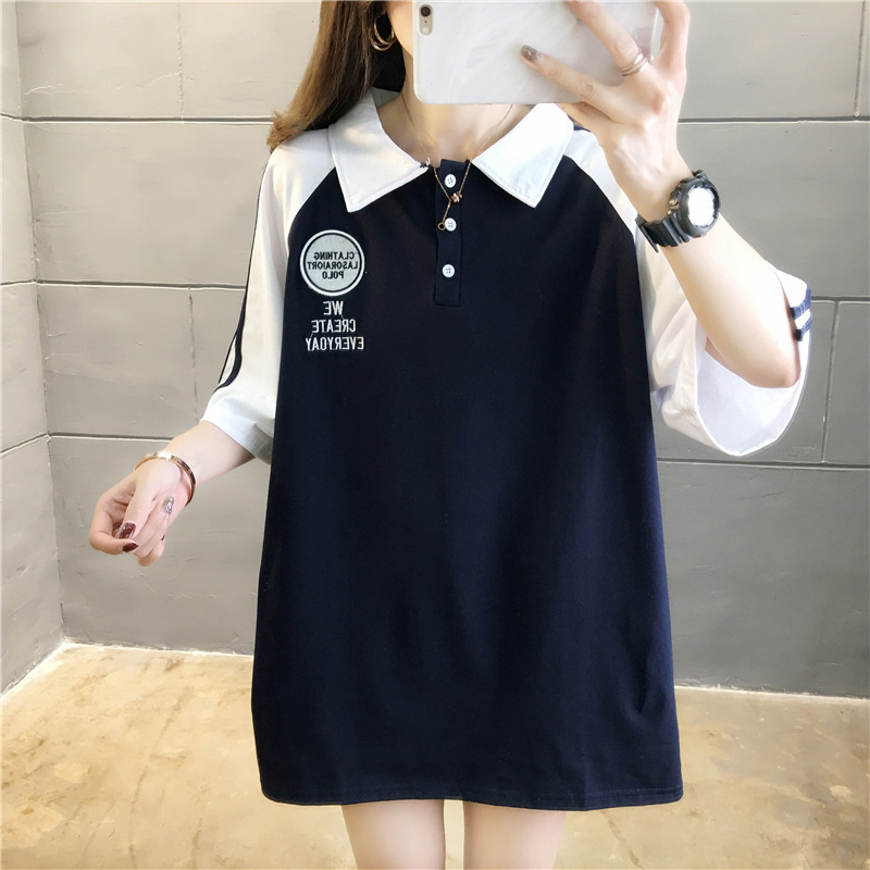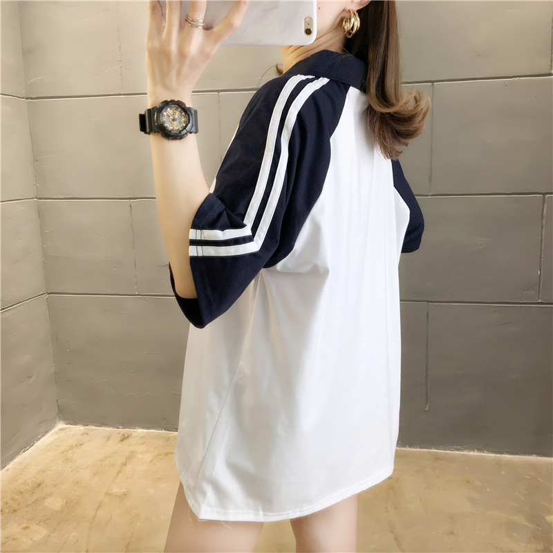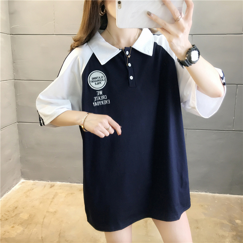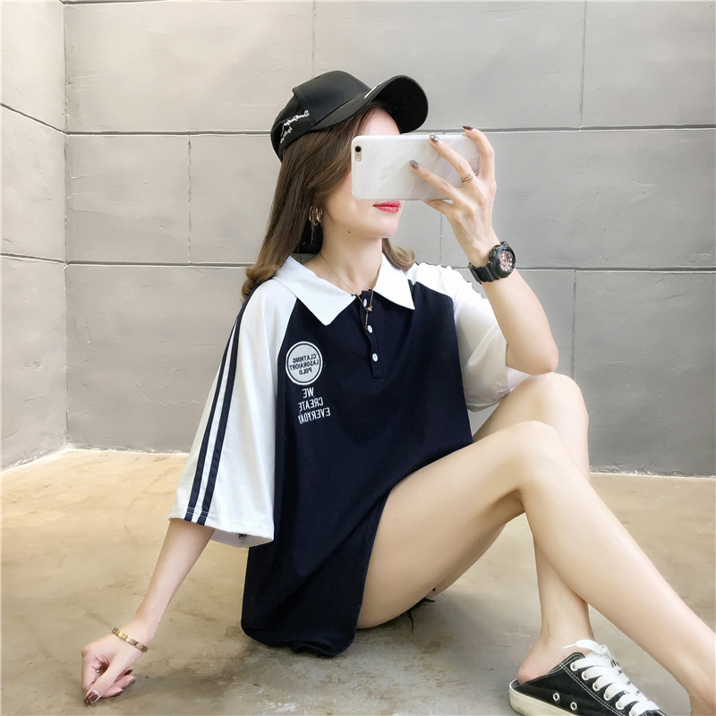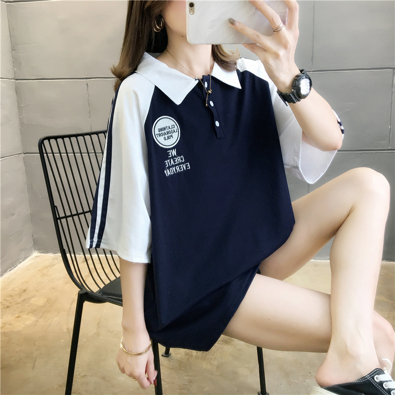 면 반팔 티셔츠 소녀 여름 2025 새로운 중학교 고등학생 느슨한 POLO 셔츠 옷깃 옷스토어 가기
