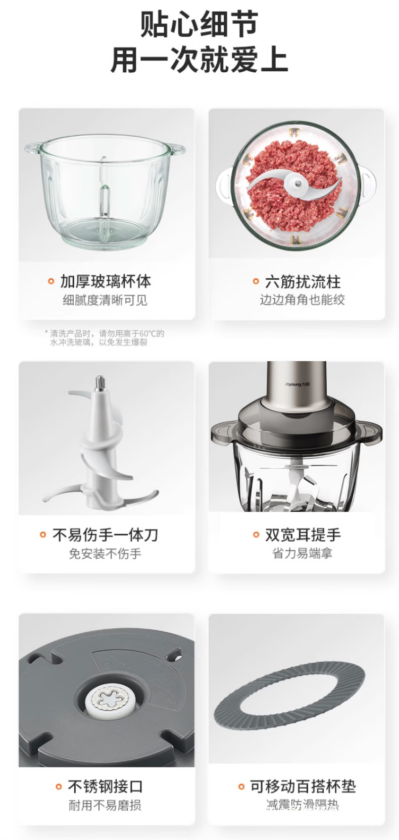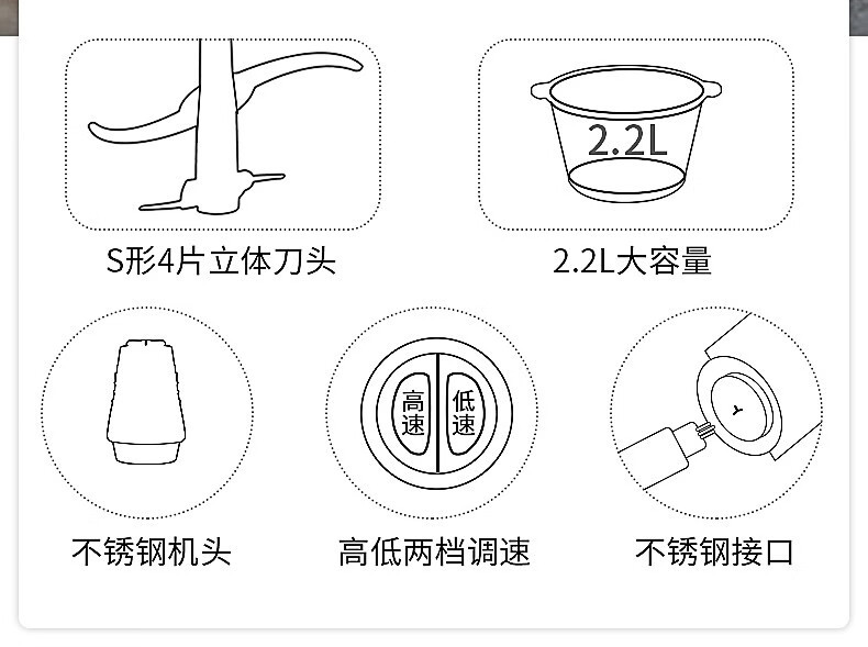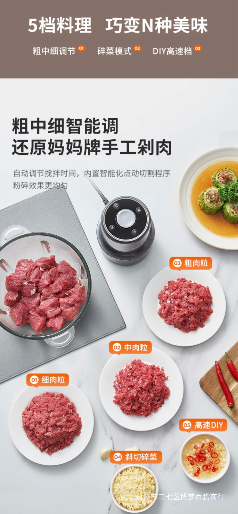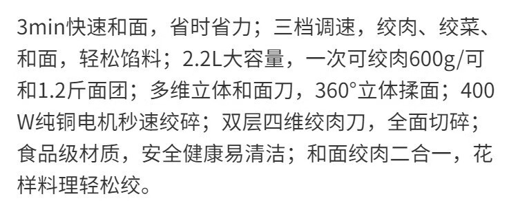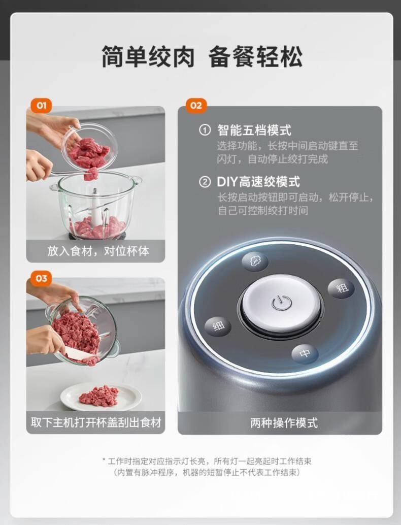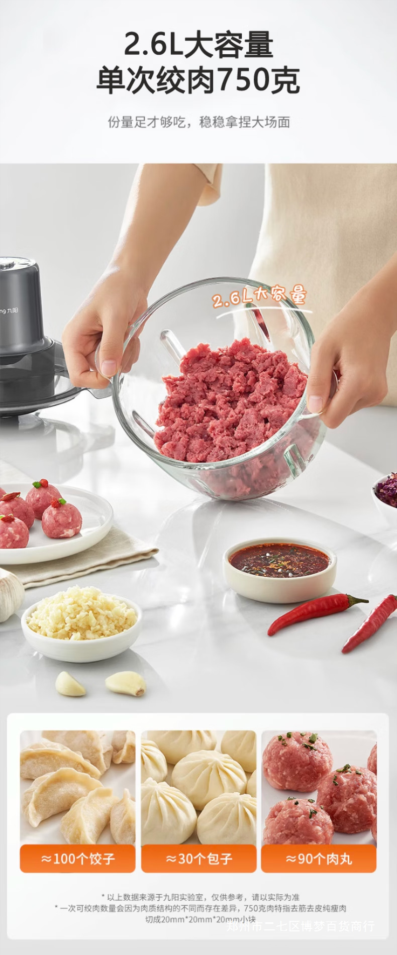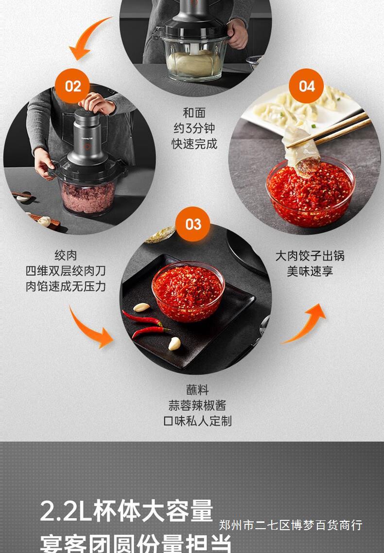 Jiuyang S22-A2 고기 커터 2.6L 리터 다섯 번째 기어 지능형 전기 저어 스터핑 커터 가정용 다기능 요리