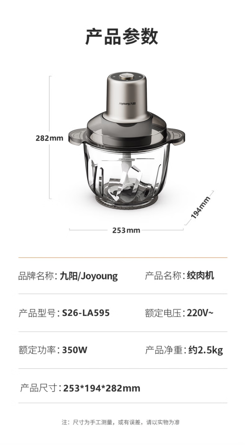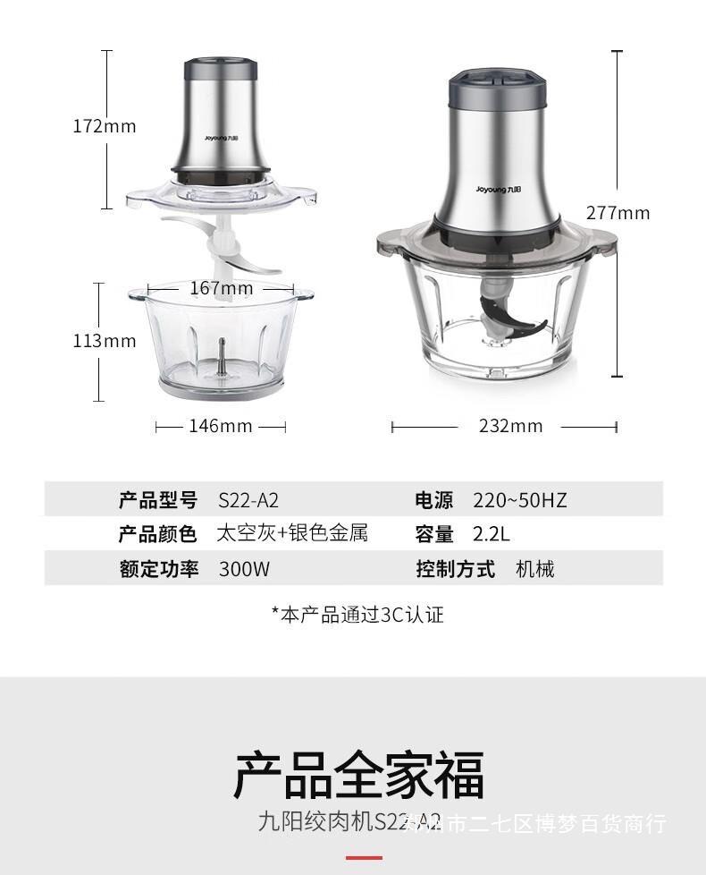 Jiuyang S22-A2 고기 커터 2.6L 리터 다섯 번째 기어 지능형 전기 저어 스터핑 커터 가정용 다기능 요리스토어 가기