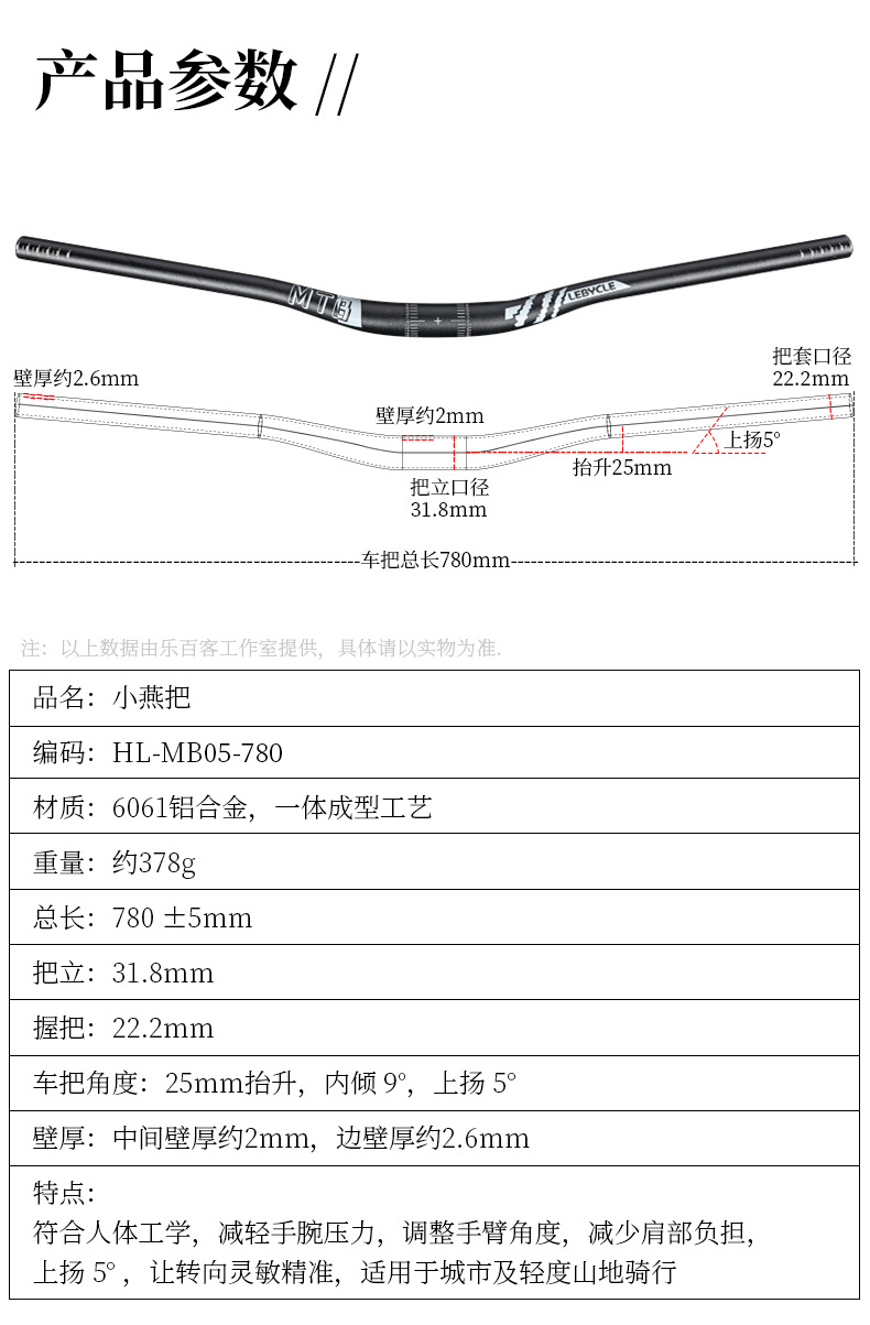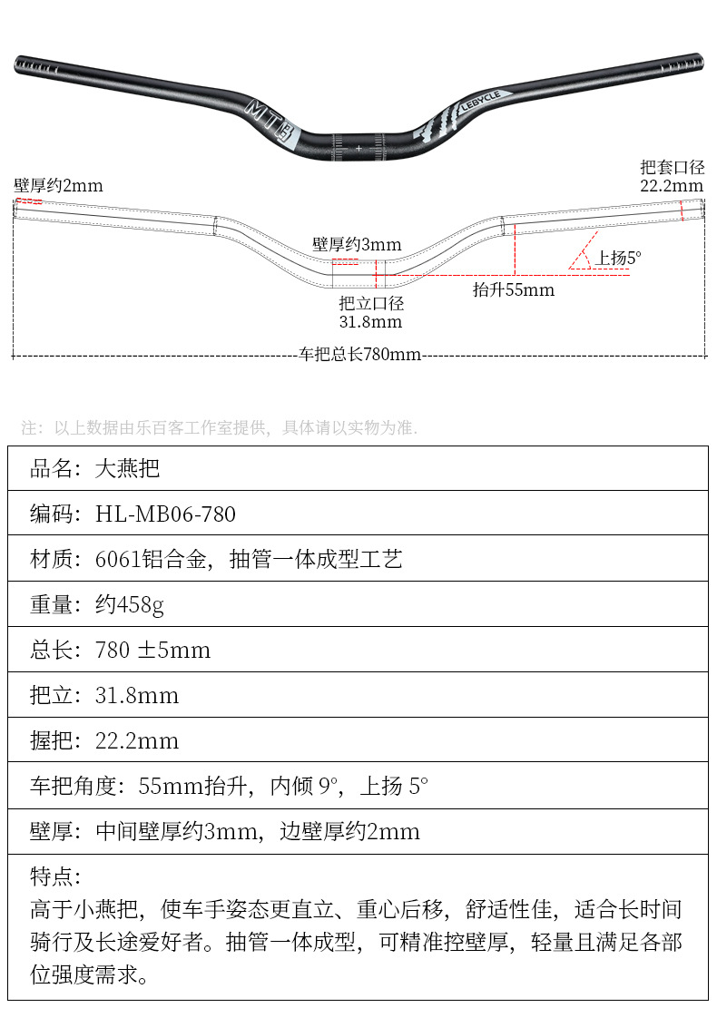 Le Baike 자전거 핸들 바 산악 자전거 780MM Dayan 31.8 지구 슬로프 자전거 유니버설 유연한 수정 손잡이