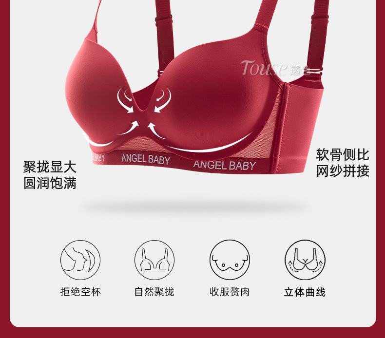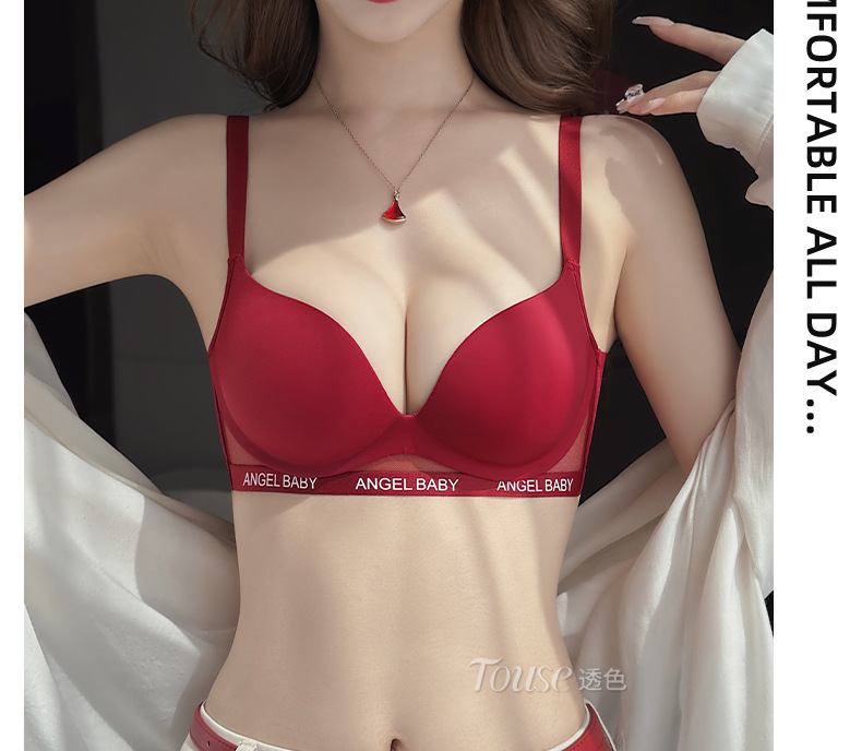 오리지널 브림 니언 레드 속옷 여성 패션 레터 트레이스리스 속옷 소프트 지원 조정 가능한 브래지어