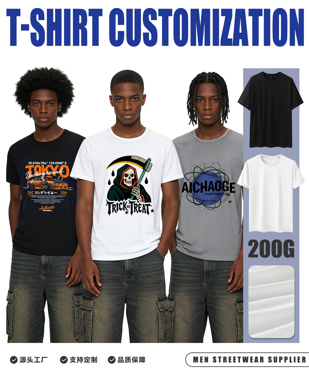 크로스보더 남성복 아메리칸 스타일 해골 패턴 트렌디 티셔츠 루즈핏 남녀공용 빅사이즈 반팔 캐주얼 상의 남성용스토어 가기