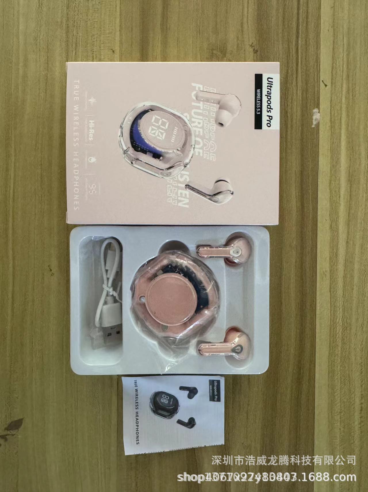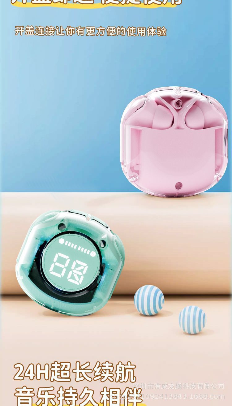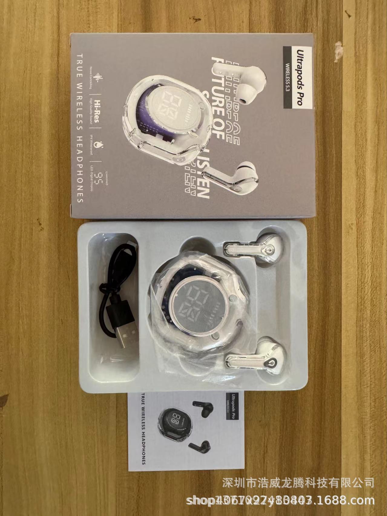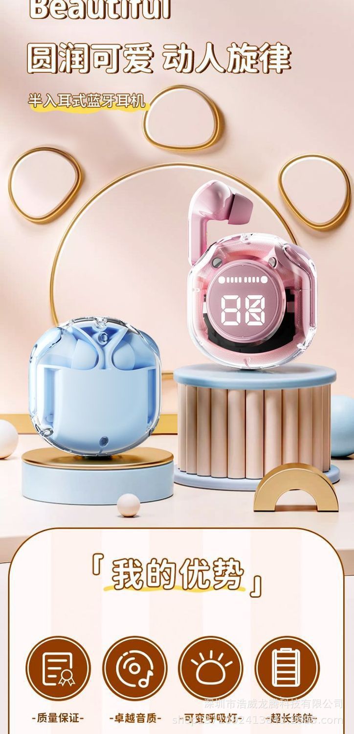 새로운 소스 공장 디지털 디스플레이 투명 블루투스 헤드셋 무선 스포츠 인 이어 소음 감소 헤드셋 선물