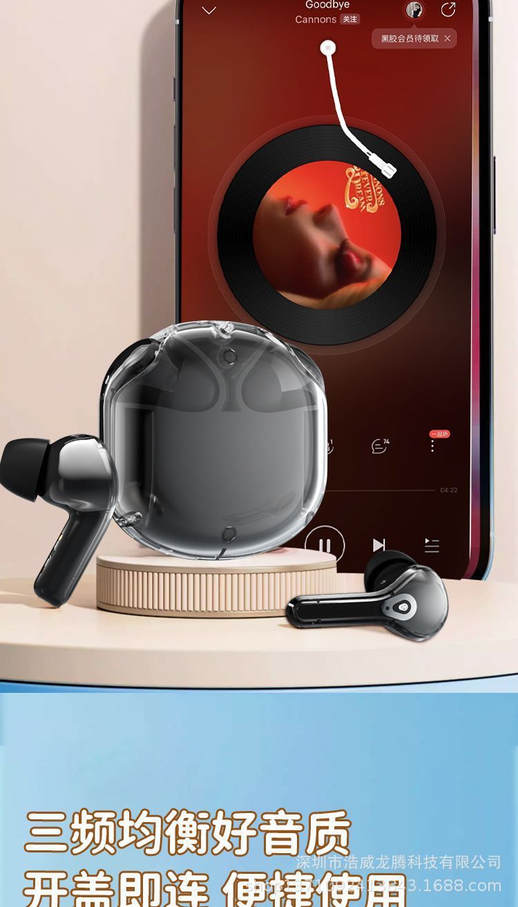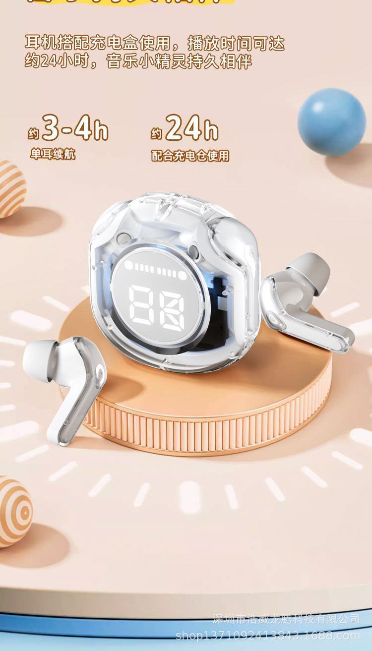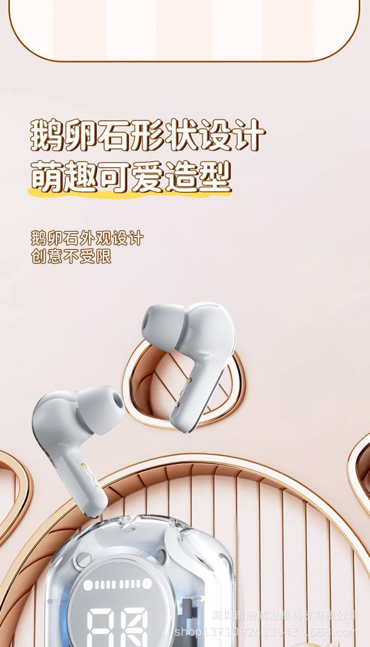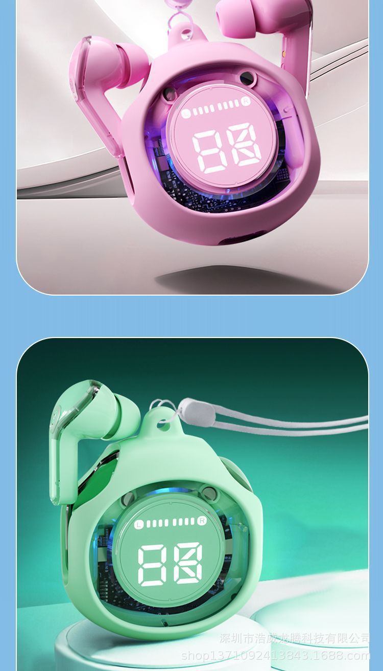 새로운 소스 공장 디지털 디스플레이 투명 블루투스 헤드셋 무선 스포츠 인 이어 소음 감소 헤드셋 선물스토어 가기