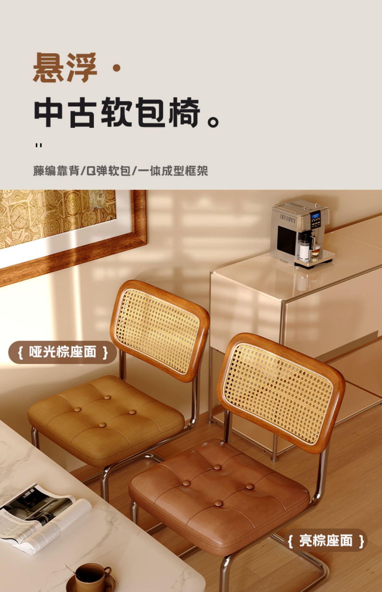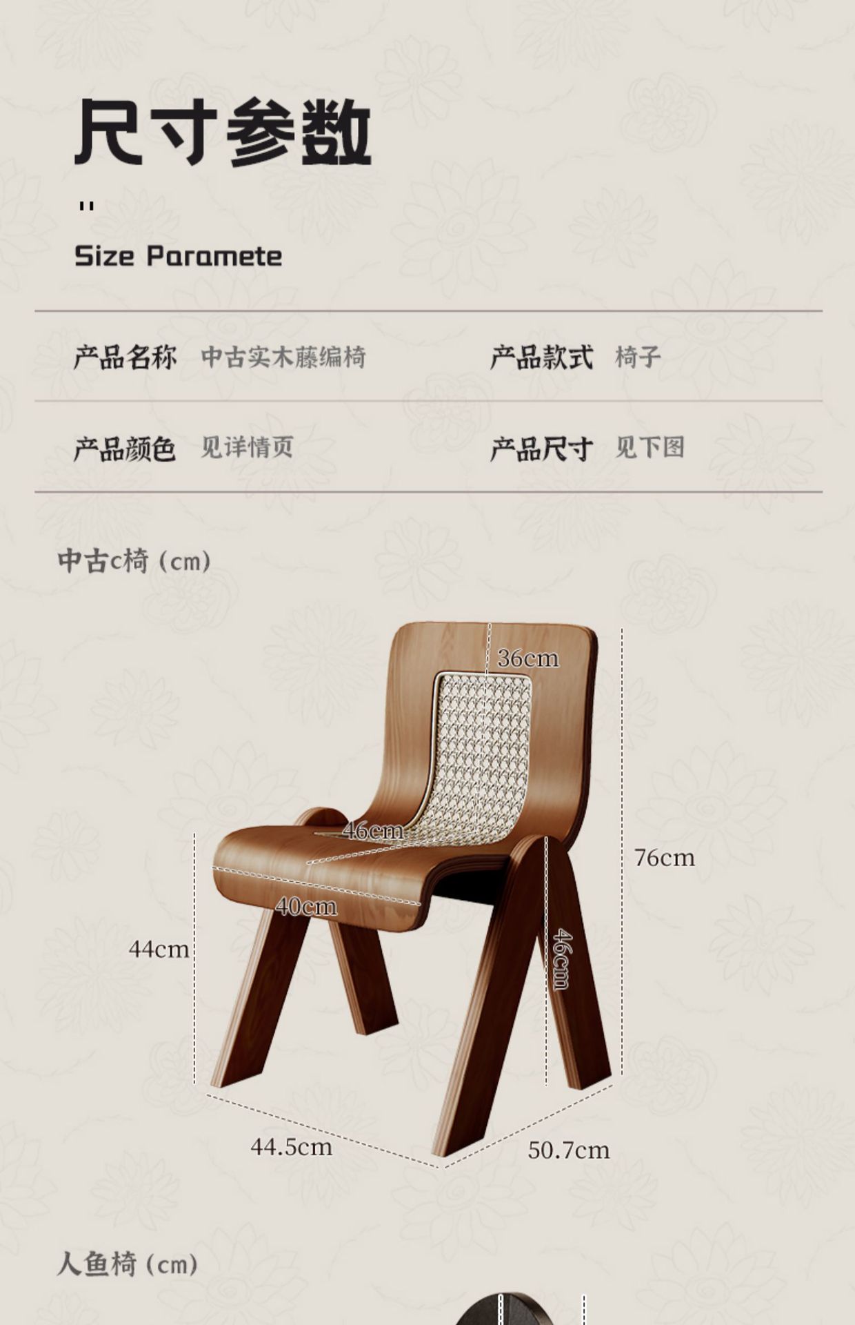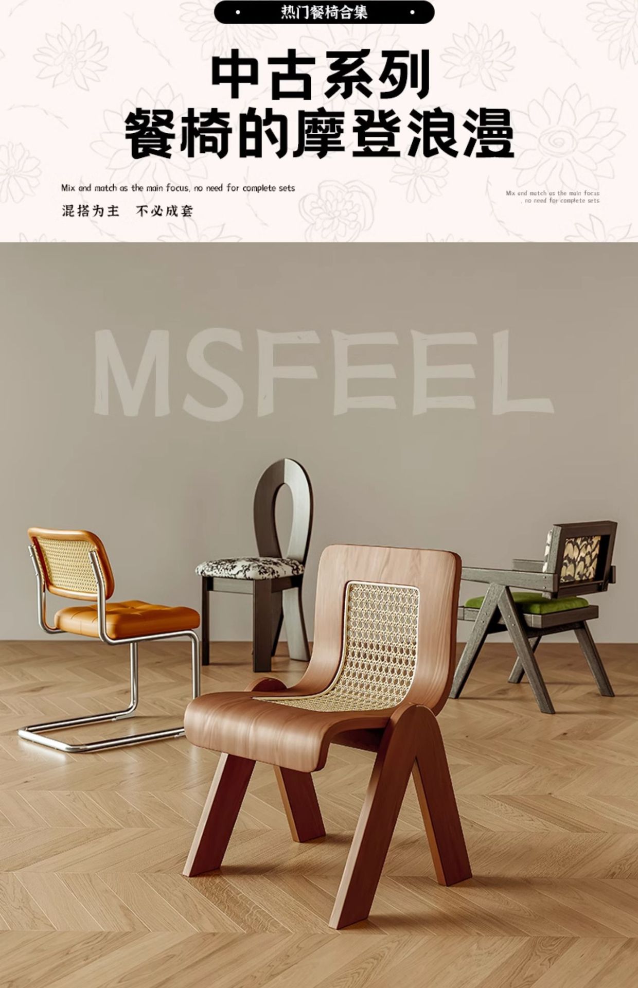中古C椅法式轻奢设计师家用餐桌椅藤编休闲复古卧室创意化妆椅子