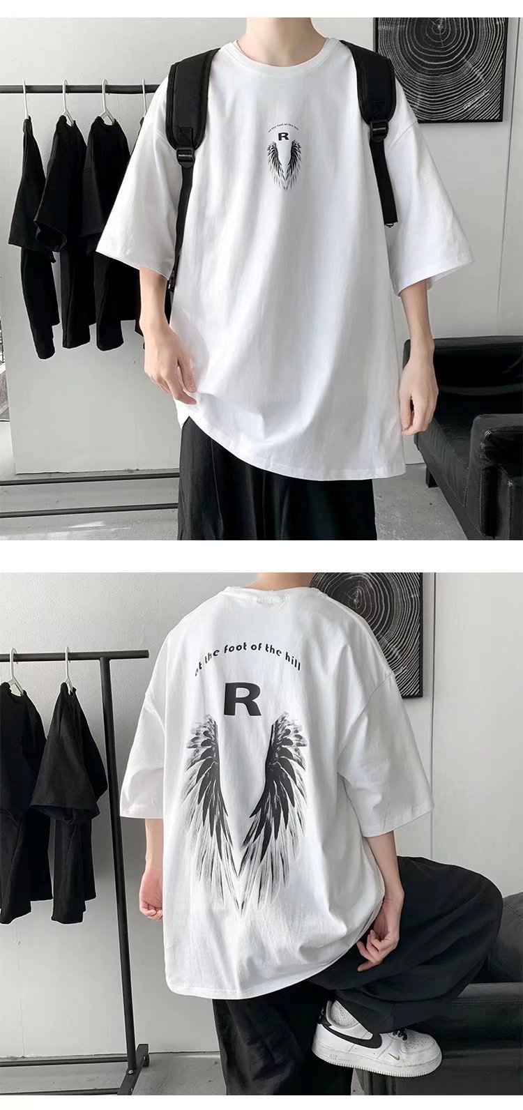 플러스 사이즈 반팔 남성 유행 브랜드 오버 사이즈 아메리칸 스타일 티셔츠 Summer Ins Hong Kong 스타일 의류 느슨한 올 매치 탑