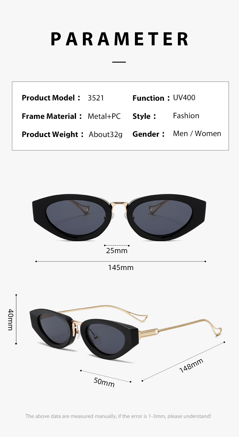 3521 금속 선글라스 UV400 국경 대외 무역 아마존 고양이 눈 트렌드 작은 프레임