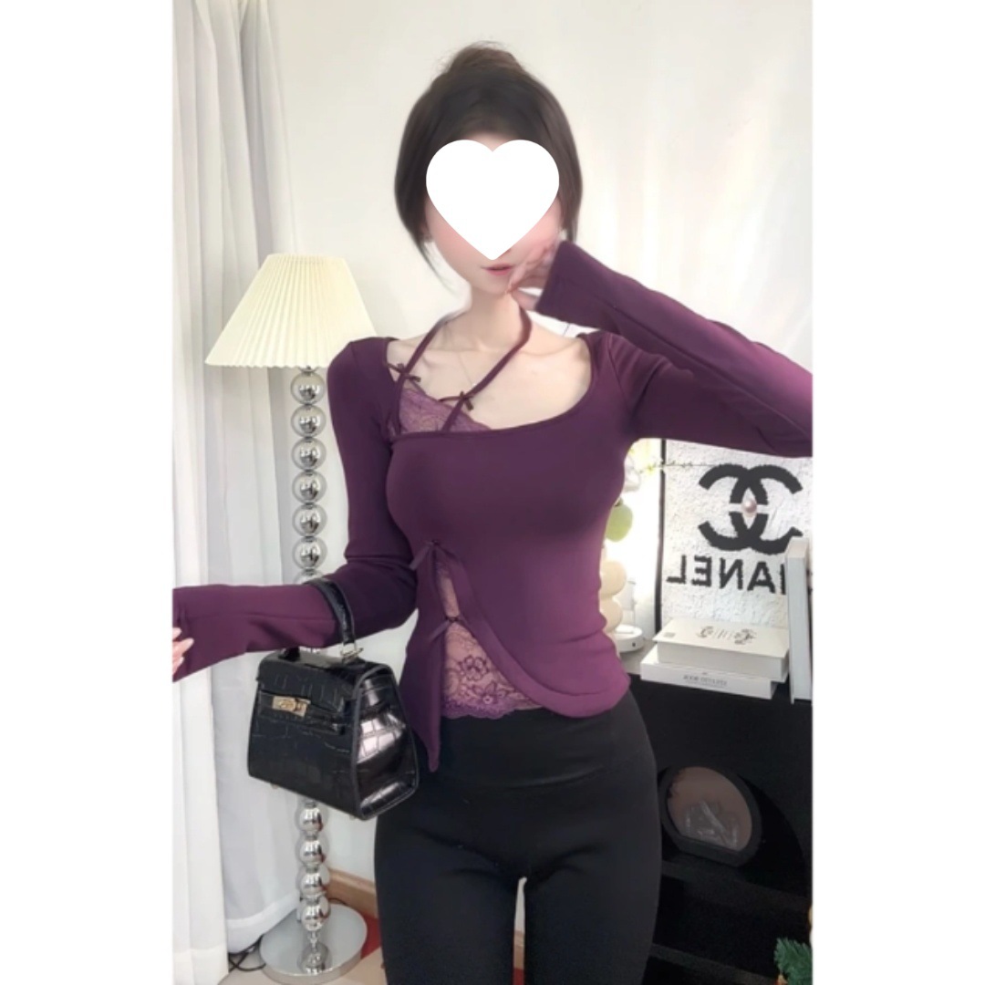 새로운 폭발 순수한 욕망 스타일 레이스 바느질 최고 여성의 이른 봄 슬림 안쪽에 맞는 셔츠 섹시한 스파이스 헤어스토어 가기