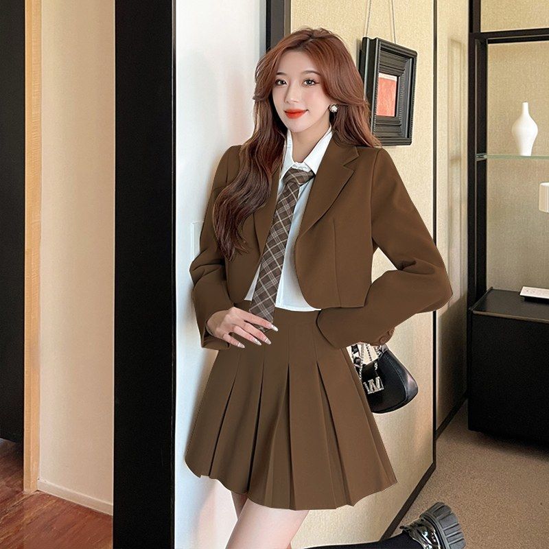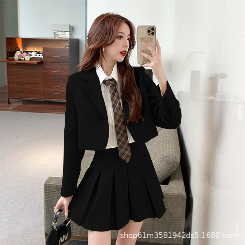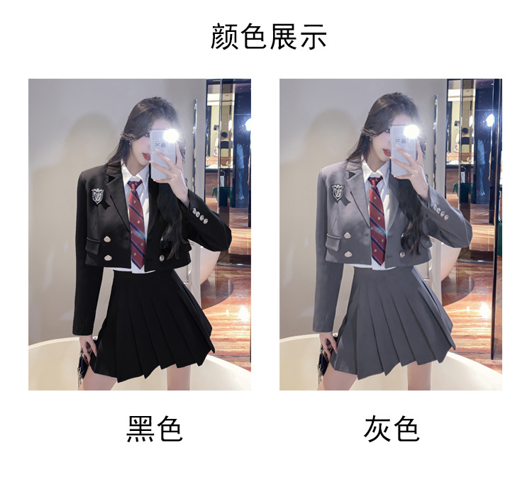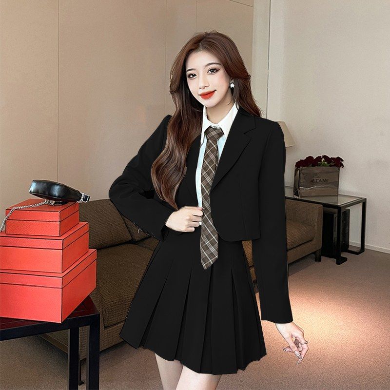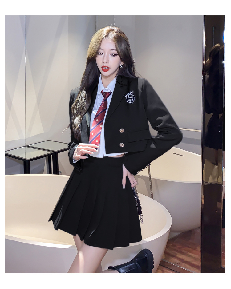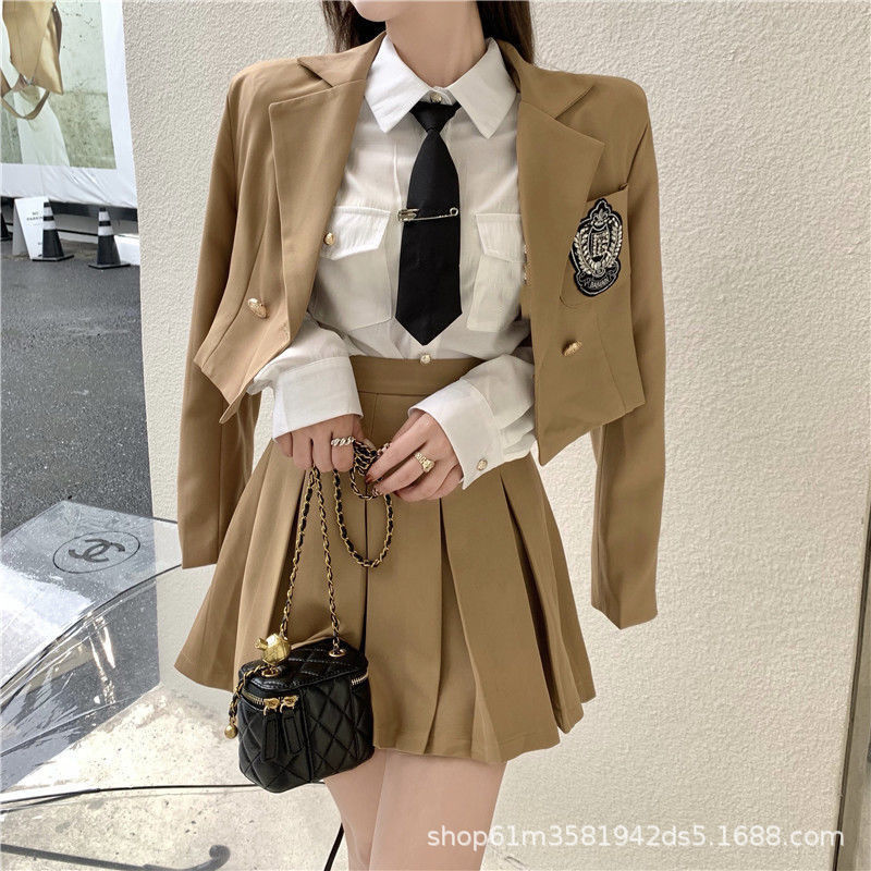 대학 스타일 작은 남자 세트 세트 가을 새 재킷 주름 치마 유니폼 작업 옷 귀여운 여성 봄스토어 가기