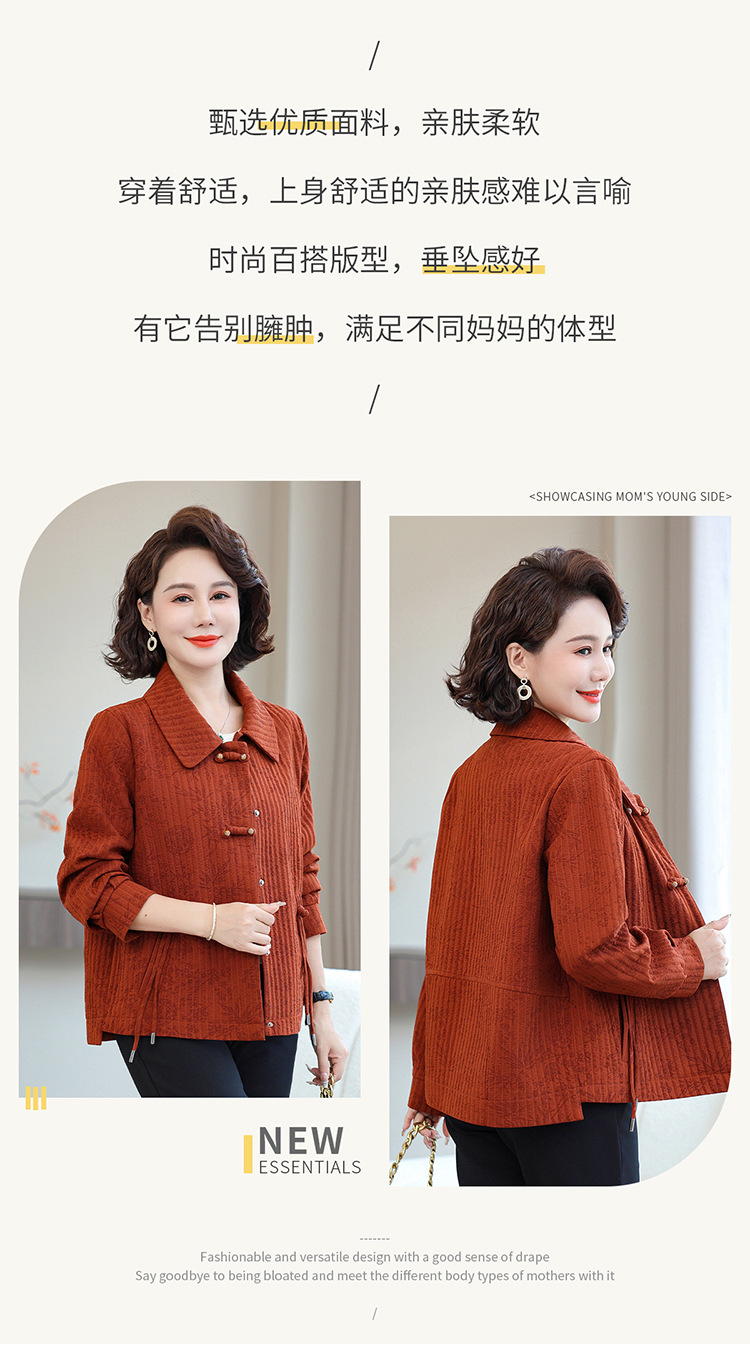 2025 년 초 봄 새로운 어머니 세련된 패션 자켓 중년 및 노인을위한 새로운 중국 스타일 여성 느슨한 코트스토어 가기