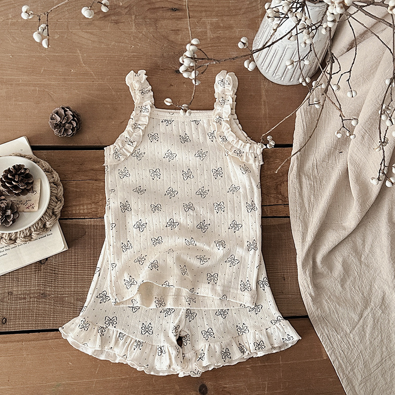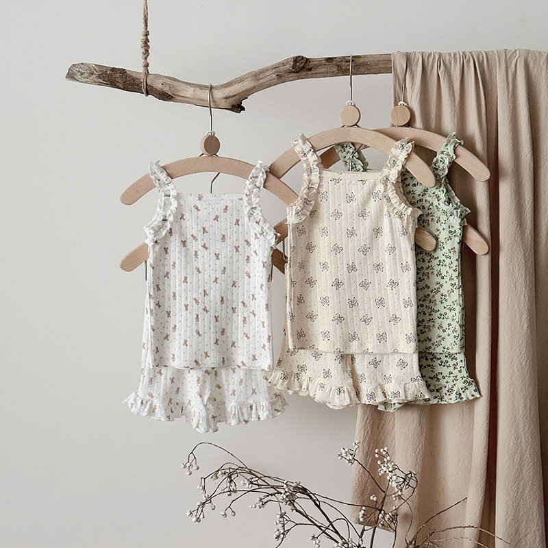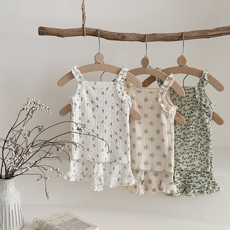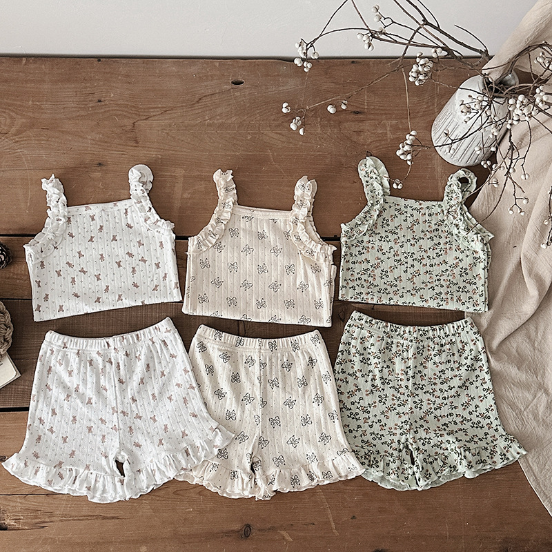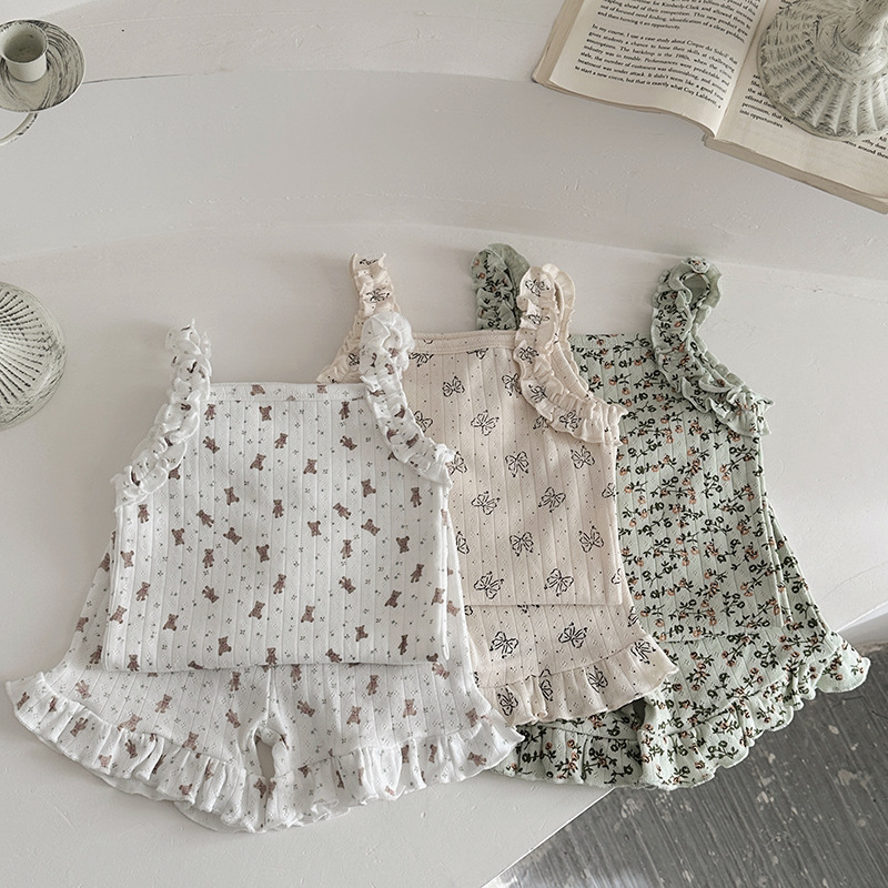 2025 년 여름 어린이 집 옷 여아 잠옷 세트 귀여운 소녀 카미솔 세트 아기 옷스토어 가기