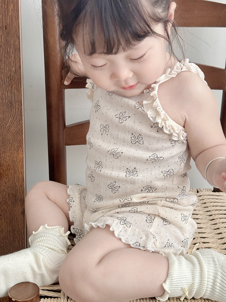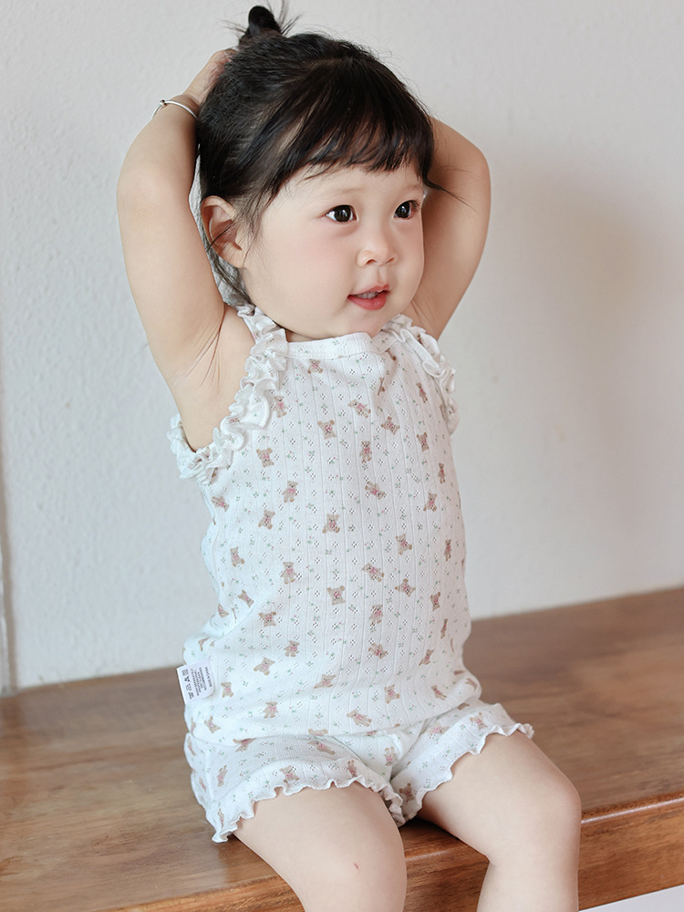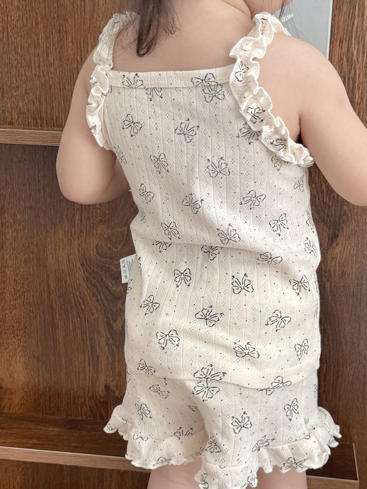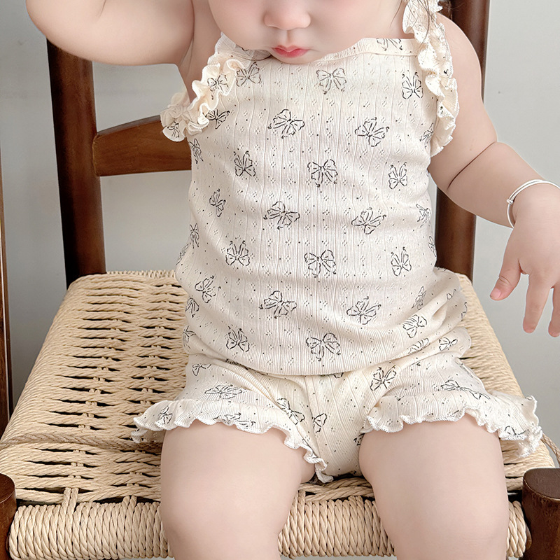 2025 년 여름 어린이 집 옷 여아 잠옷 세트 귀여운 소녀 카미솔 세트 아기 옷