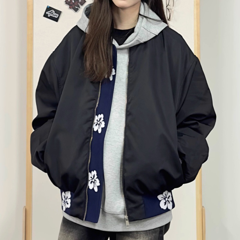 새로운 폭발 미국 하이 스트리트 빈티지 바느질 자카드 폭격기 재킷 남성 봄과 가을 패션 브랜드 디자인 감각스토어 가기