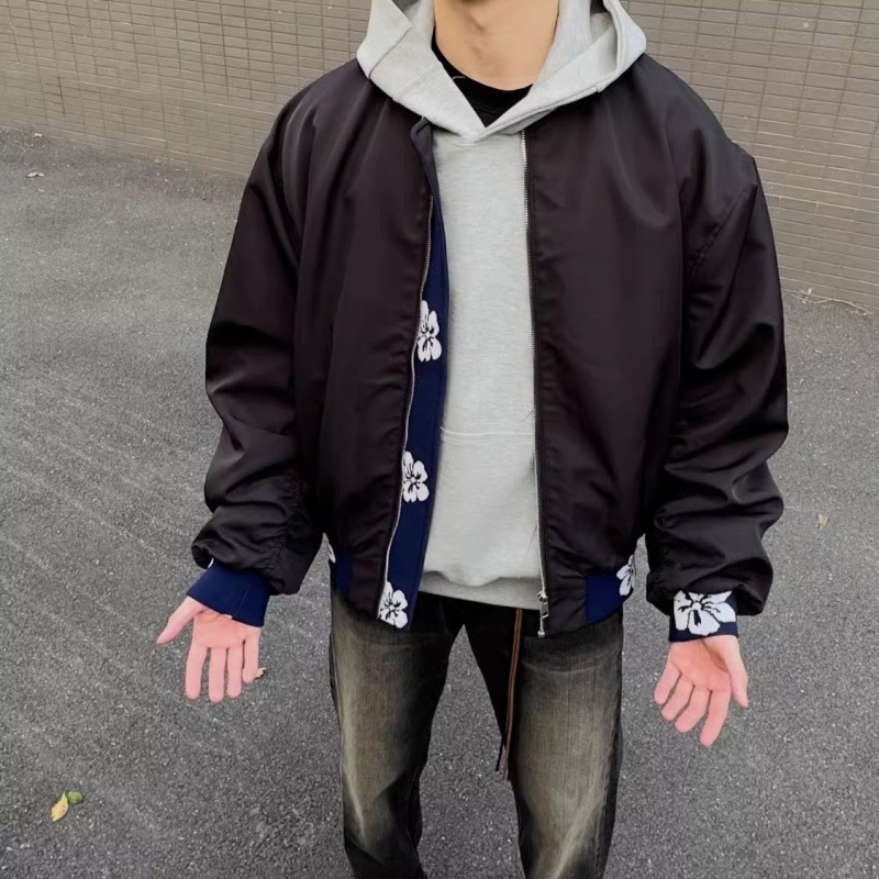 새로운 폭발 미국 하이 스트리트 빈티지 바느질 자카드 폭격기 재킷 남성 봄과 가을 패션 브랜드 디자인 감각