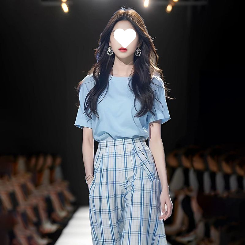 2025 여름 새로운 캐주얼 심플 탑 티셔츠 캐주얼 바지 올매치 한국식 슬리밍 서양식 투피스 세트스토어 가기