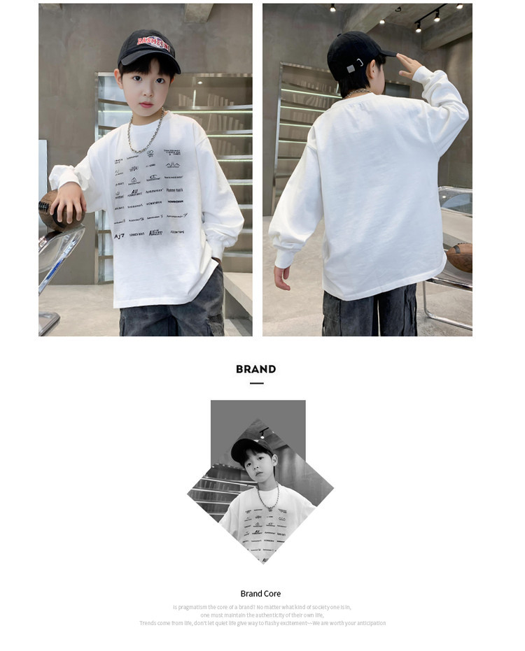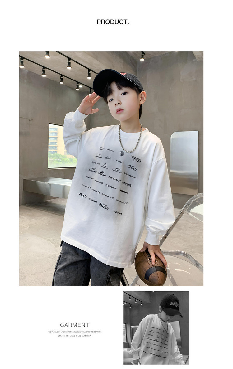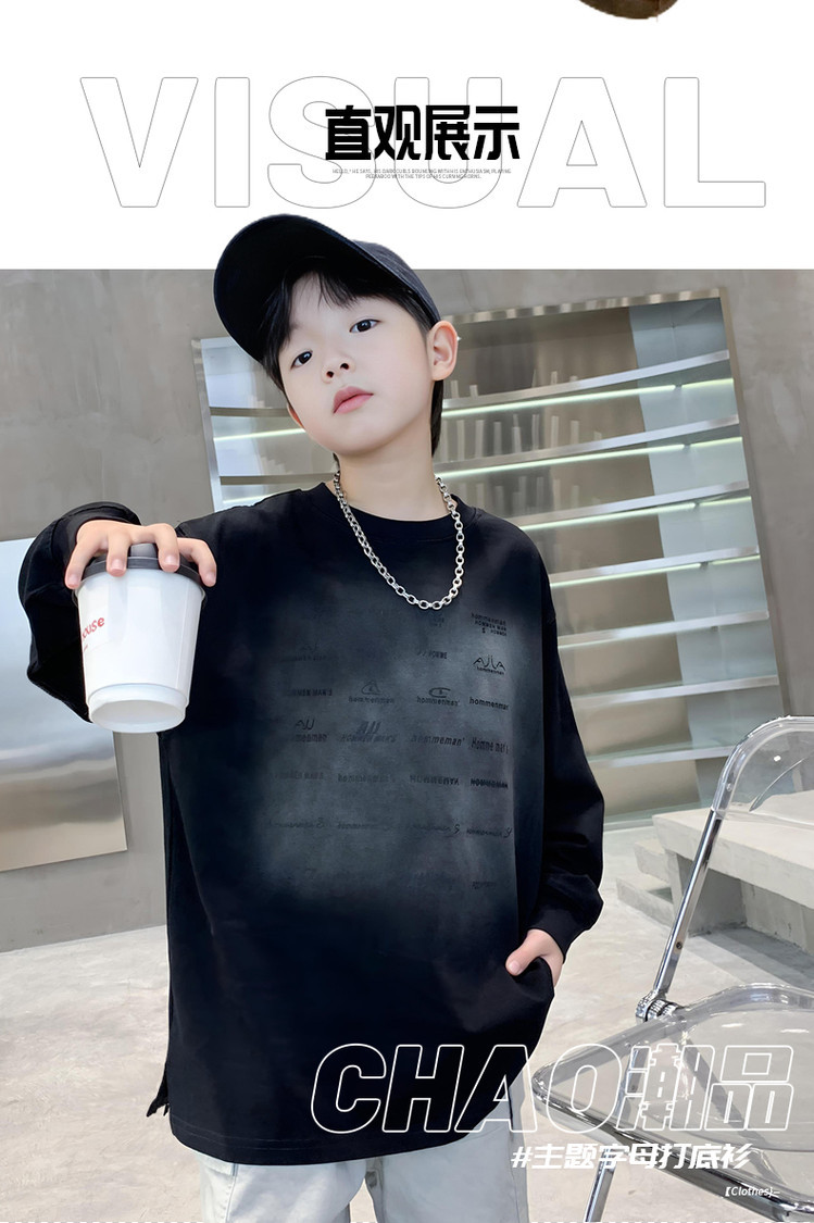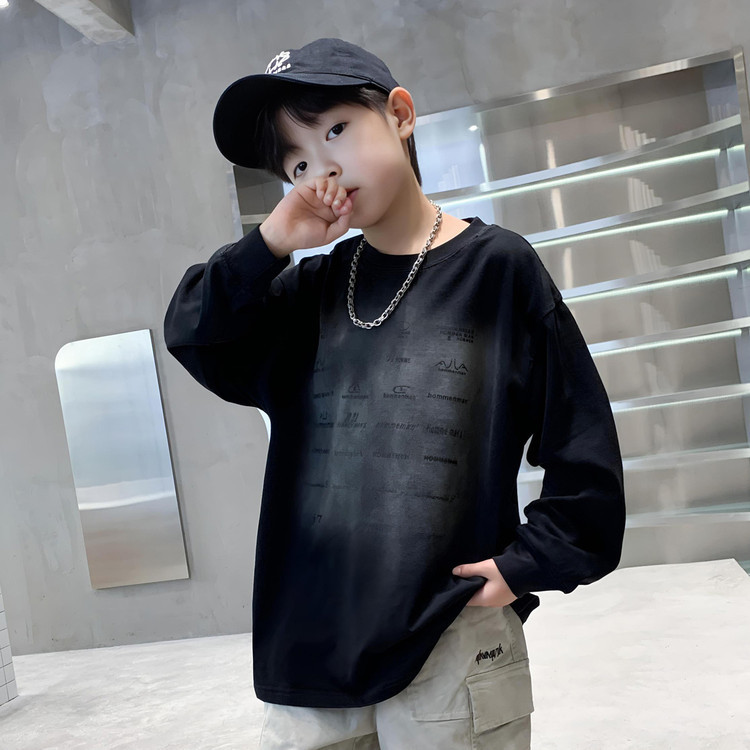 남학생 편지 티셔츠 봄 새로운 스타일 중대형 어린이 느슨한 캐주얼 라운드 넥 긴 소매 탑 유행 올매치 베이스 셔츠스토어 가기