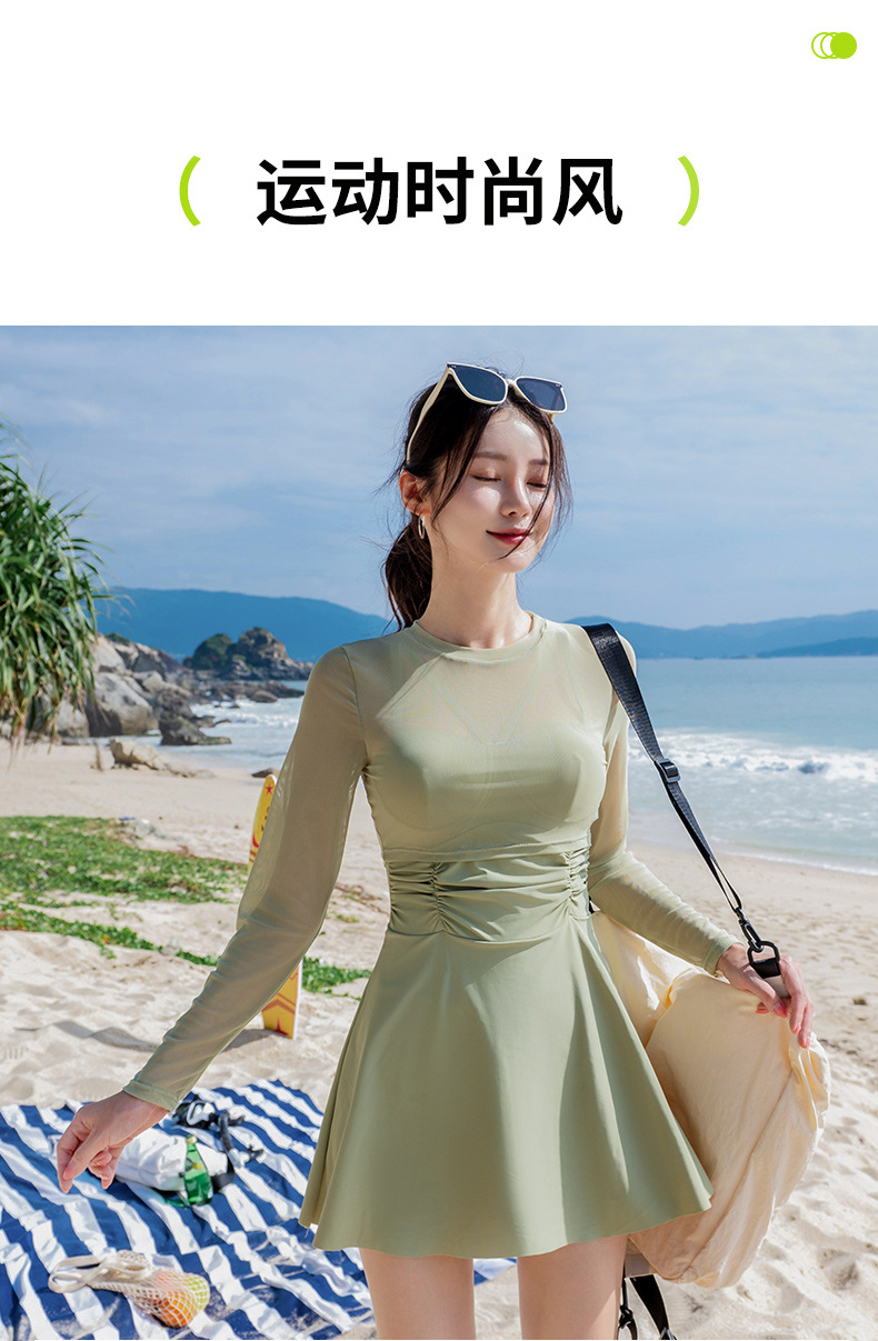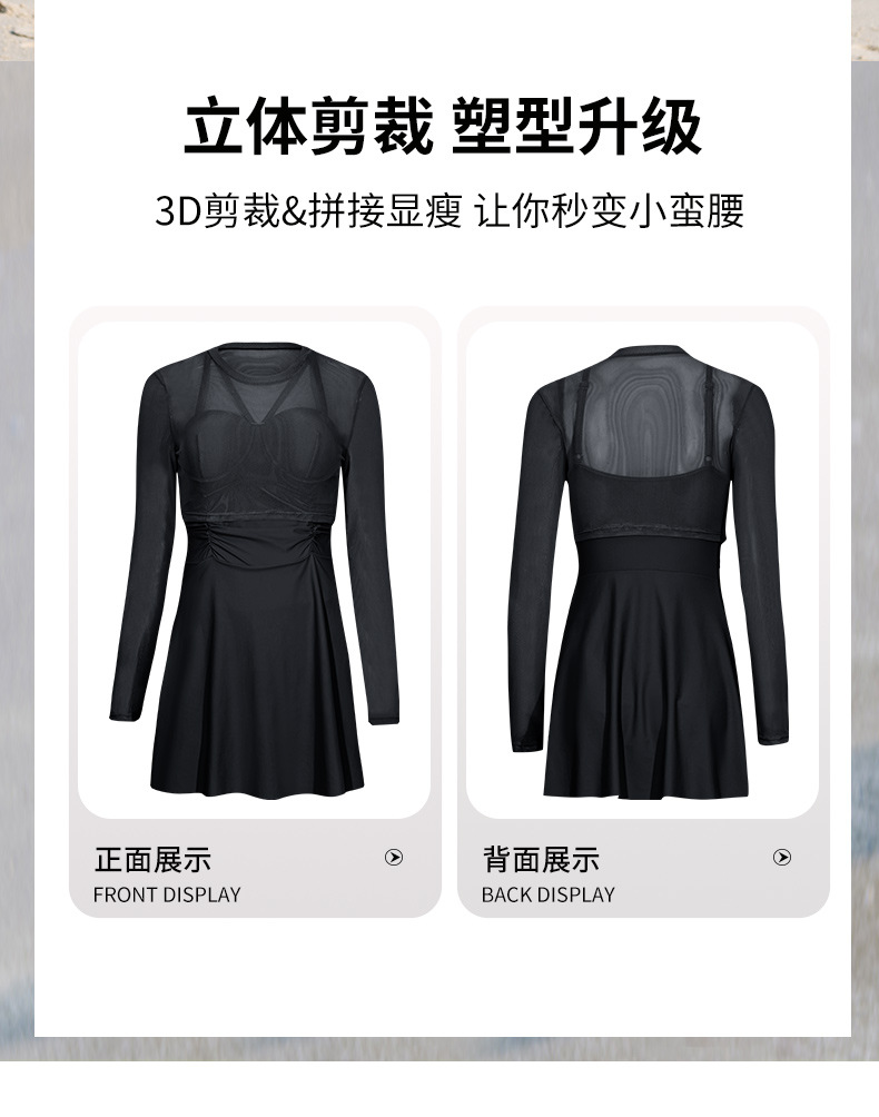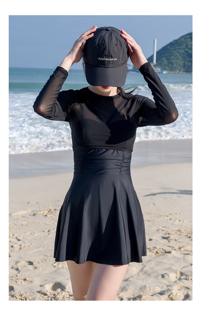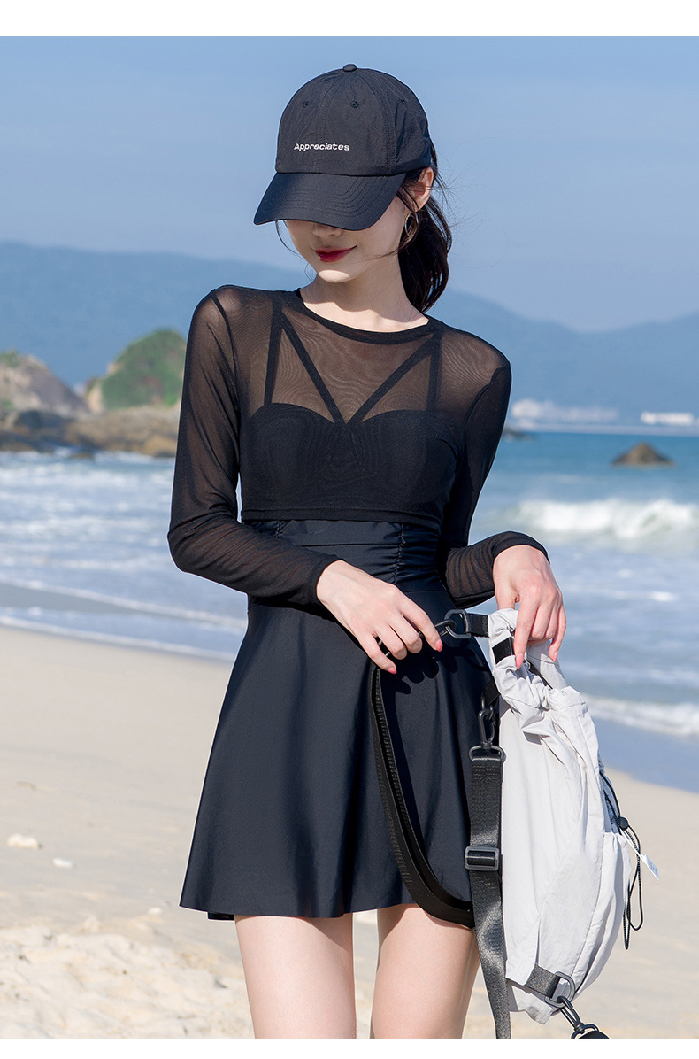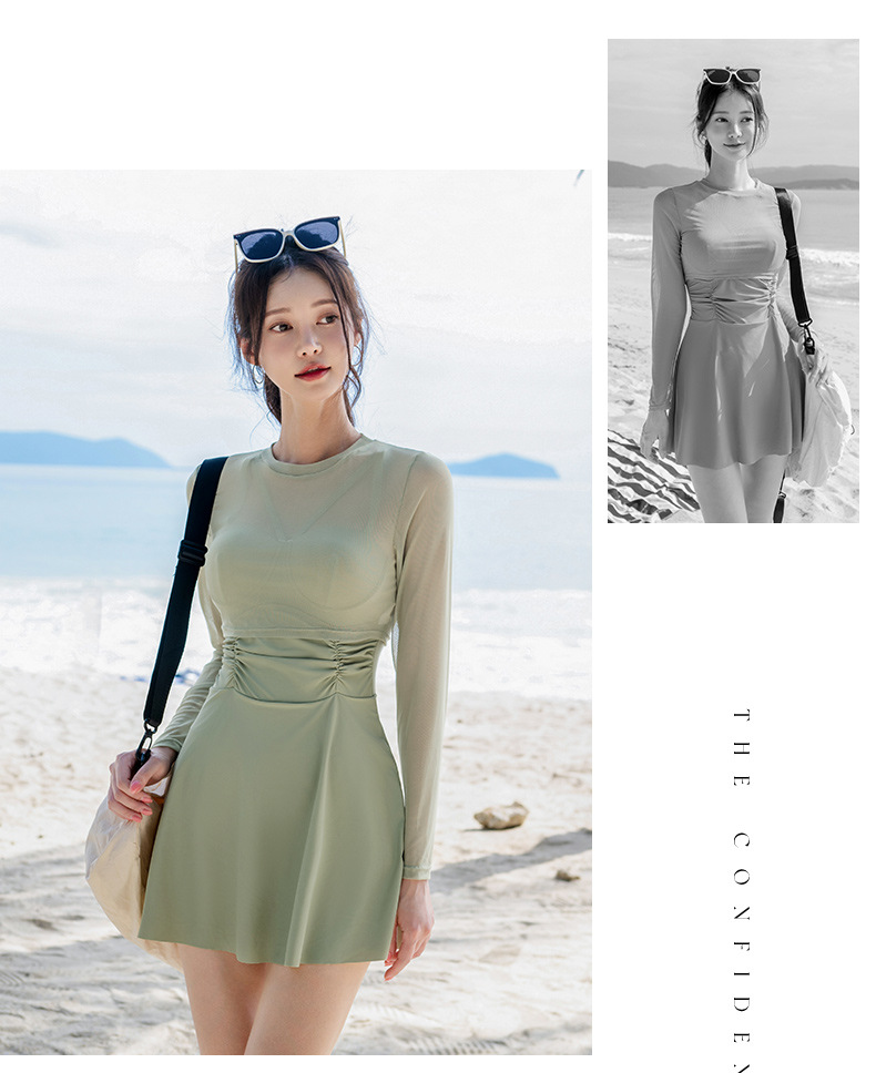 솔리드 컬러 섹시 투피스 수영복 여성 한국식 플러스 사이즈 육체 커버 선스크린 스커트 수영복 보기-스루 수영복스토어 가기
