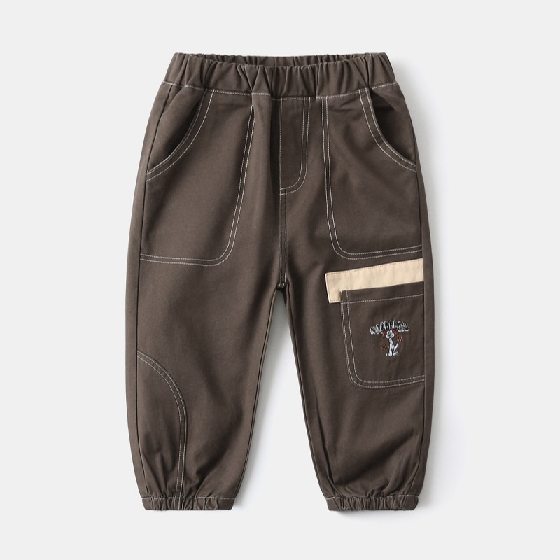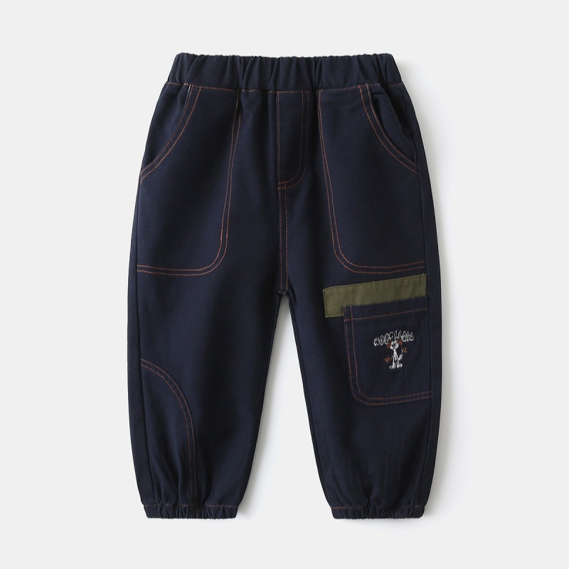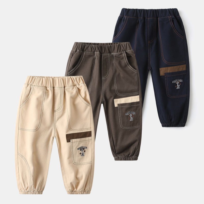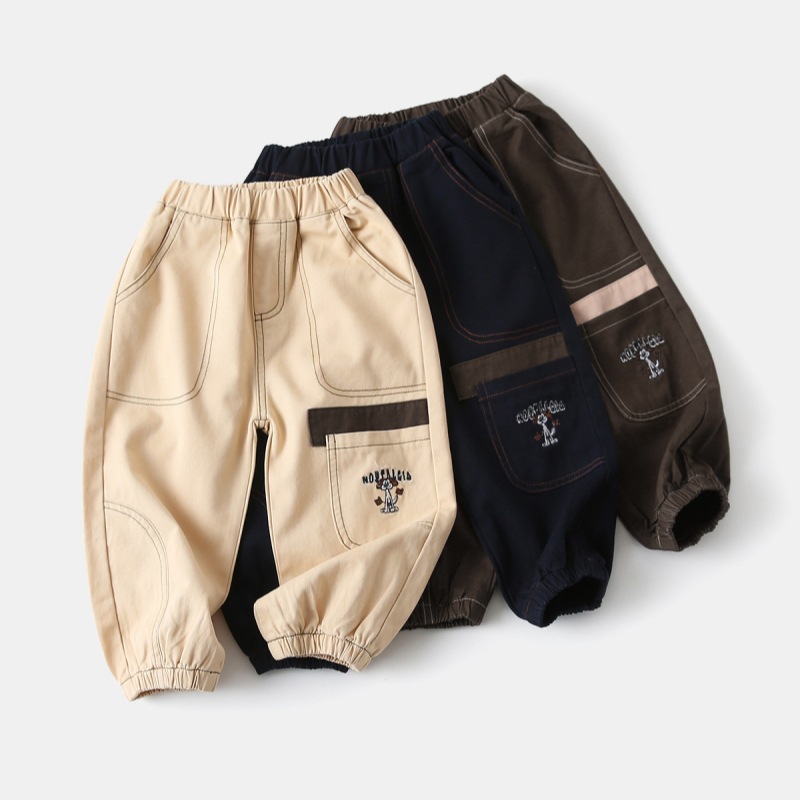 2025 새로운 어린이 바지 도매 소년 바지 아기 잘 생긴 자수 슬링 캐주얼 바지 발가락 싱글 바지스토어 가기