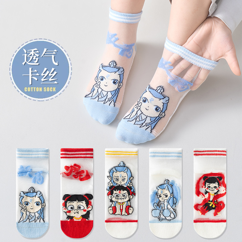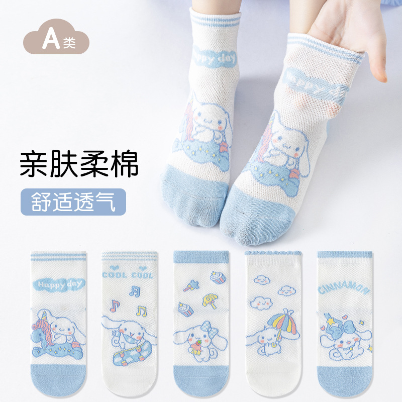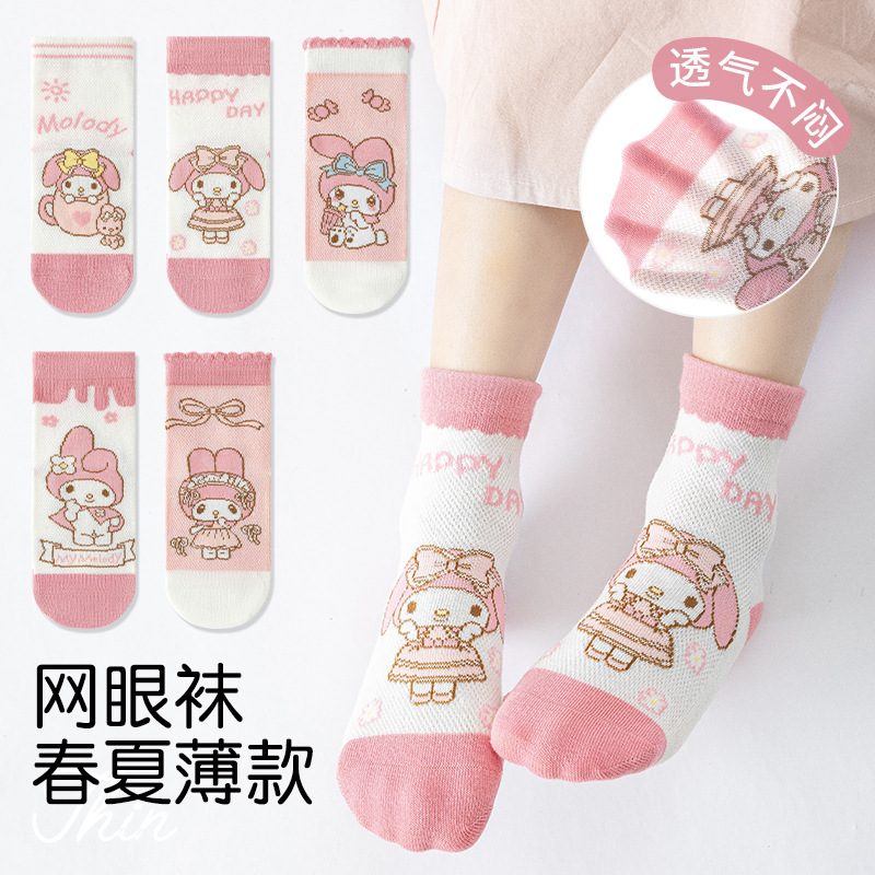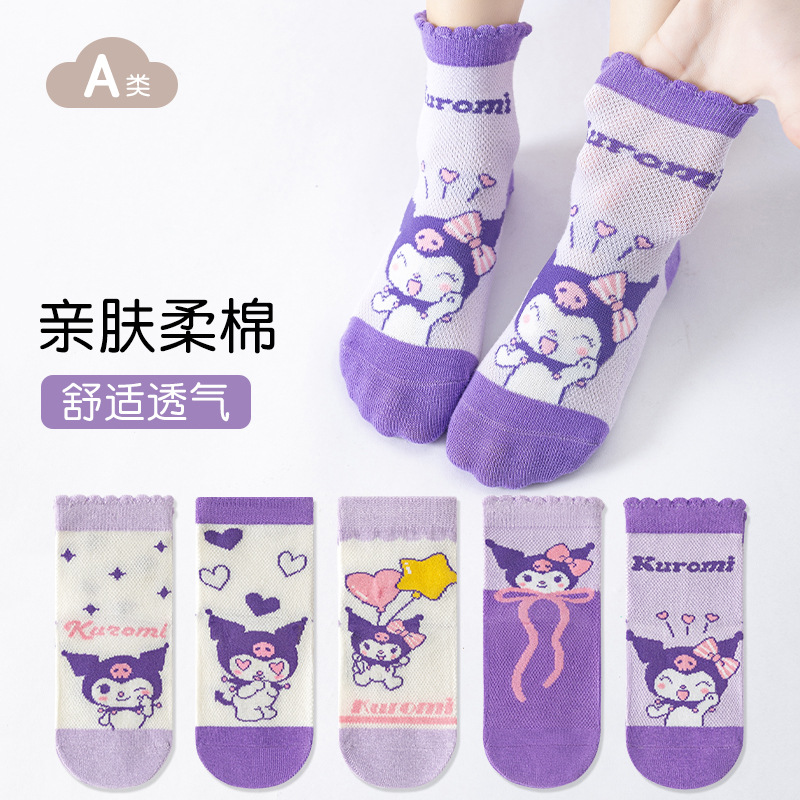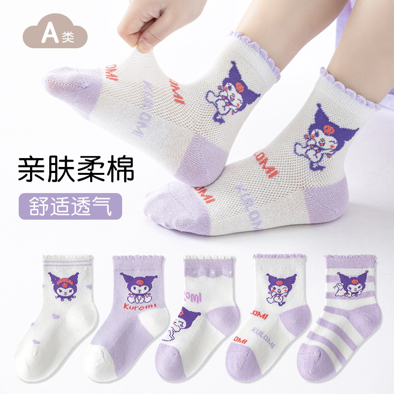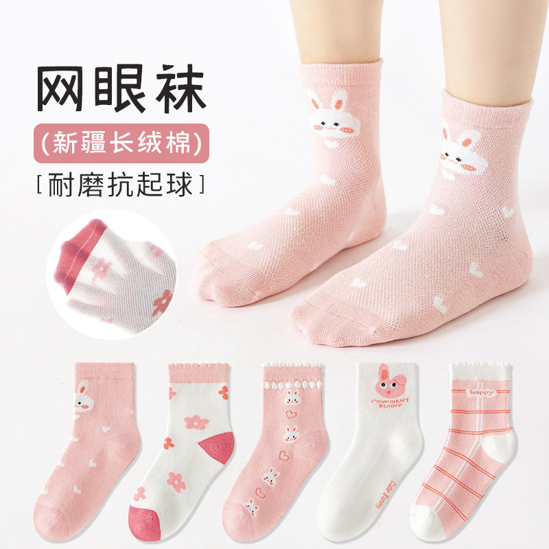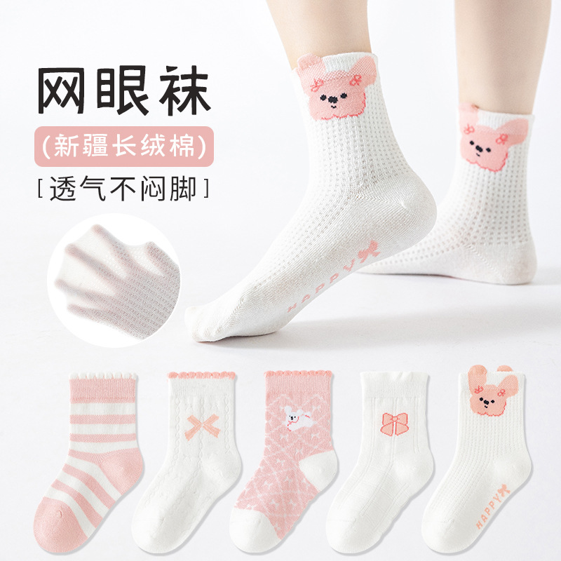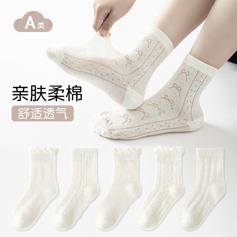 소녀 양말 여름 통기성 얇은 어린이 Merlot 봄 및 여름 메시 소녀 중 큰 어린이 클래스 A 면 양말 쌍
