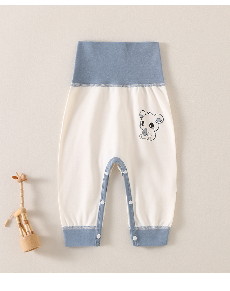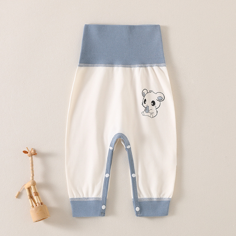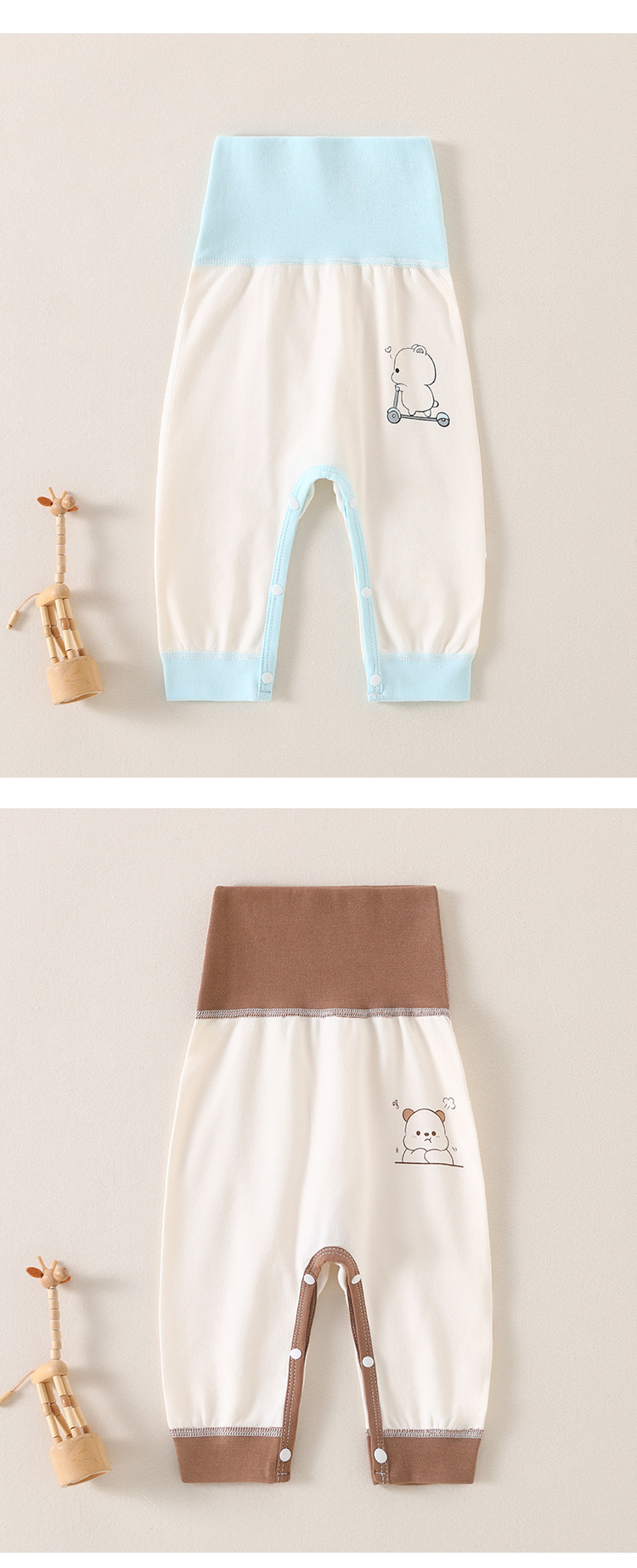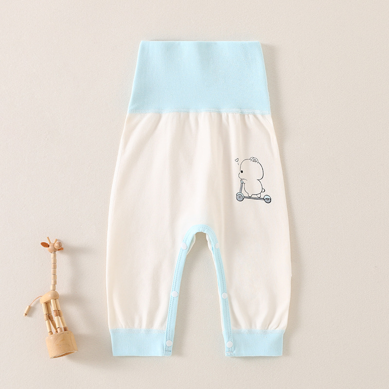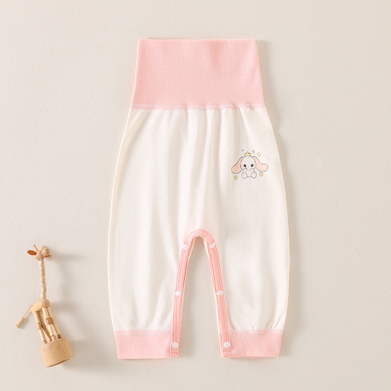 소년 소녀를위한 아기 바지 높은 허리 배꼽 보호자 봄과 가을을위한 순수 코튼 뼈없는 오픈 크로트 바지