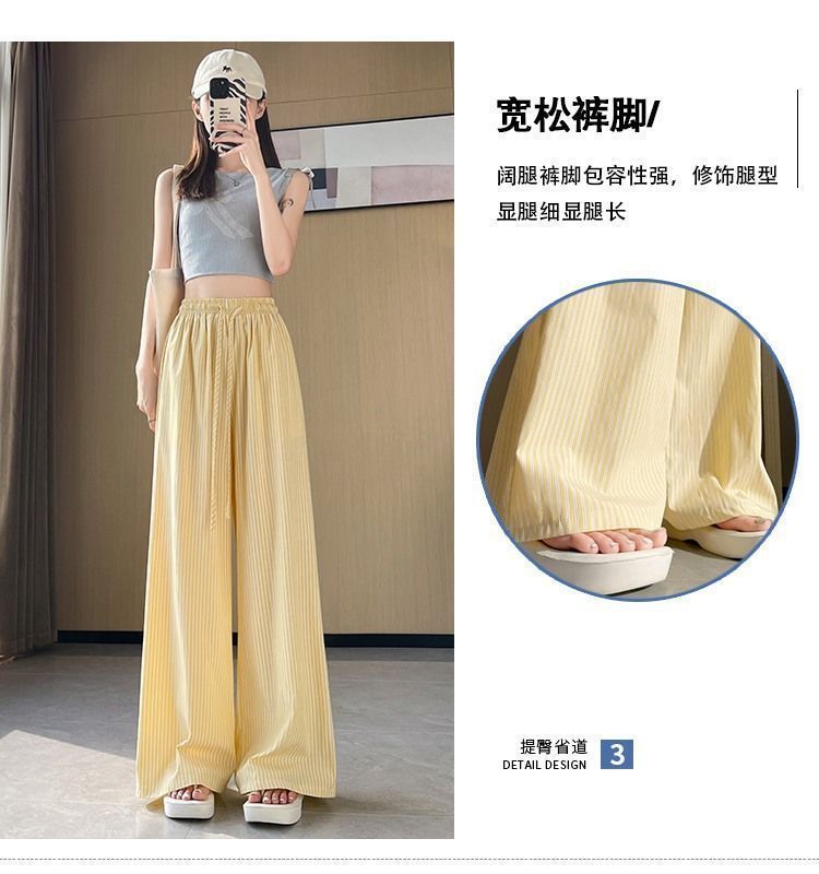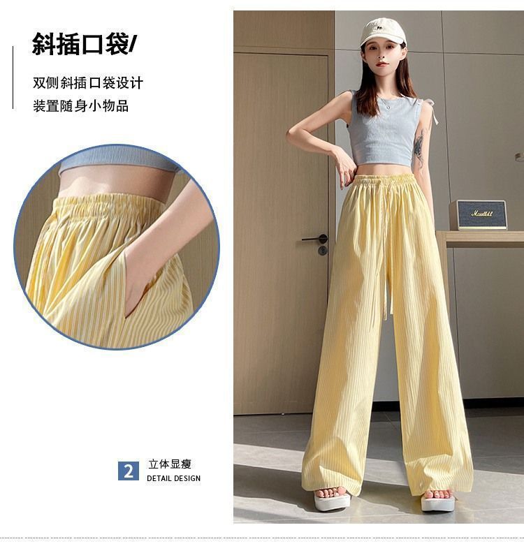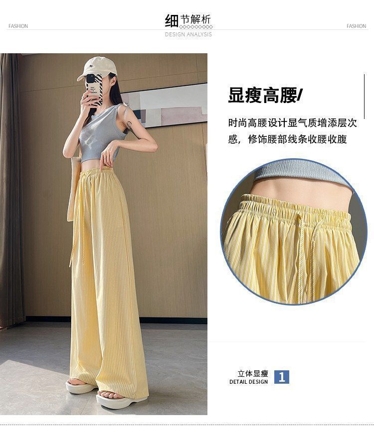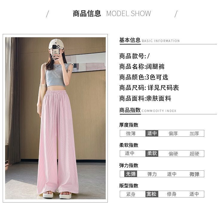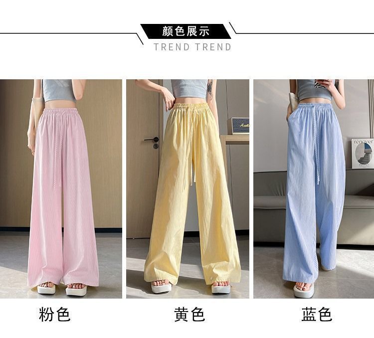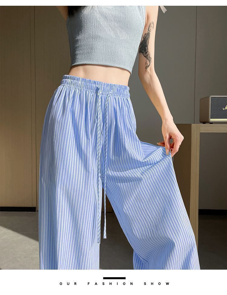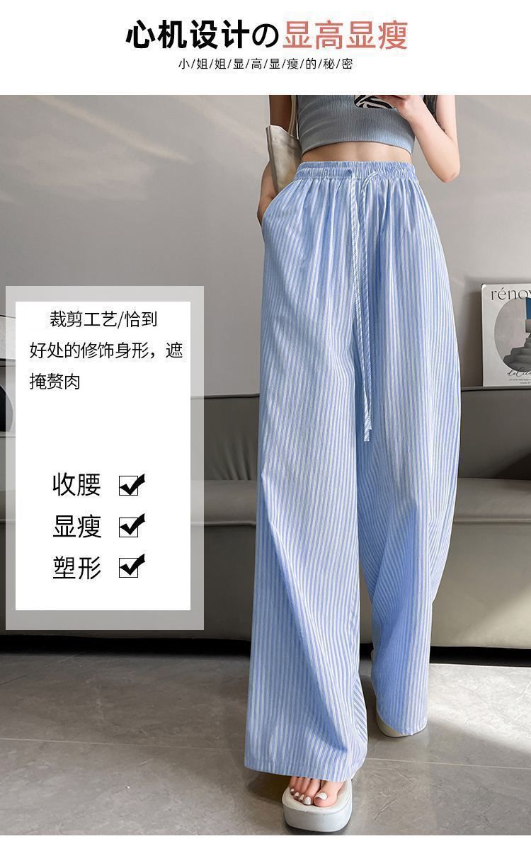 [동남아시아 전용] 여성용 블루 세로 스트라이프 와이드 팬츠 가을용 스트레이트 루즈핏 캐주얼 롱 팬츠 트렌디