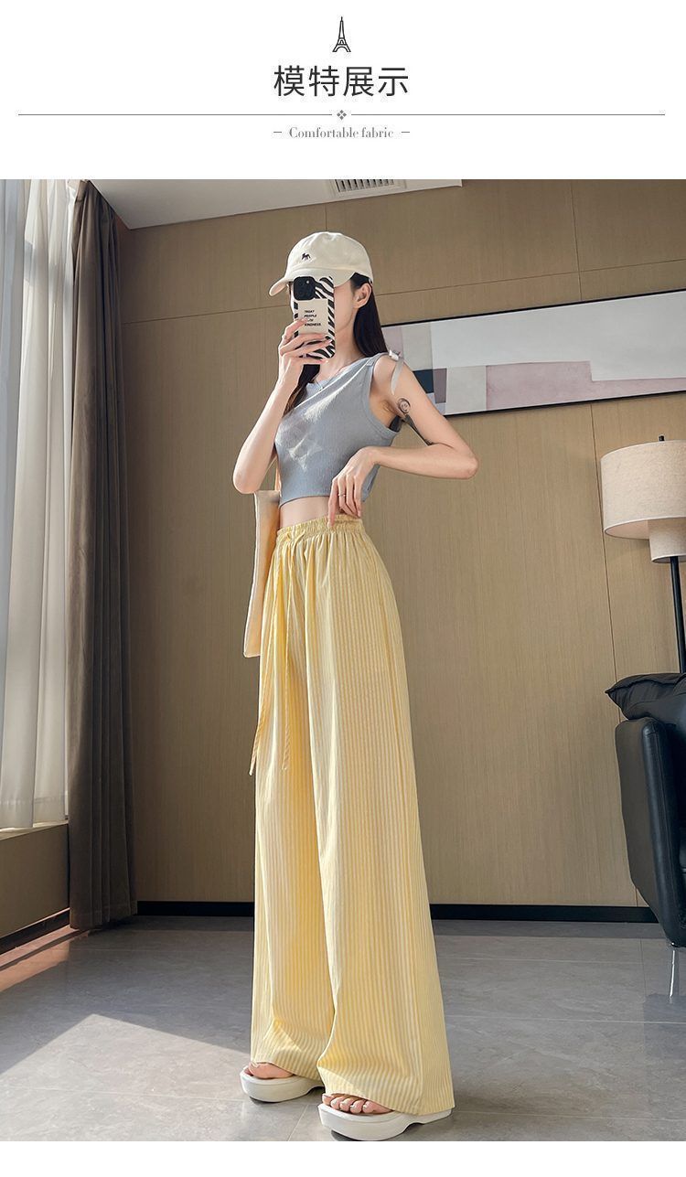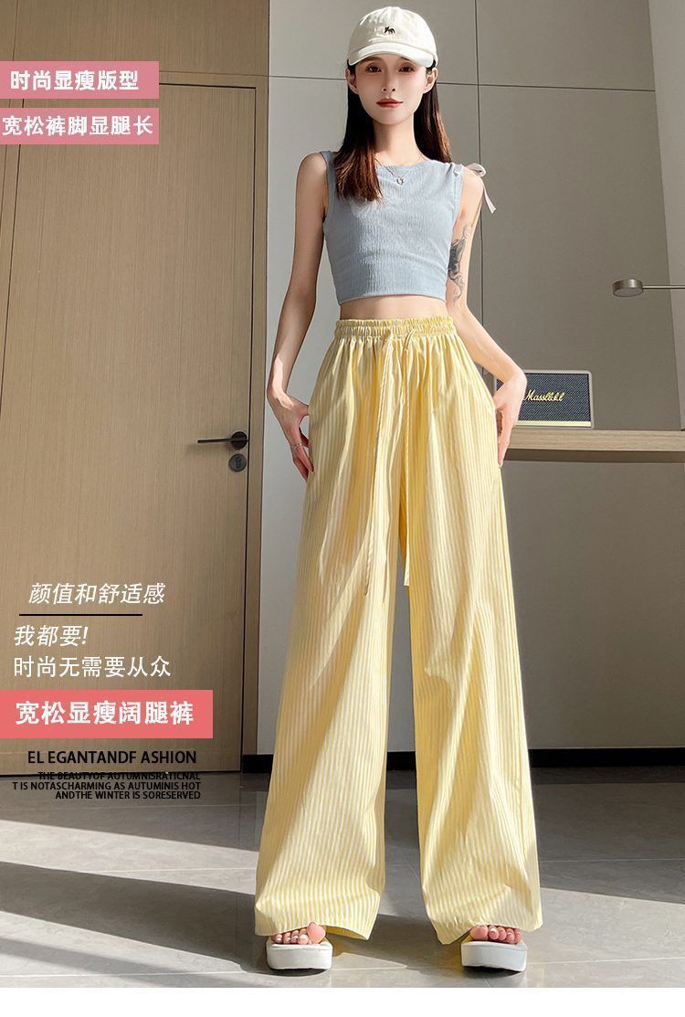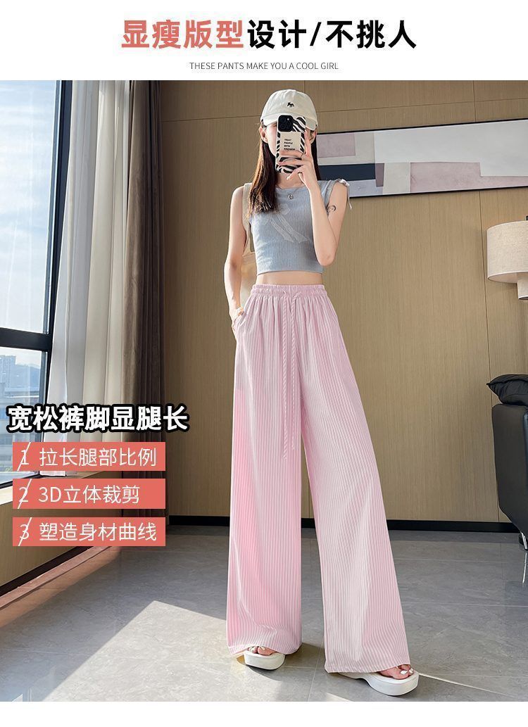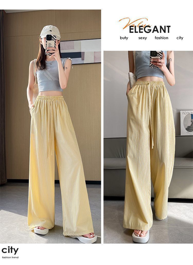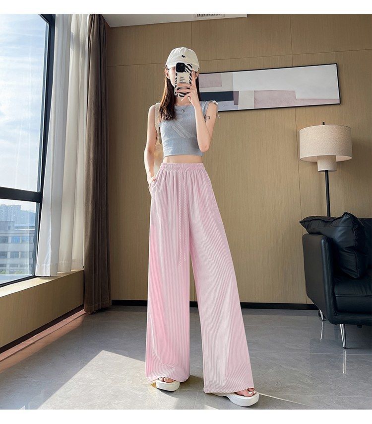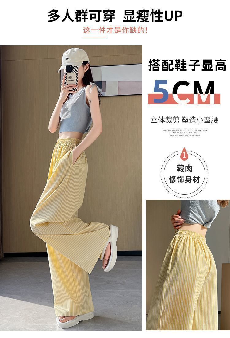 [동남아시아 전용] 여성용 블루 세로 스트라이프 와이드 팬츠 가을용 스트레이트 루즈핏 캐주얼 롱 팬츠 트렌디